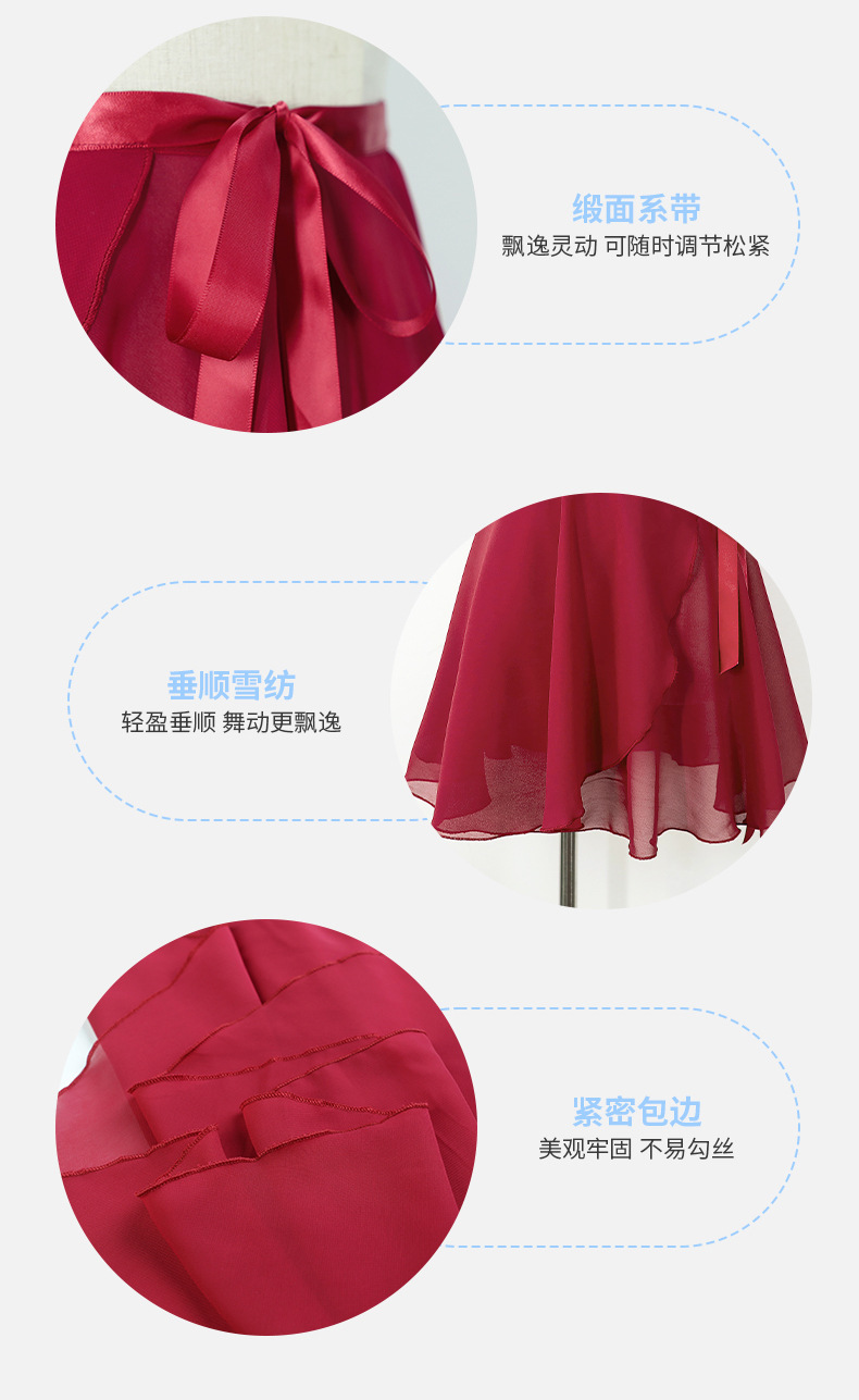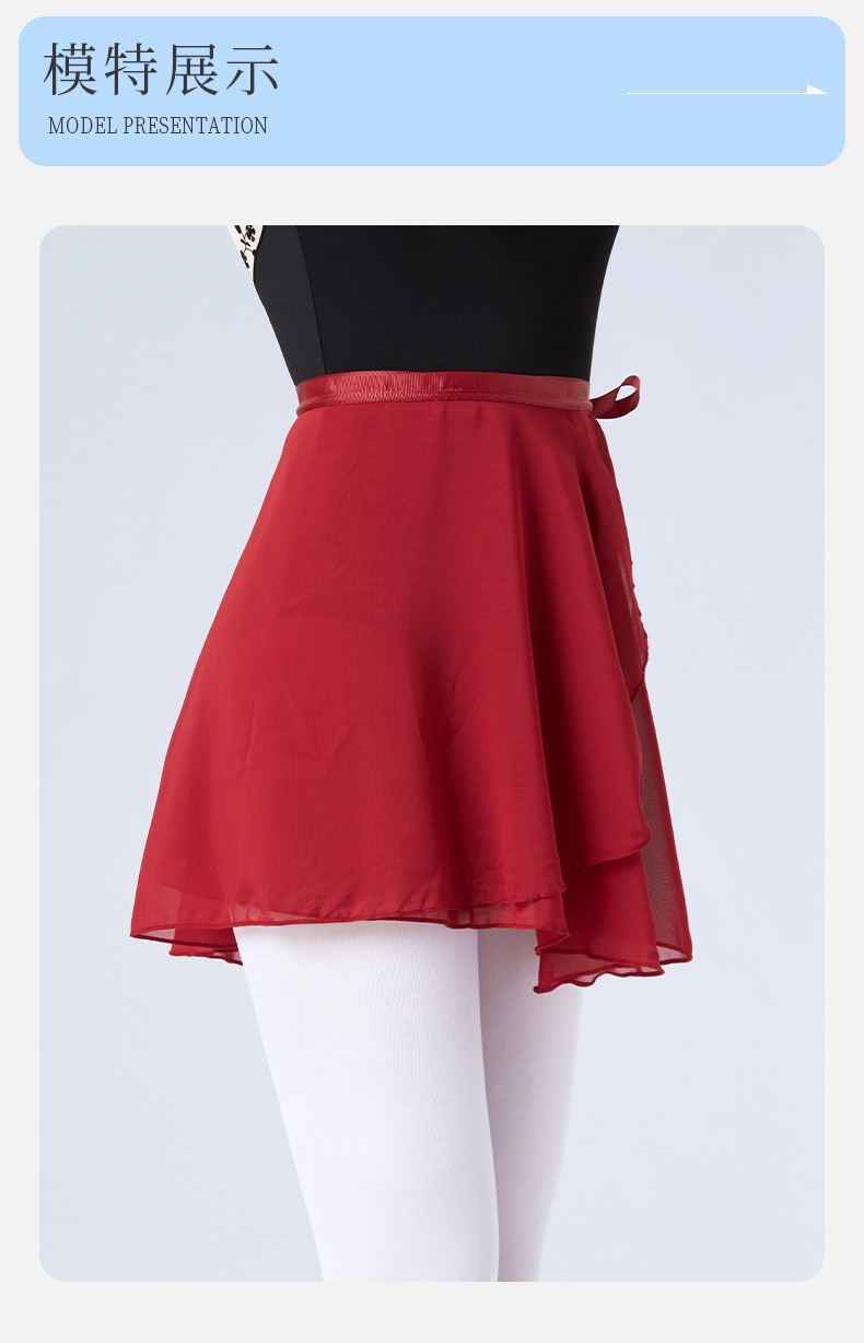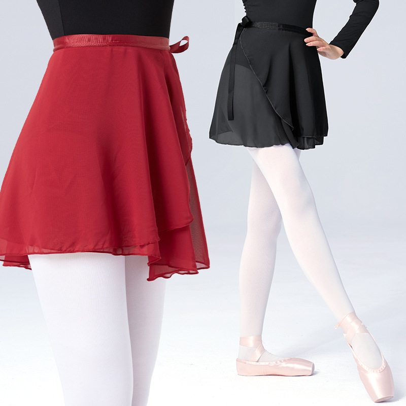 现货舞蹈半身裙短裙芭蕾舞练功裙一片式雪纺裙成人体操艺考纱裙女
