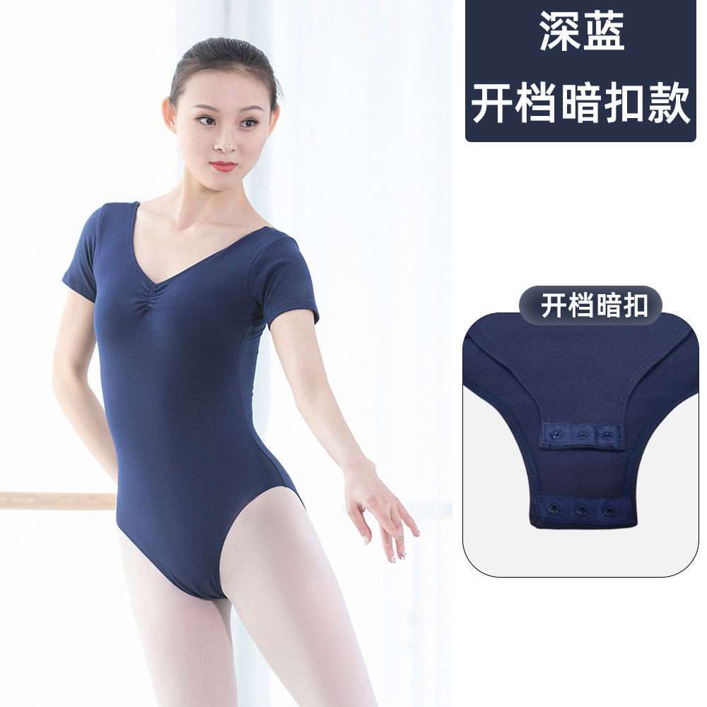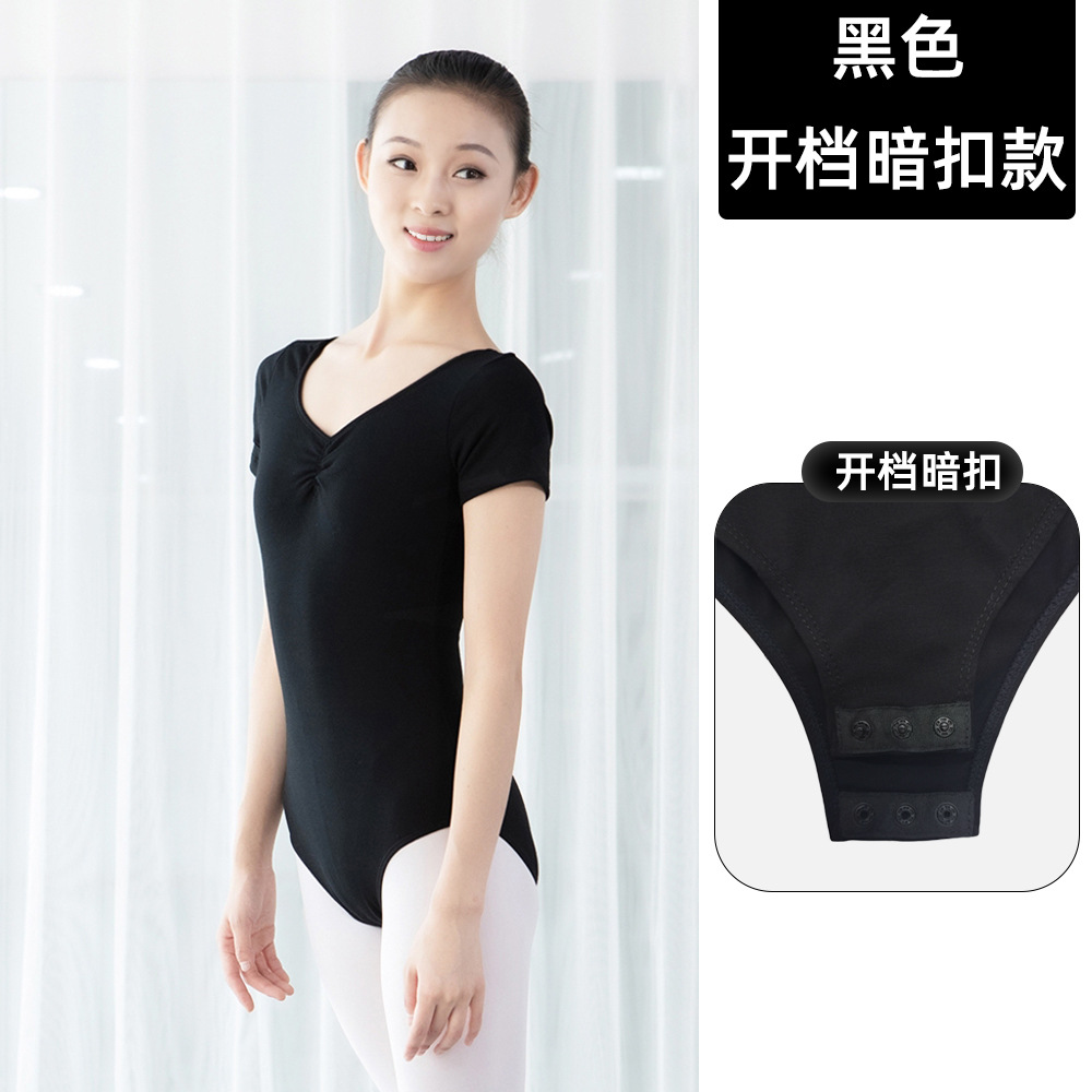 棉成人露背舍宾连体服女士舞蹈服芭蕾舞形体操艺考短袖体服练功服