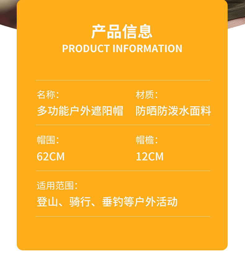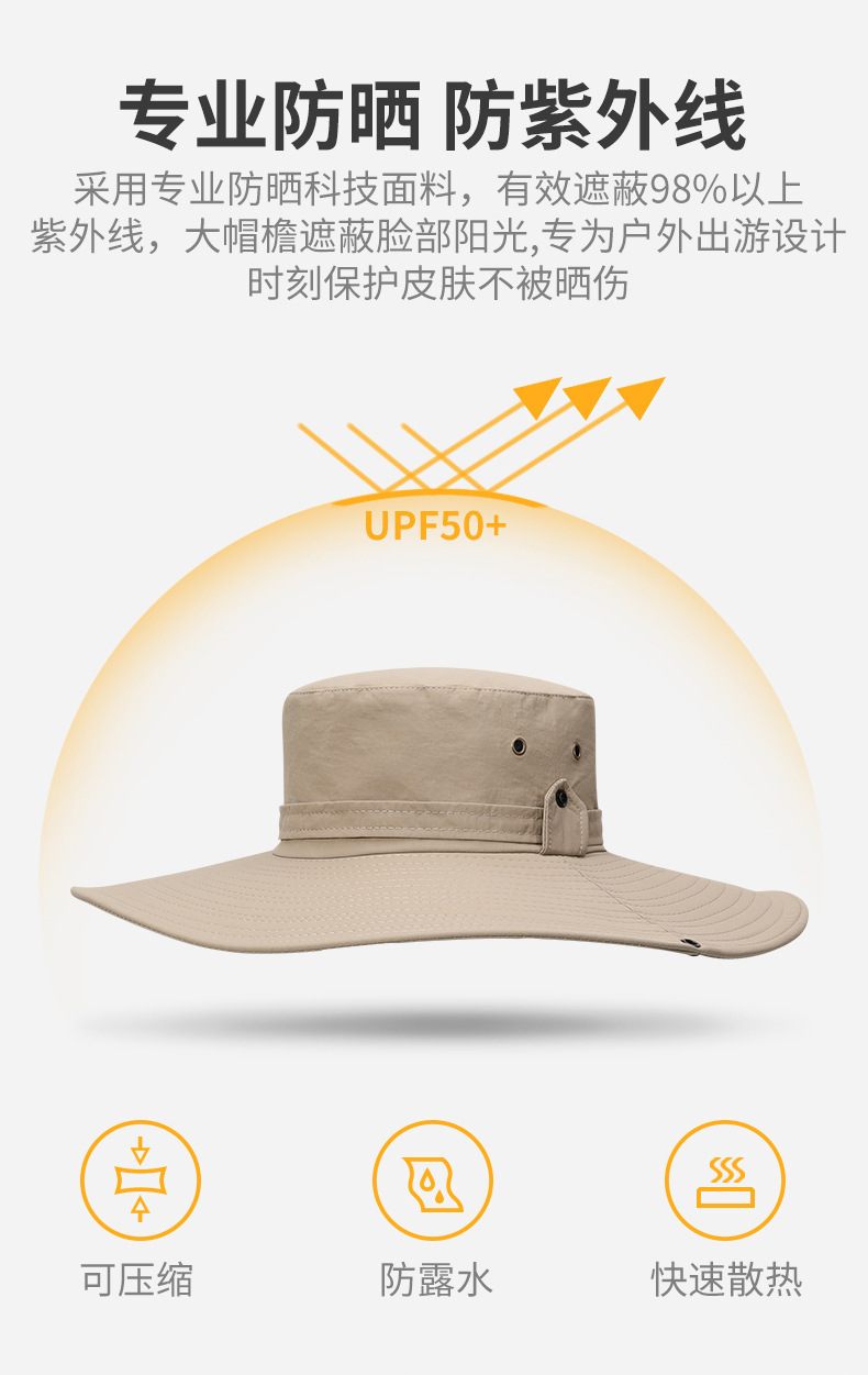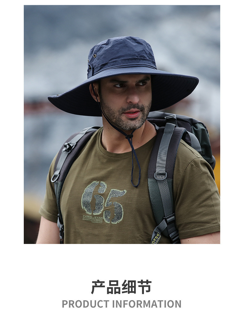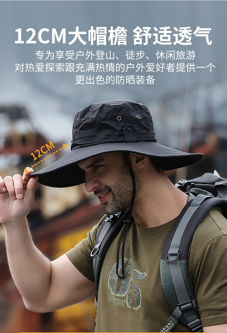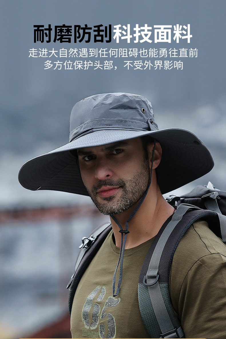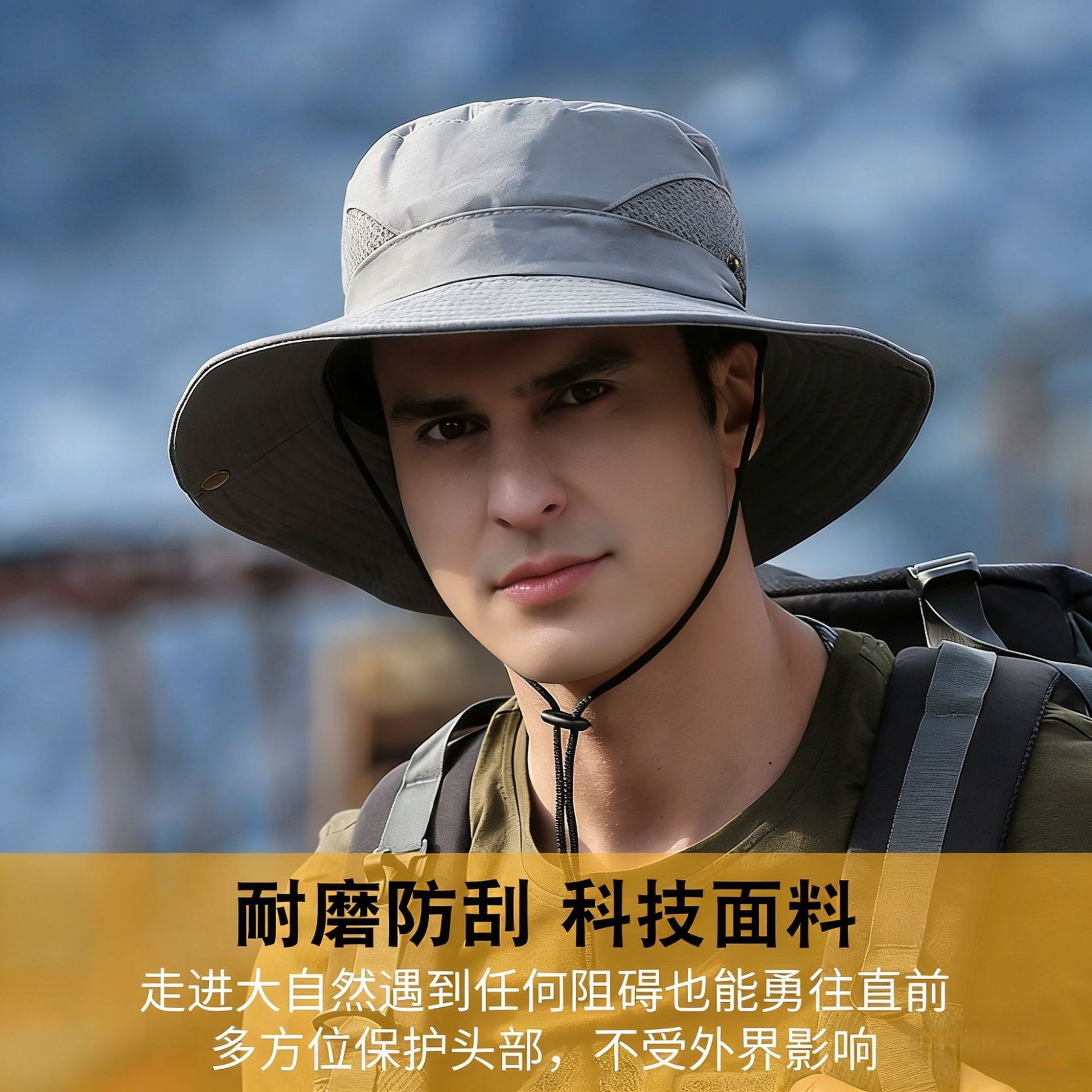 帽子男夏天渔夫帽防晒登山帽大沿户外春夏钓鱼帽大檐太阳帽遮阳帽
