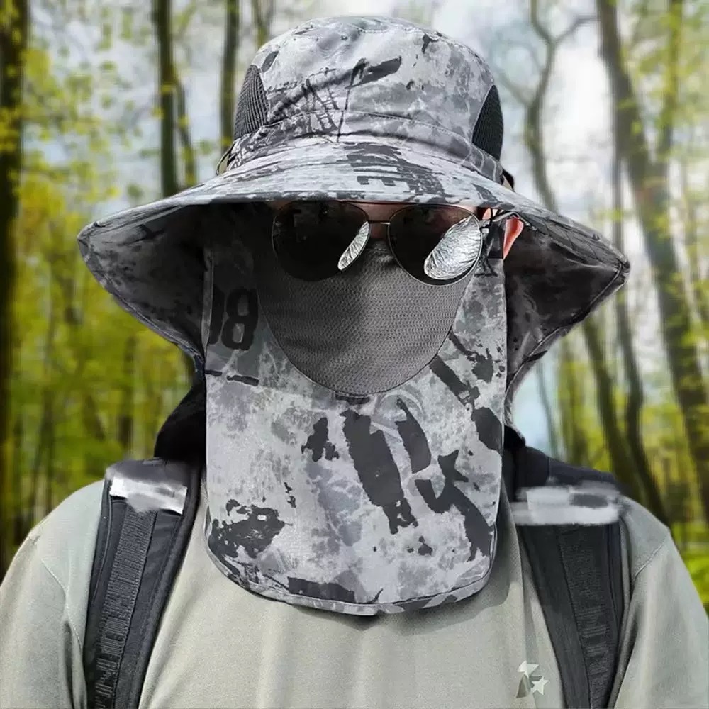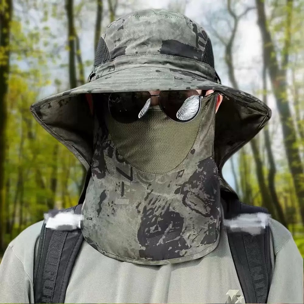 渔夫帽夏季防晒遮阳帽男户外登山帽钓鱼遮脸护颈一体帽大檐太阳帽