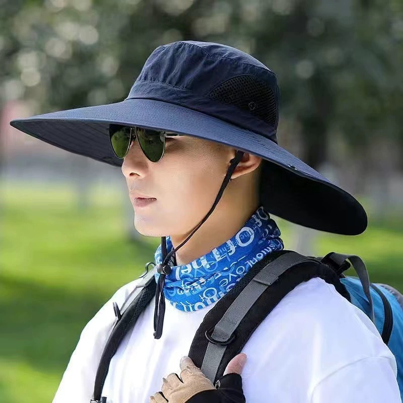 渔夫帽夏季防紫外线遮阳帽子钓鱼遮脸护颈一体男防晒帽大檐太阳帽