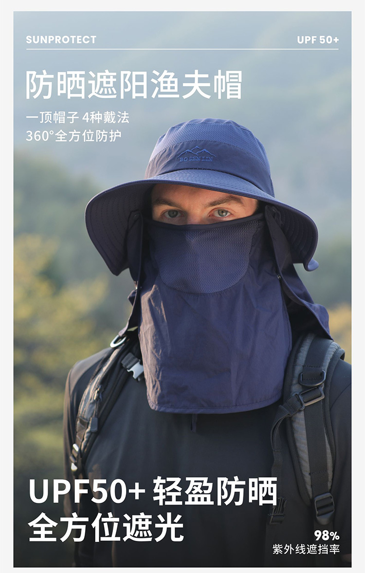 渔夫帽子男款遮阳帽夏季防晒帽速干户外防晒帽子帽子女款太阳帽