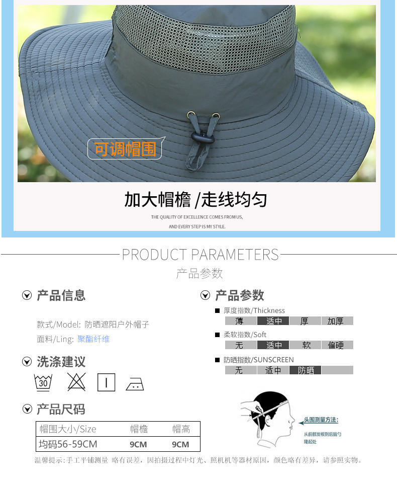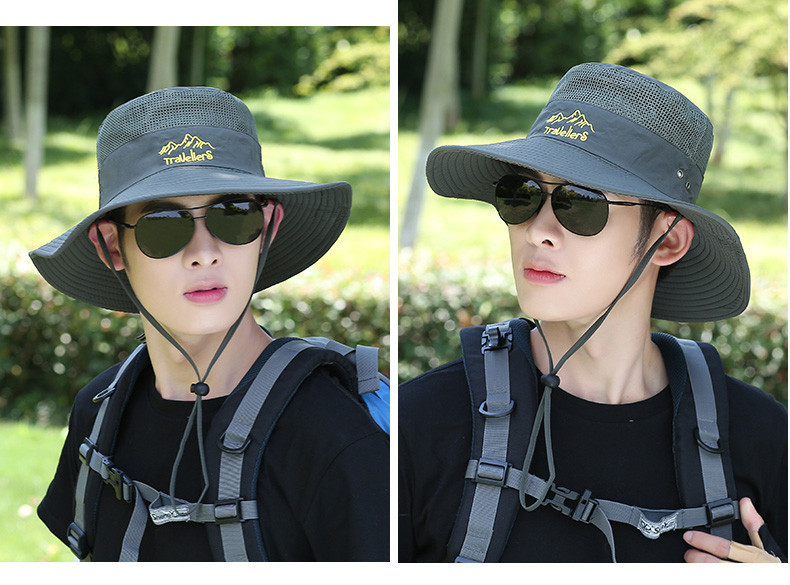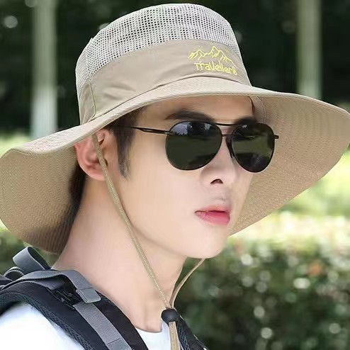 帽子男士户外透气防晒帽遮阳帽夏季登山钓鱼渔夫帽防紫外线太阳帽