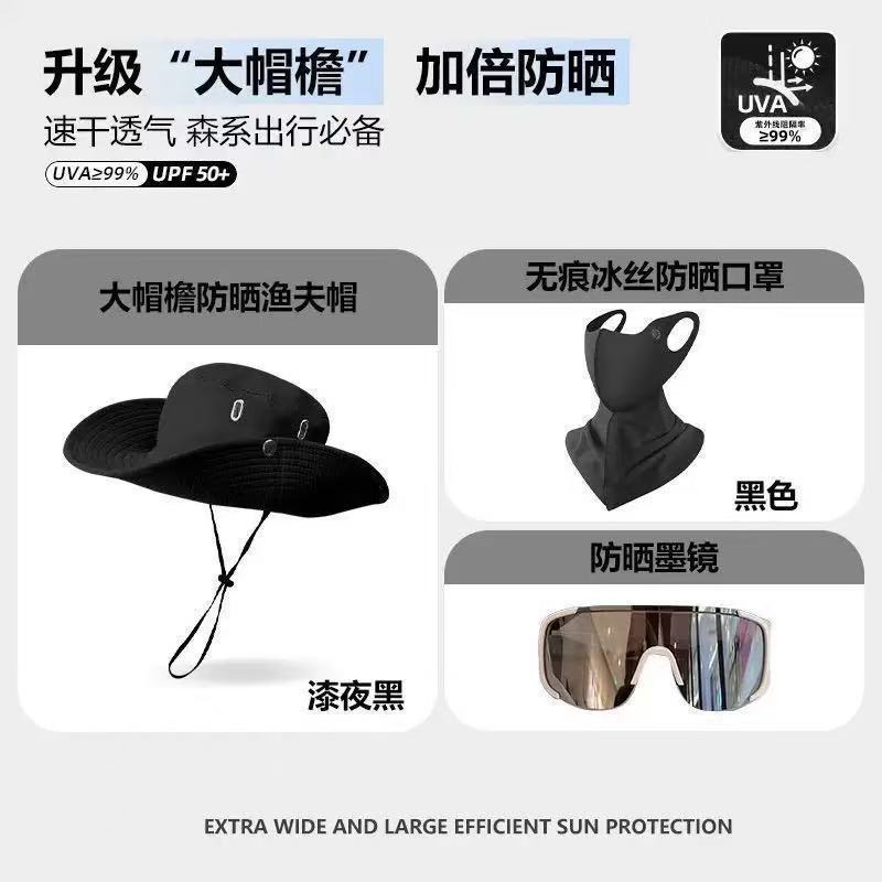 登山渔夫帽三件套遮阳防晒速干透气面罩防紫外线男女款登山钓鱼帽