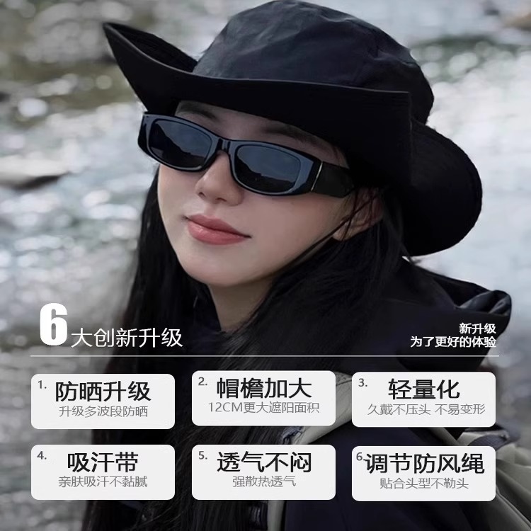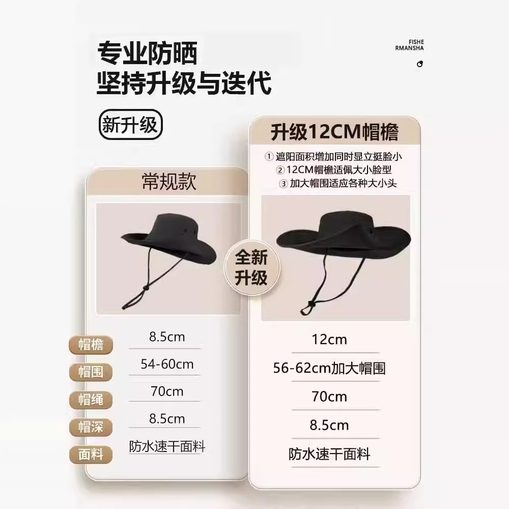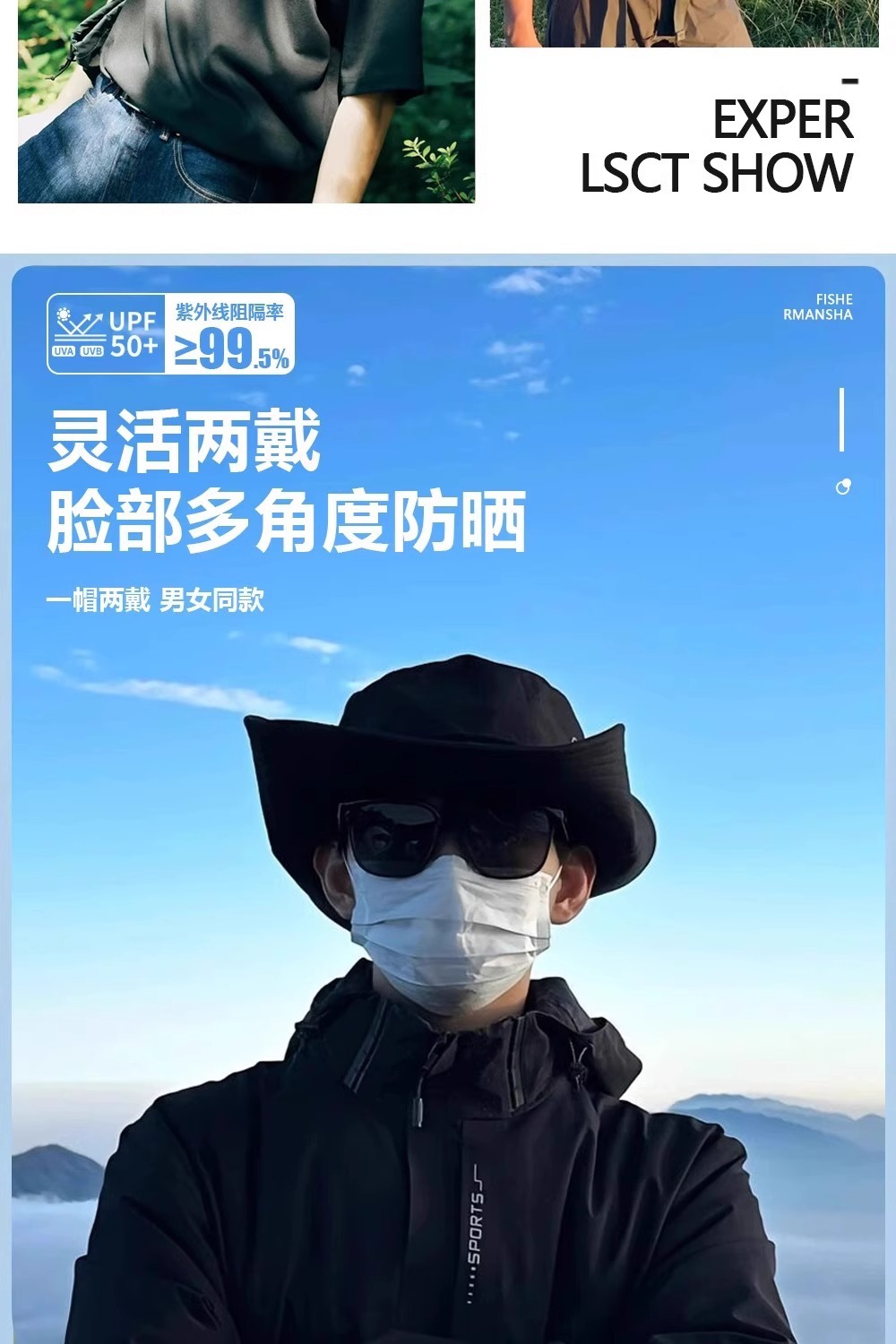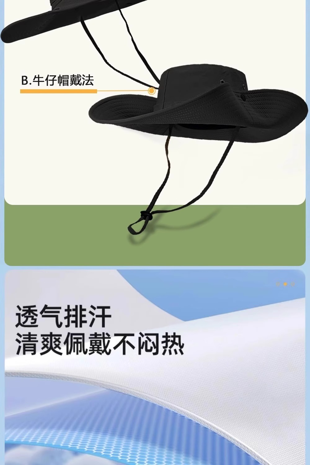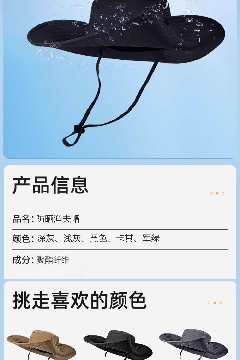 大帽檐遮阳帽男夏季户外钓鱼防晒帽女防紫外线渔夫帽户外登山帽
