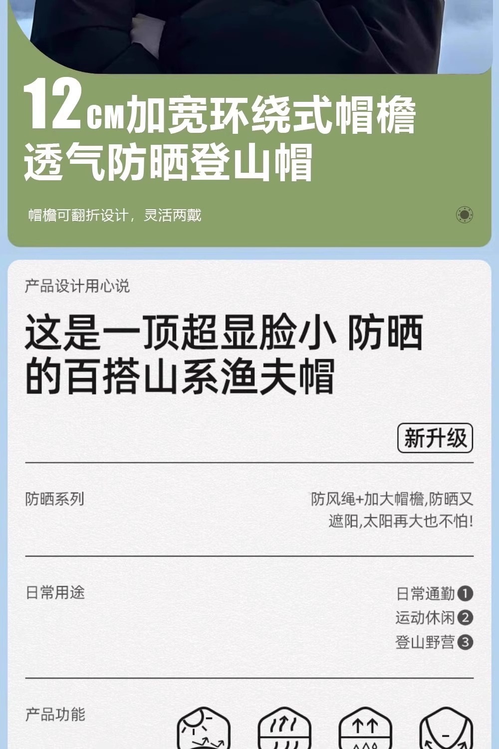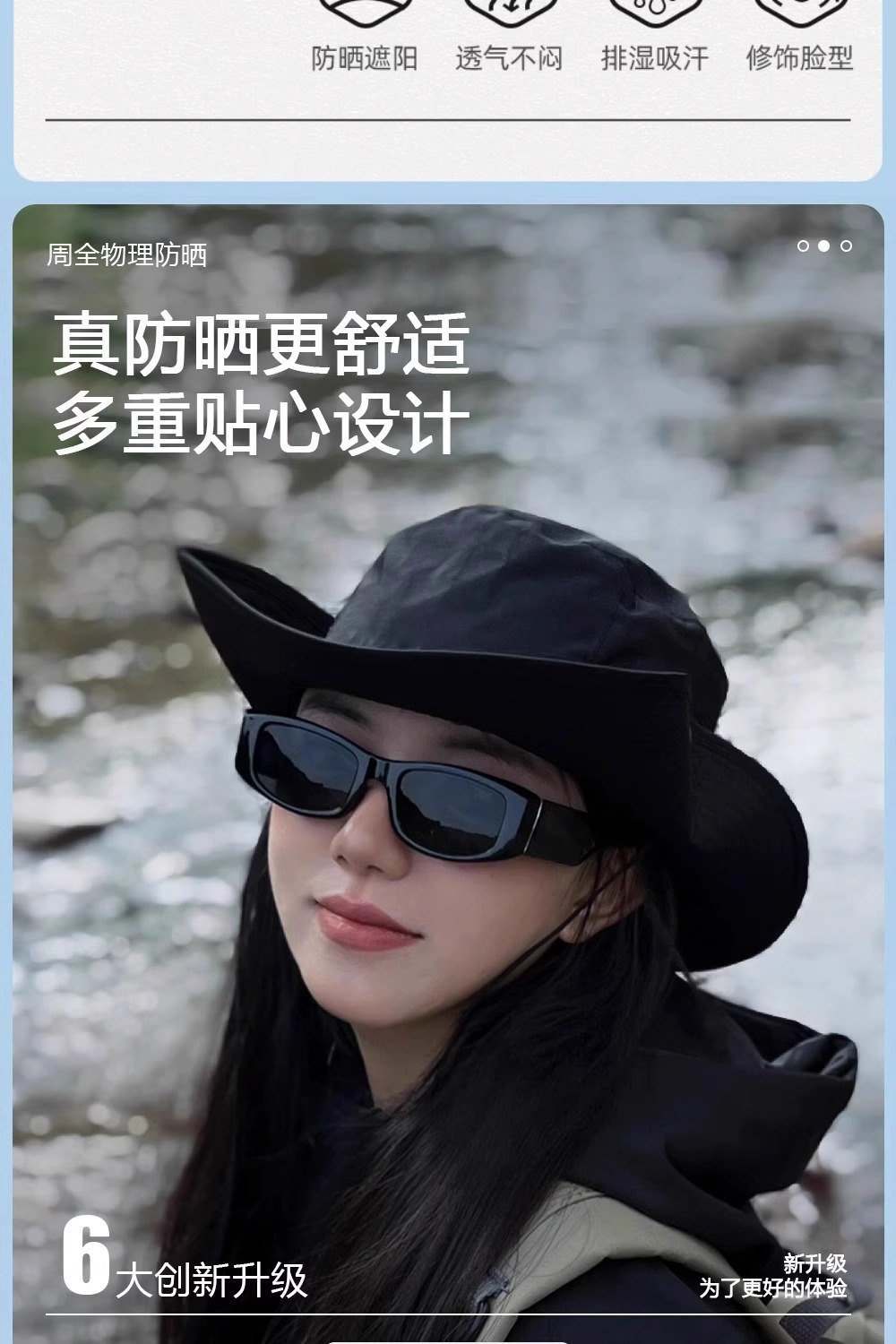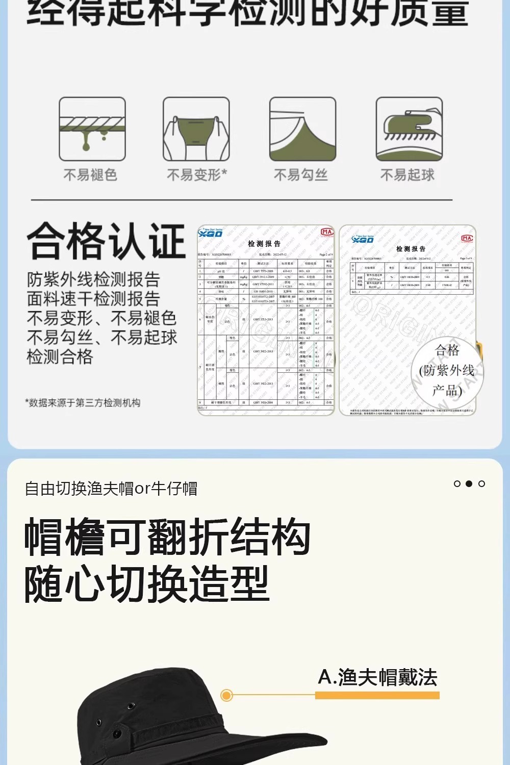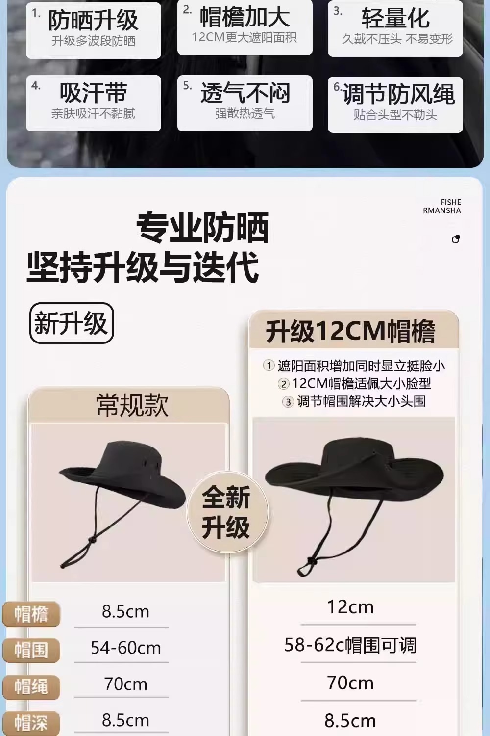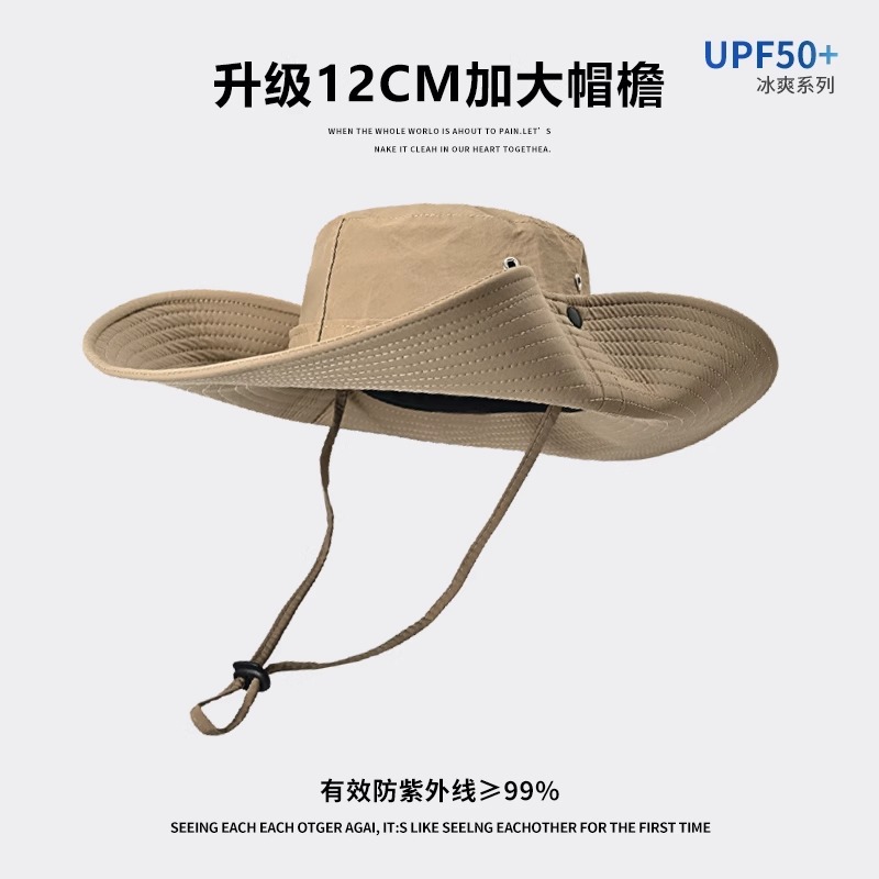 大帽檐遮阳帽男夏季户外钓鱼防晒帽女防紫外线渔夫帽户外登山帽
