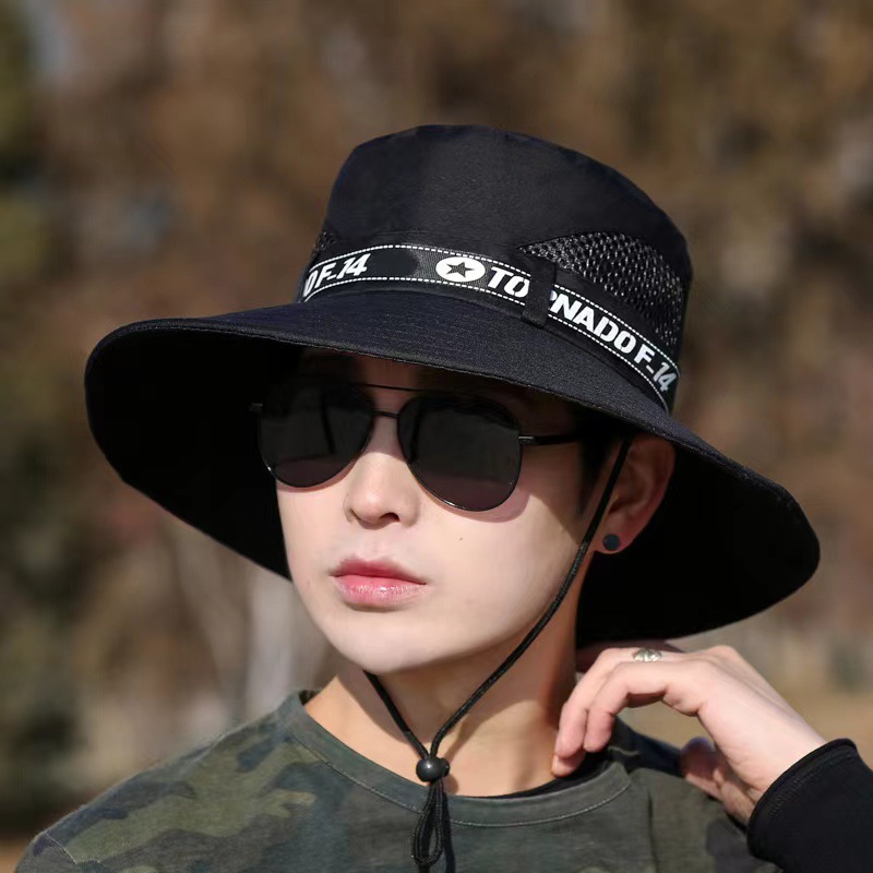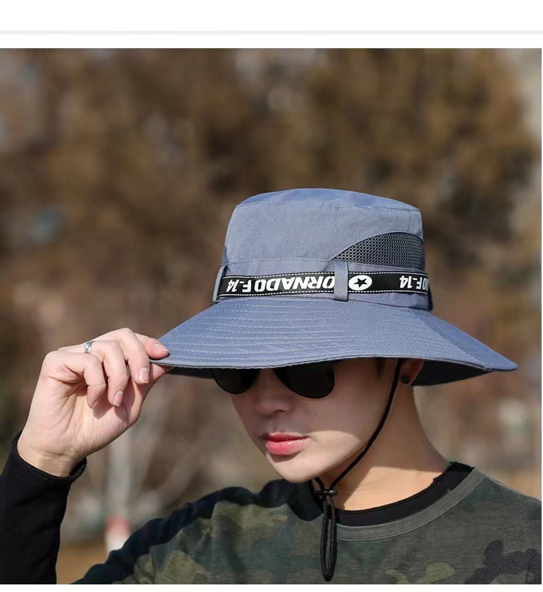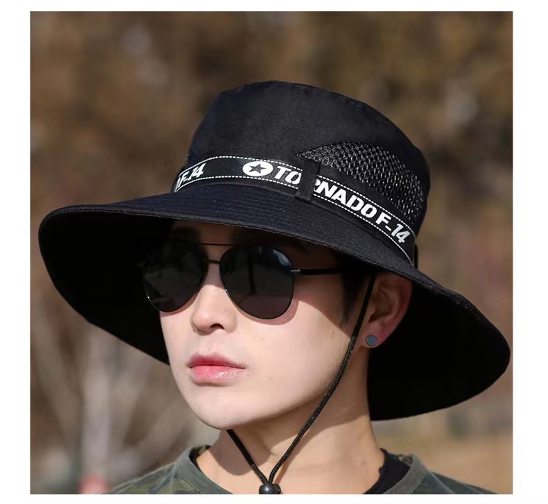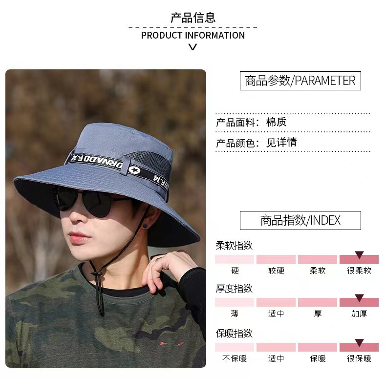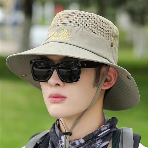 登山钓鱼帽子男帽渔夫帽春夏遮阳户外帽圆边旅游太阳防晒帽大帽檐
