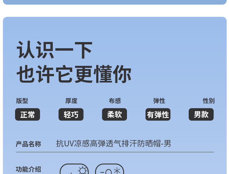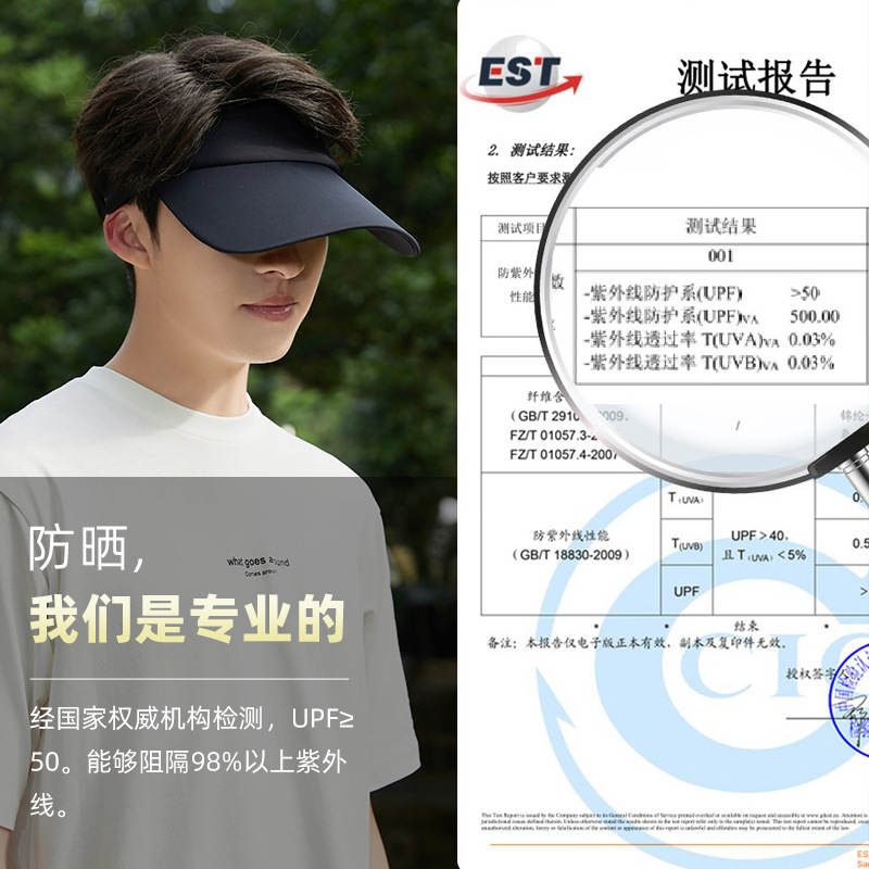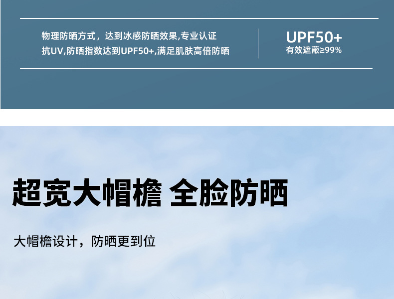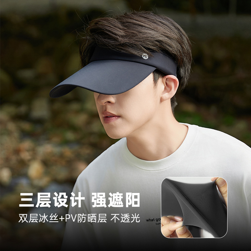 空顶帽男冰丝面料长帽檐全脸防晒防紫外线户外旅游遮阳防晒太阳帽