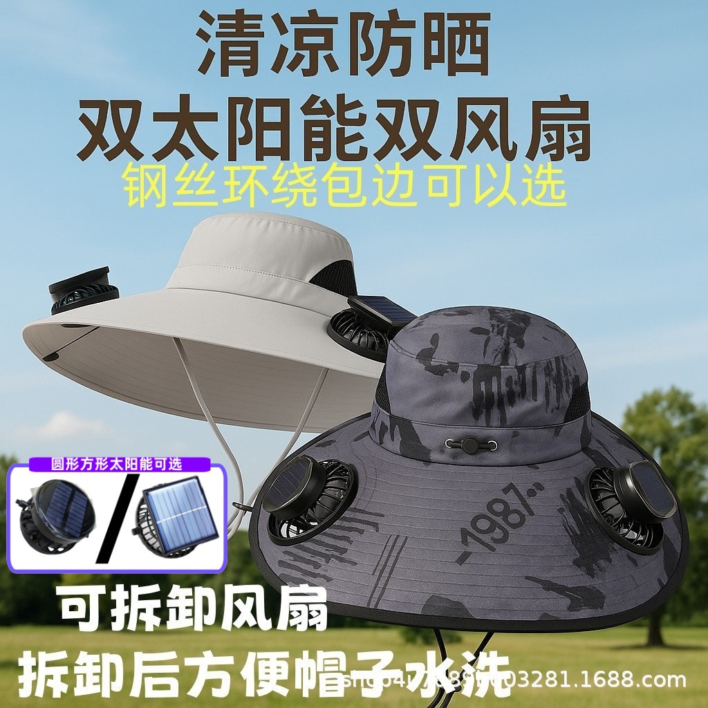 太阳能风扇帽大檐遮阳帽男夏季户外钓鱼防晒登山防紫外线遮阳帽子