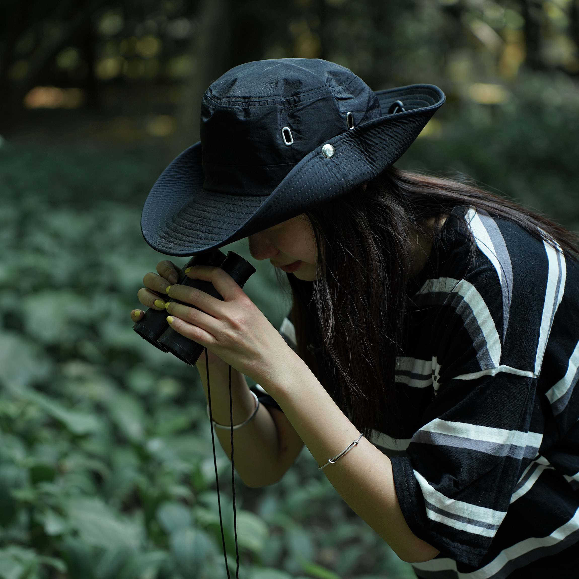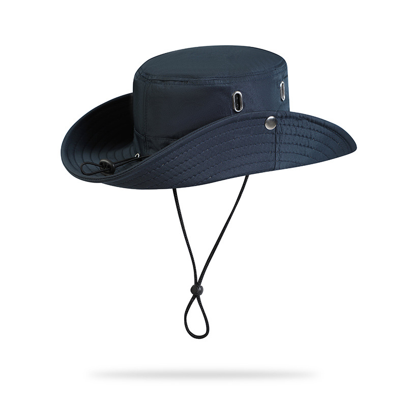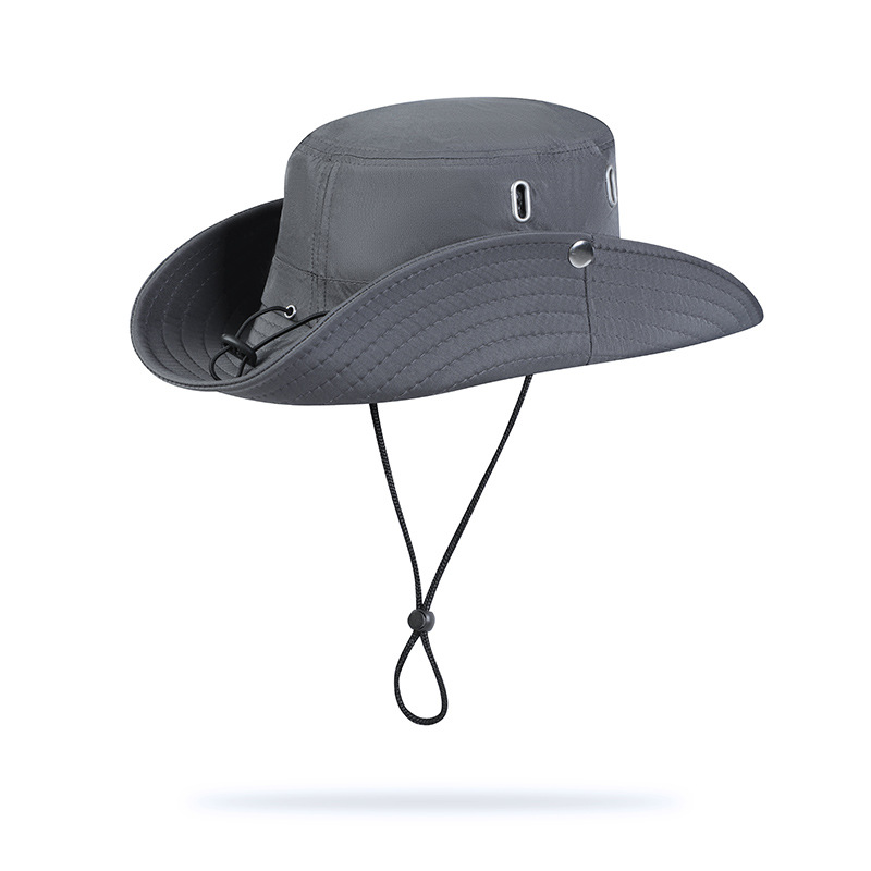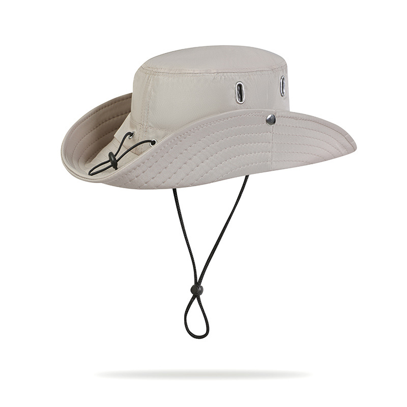 日系大檐抽绳防晒渔夫帽子女夏户外透气徒步爬山遮阳登山牛仔帽男