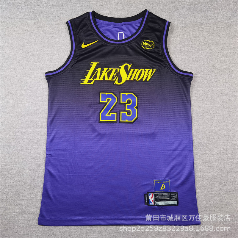 夏季跨境球衣湖人队詹姆斯6科复古球衣刺绣篮球服运动背心比男女