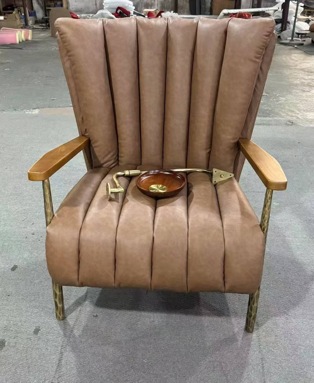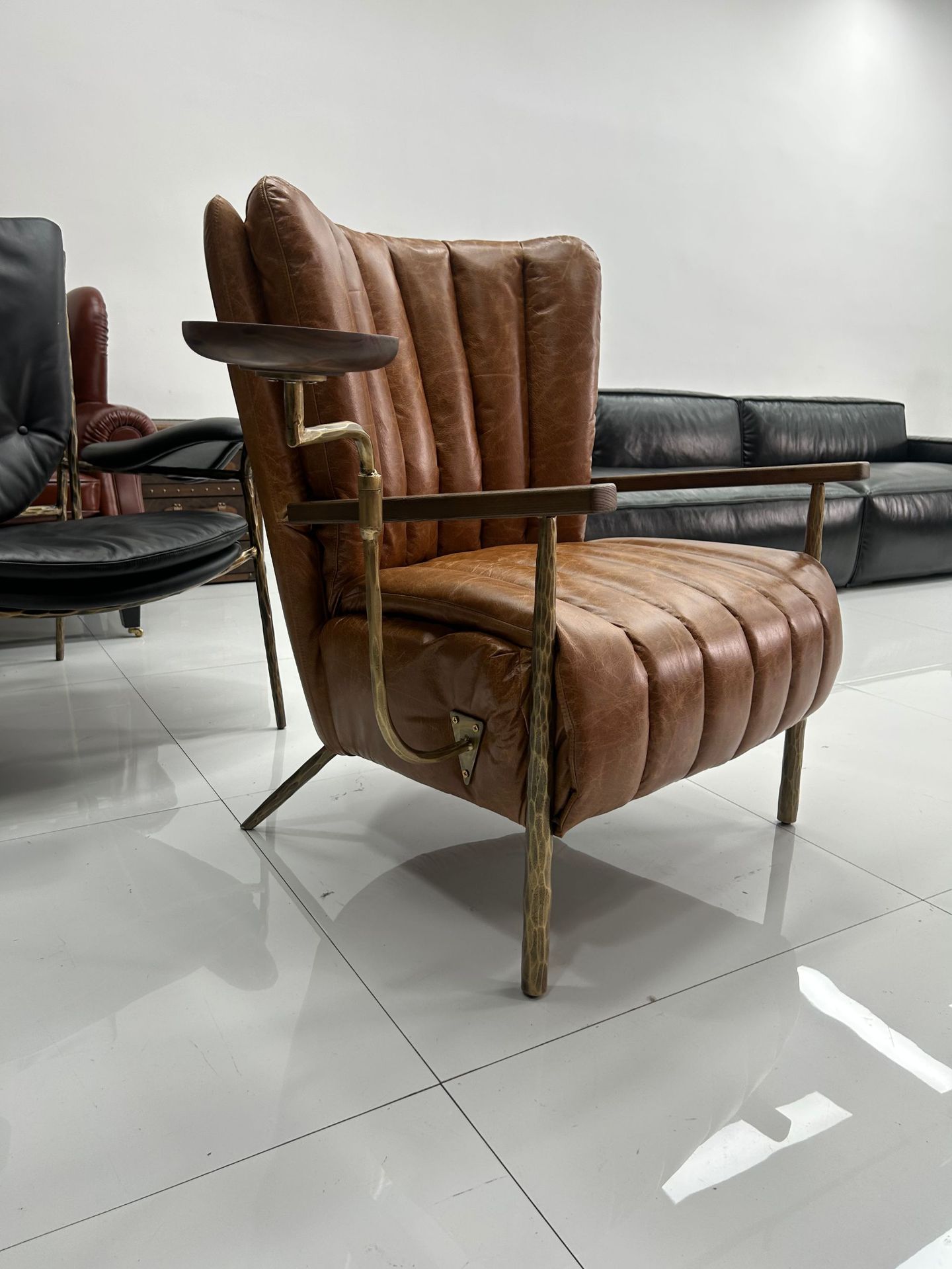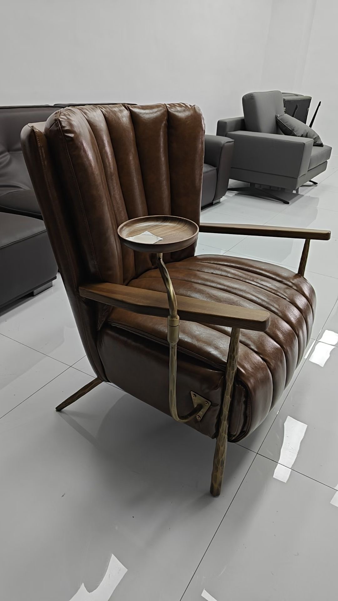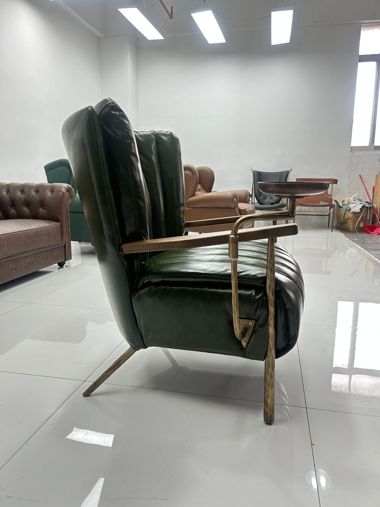 雪茄椅网红款雪茄椅久坐不累咖啡椅实木扶手带托盘真皮沙发椅美式