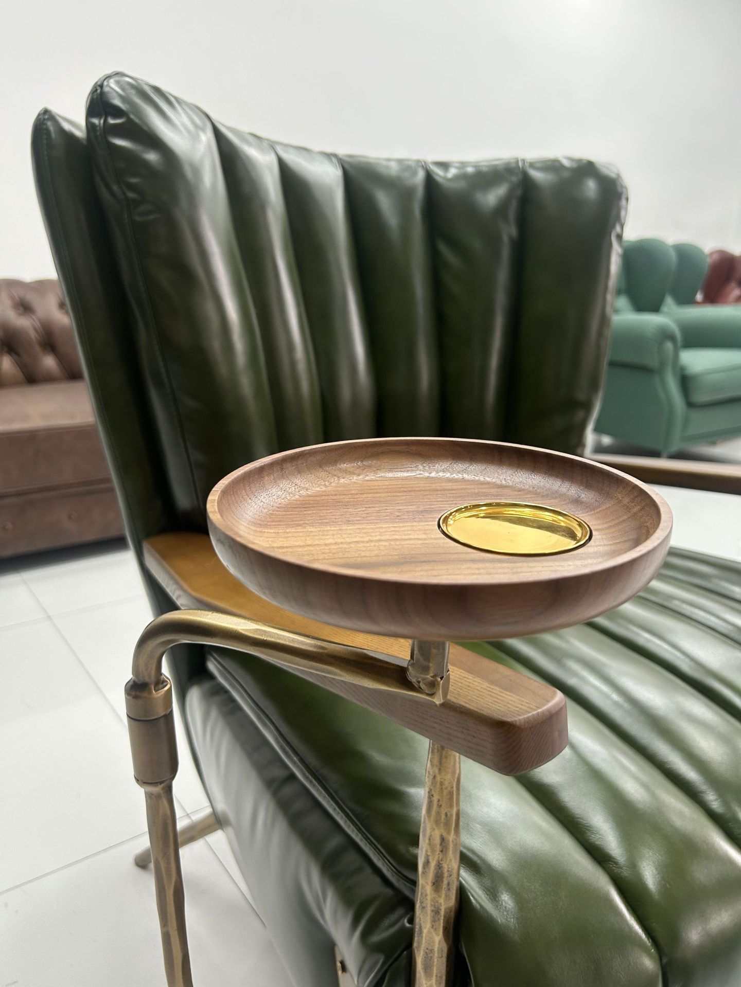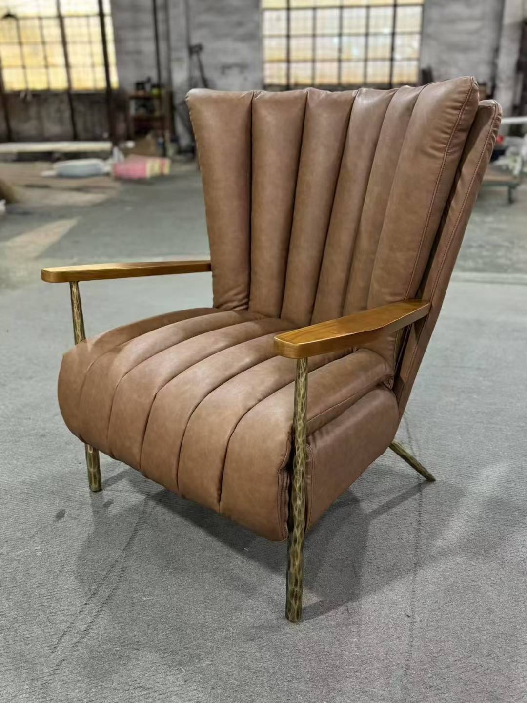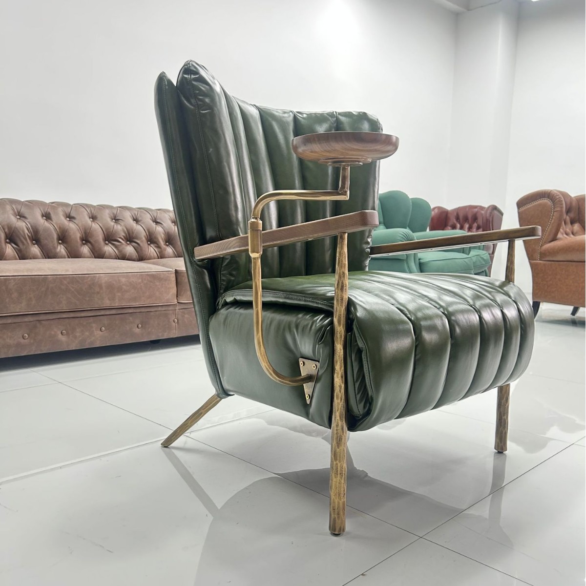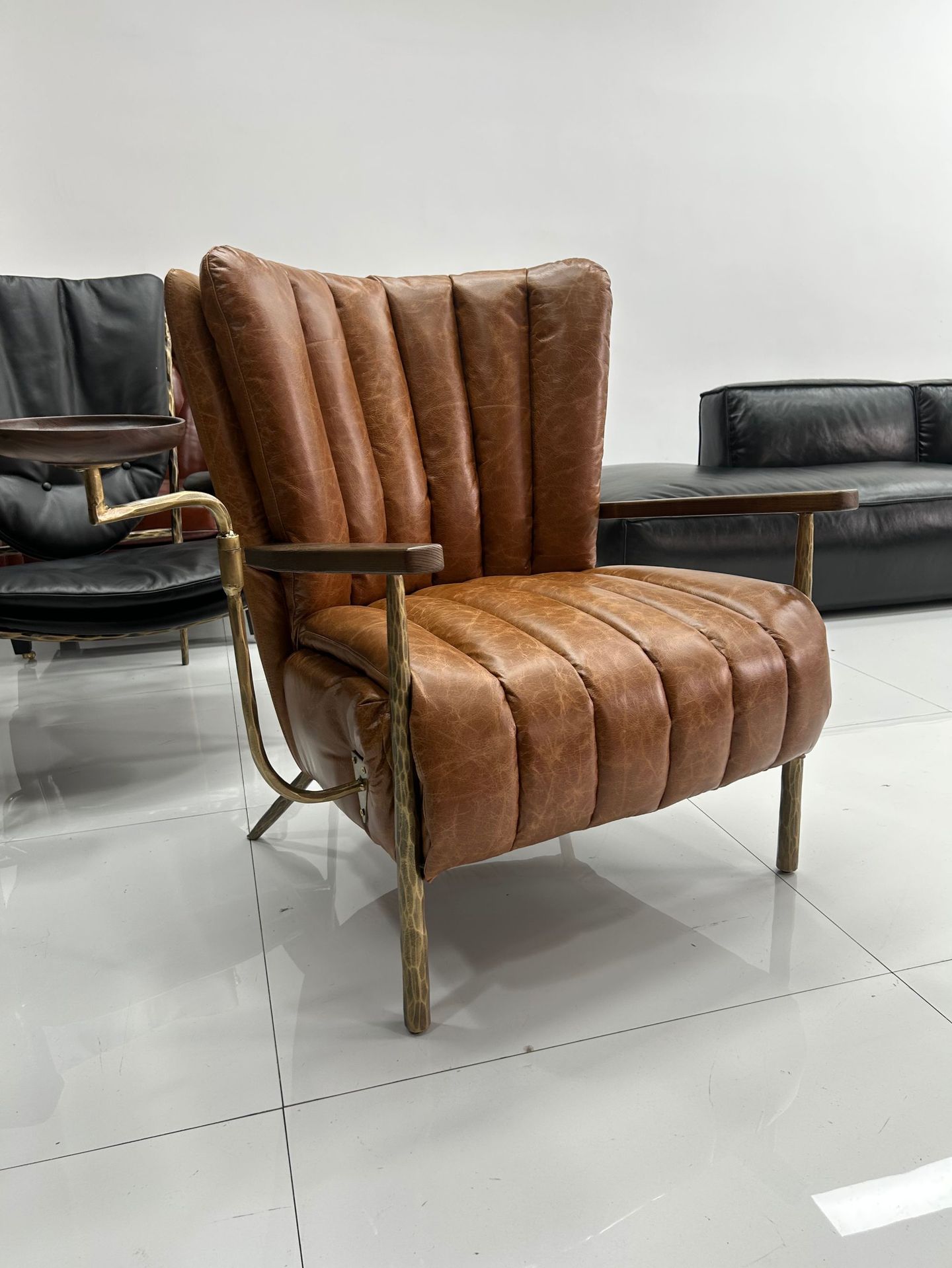 雪茄椅网红款雪茄椅久坐不累咖啡椅实木扶手带托盘真皮沙发椅美式