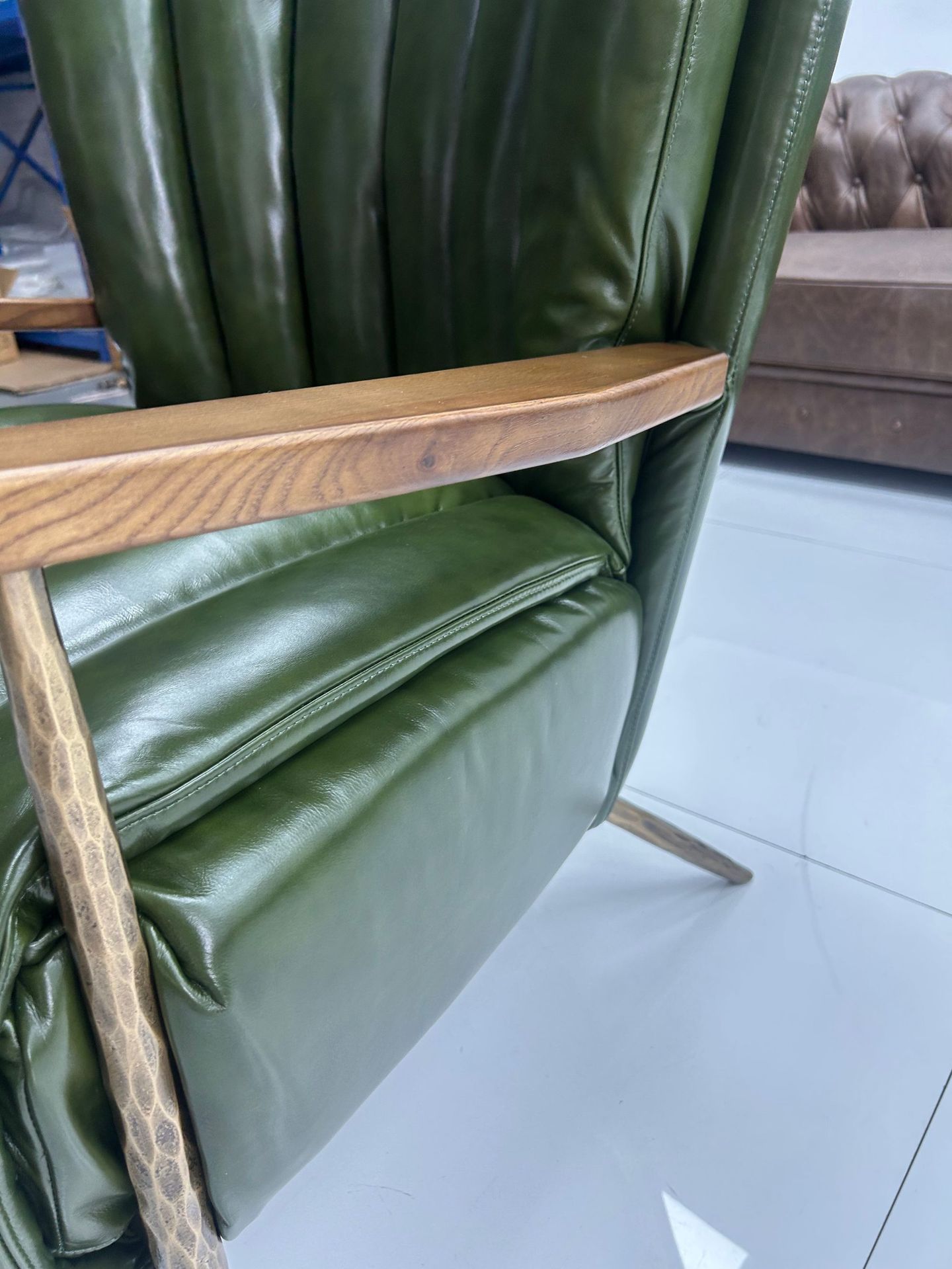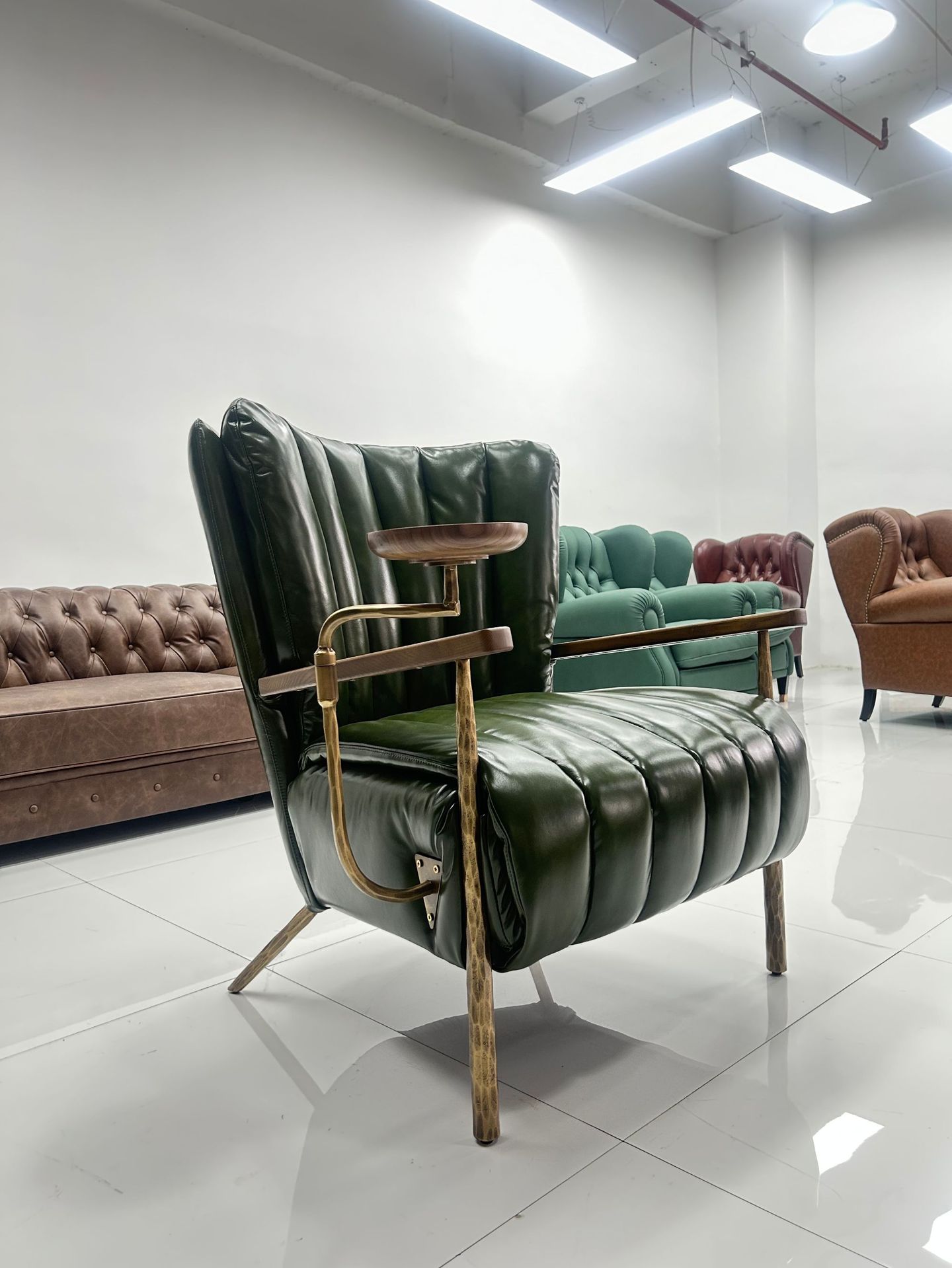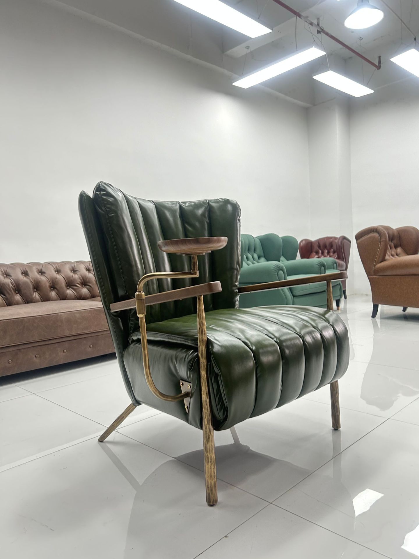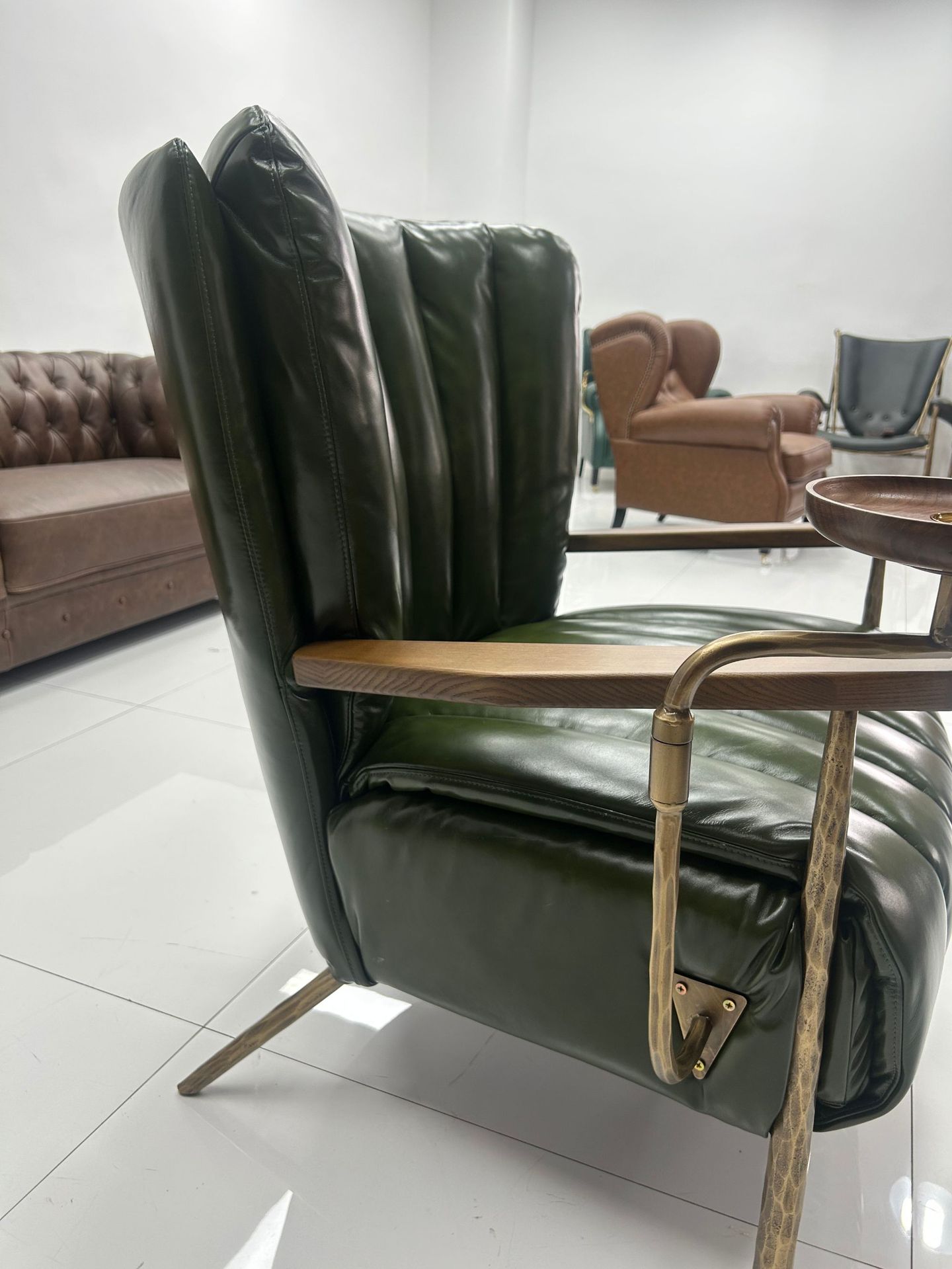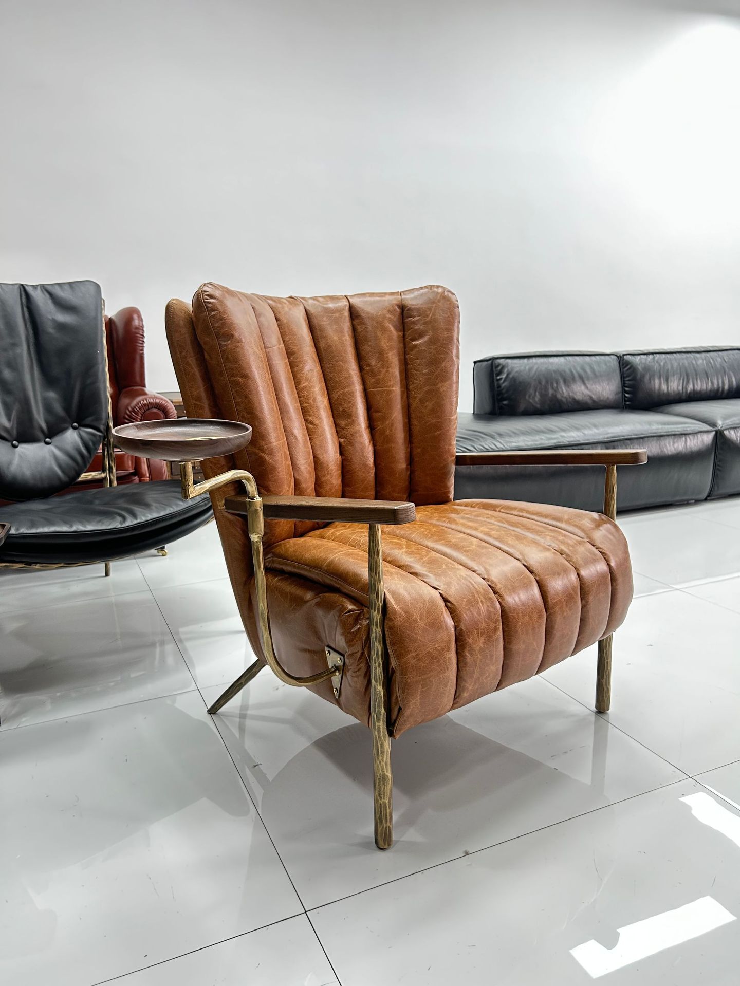 雪茄椅网红款雪茄椅久坐不累咖啡椅实木扶手带托盘真皮沙发椅美式