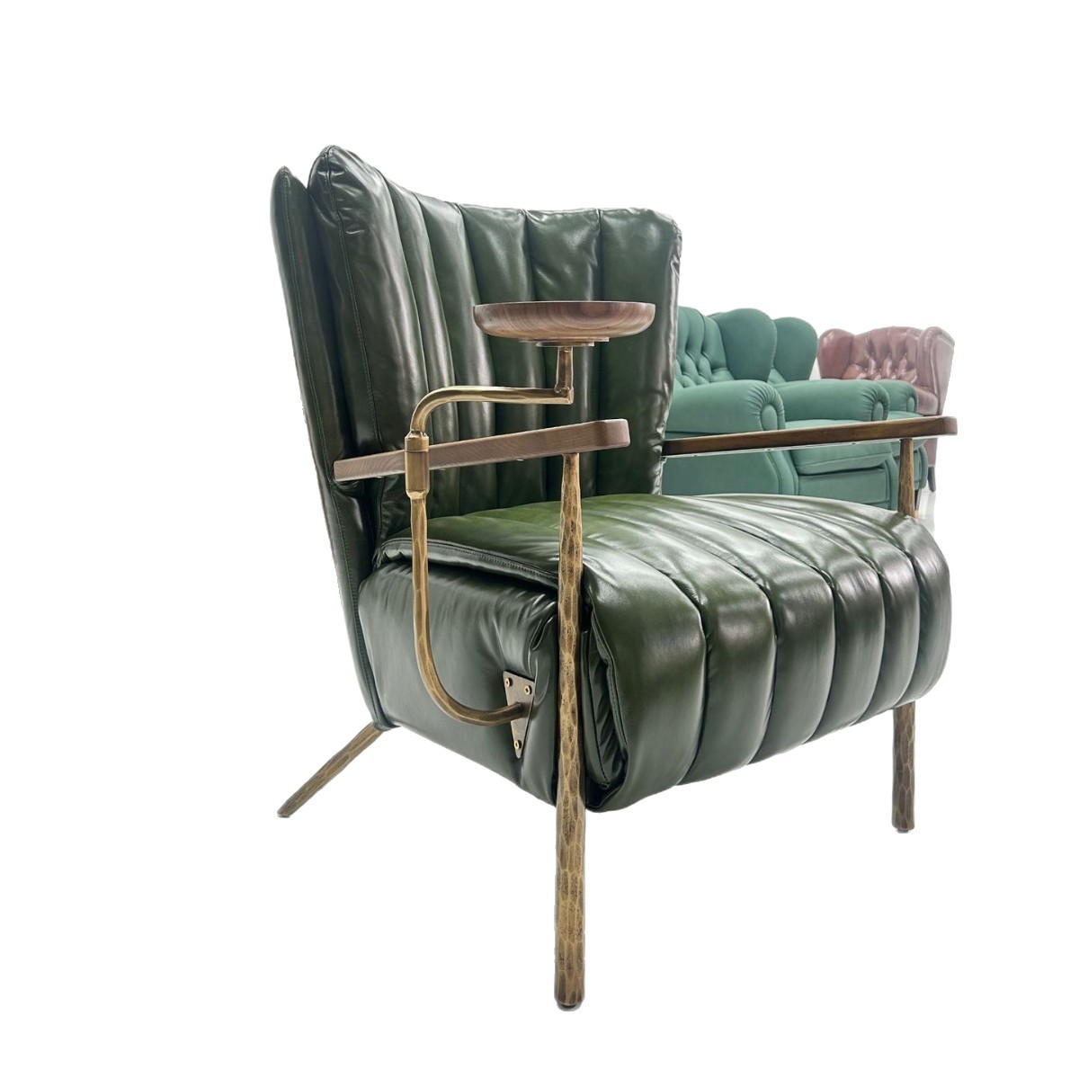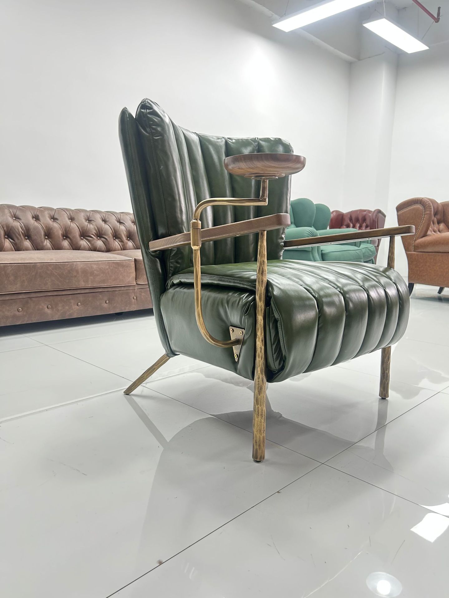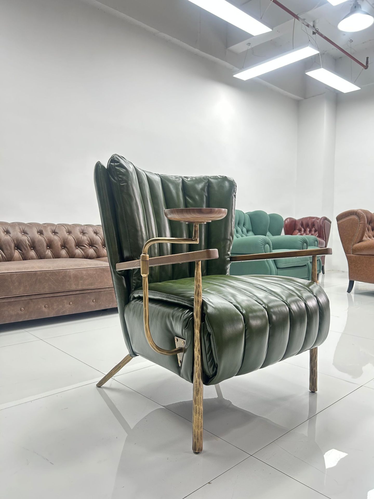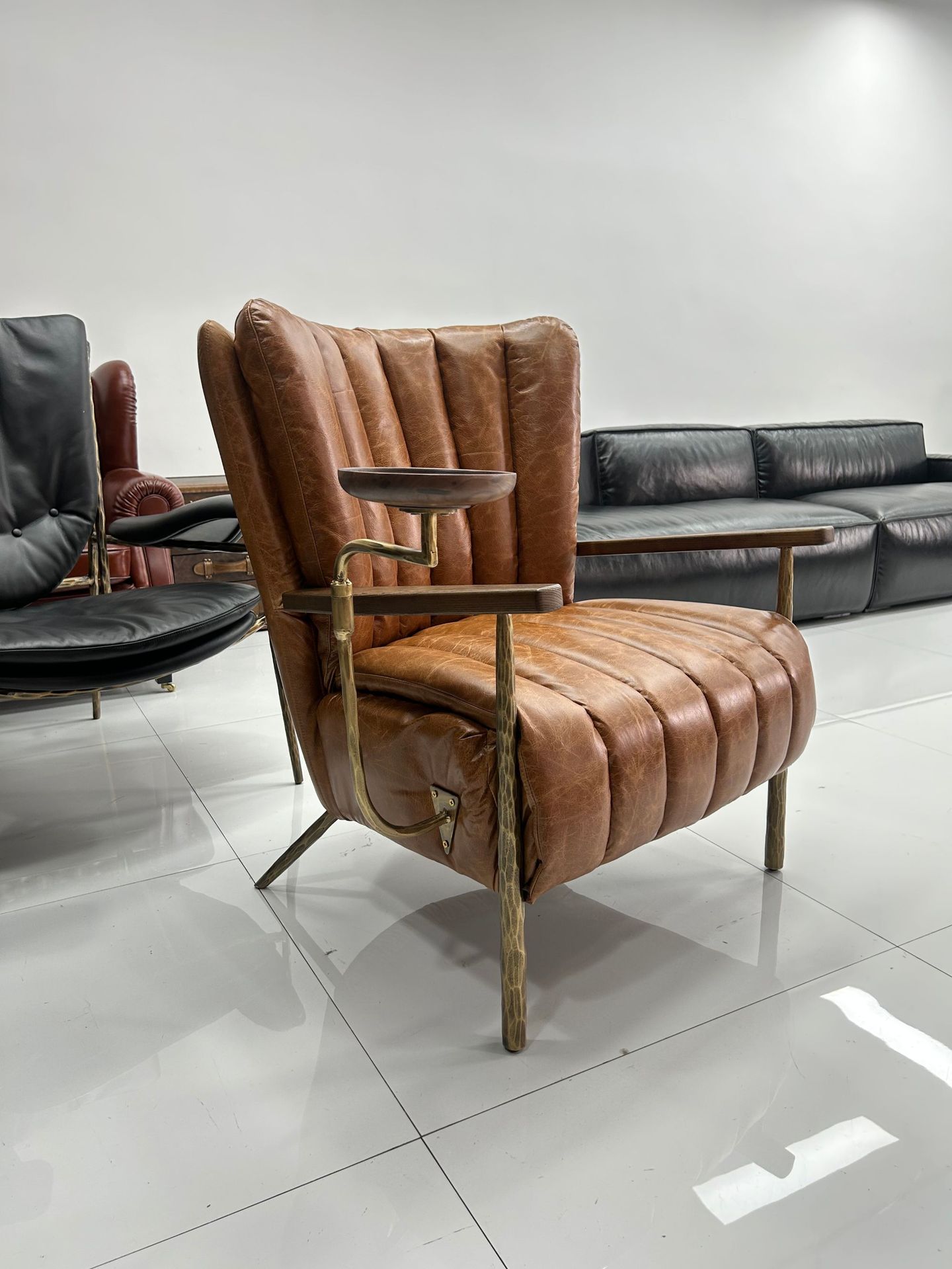 雪茄椅网红款雪茄椅久坐不累咖啡椅实木扶手带托盘真皮沙发椅美式