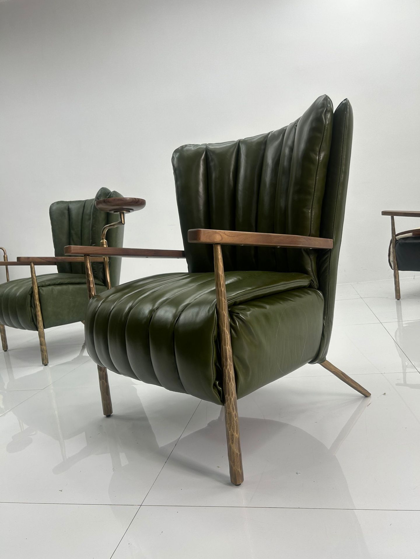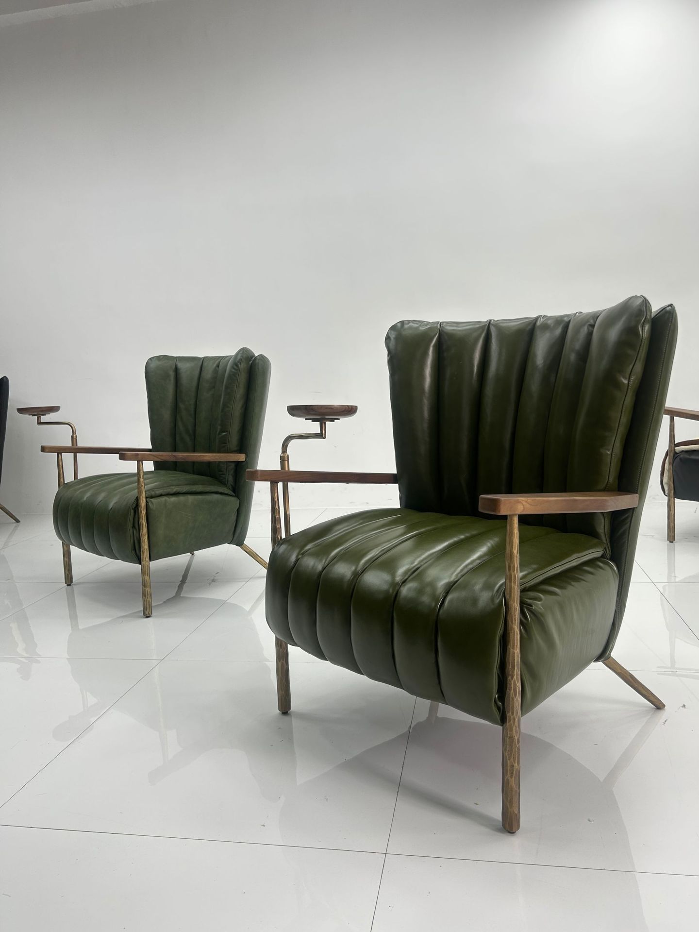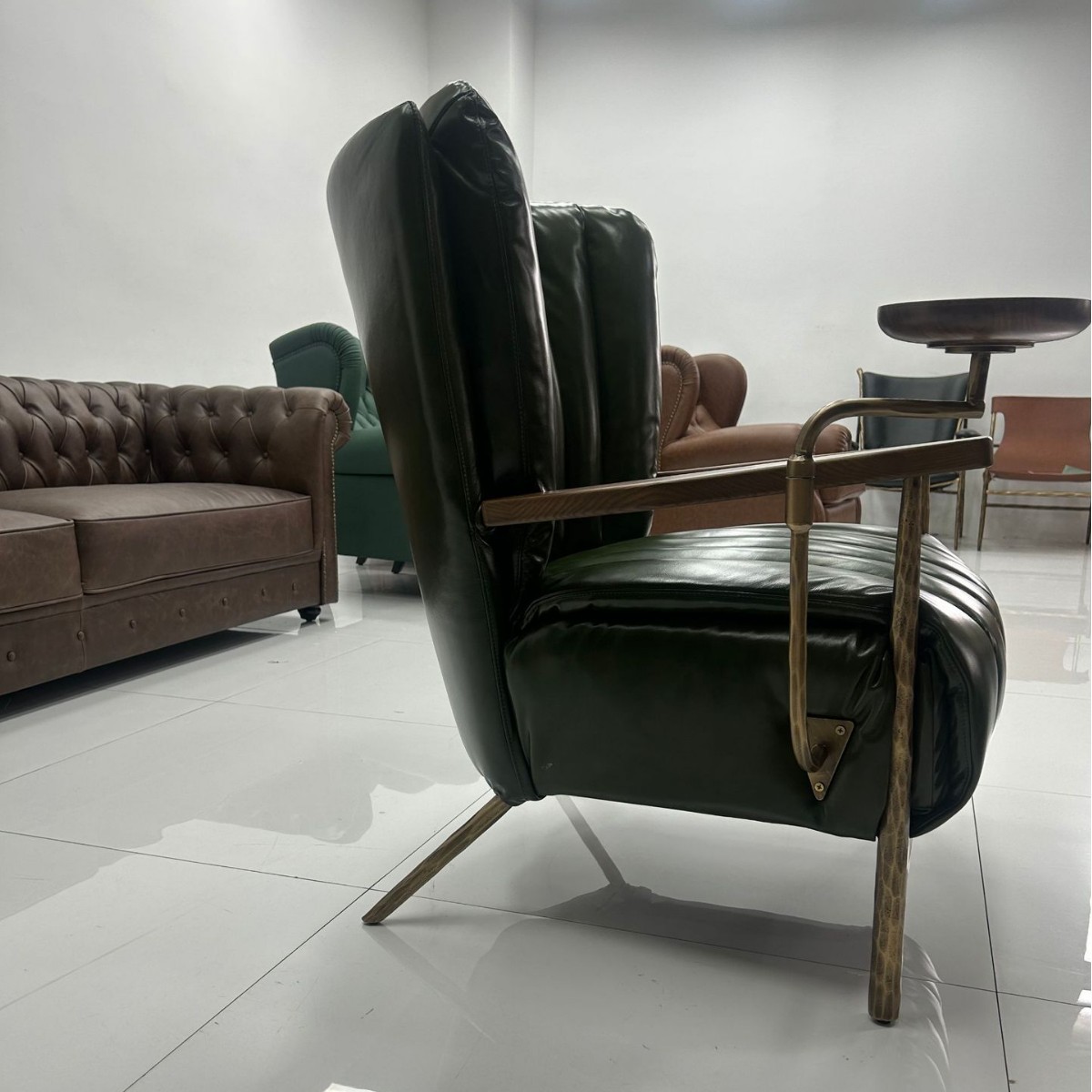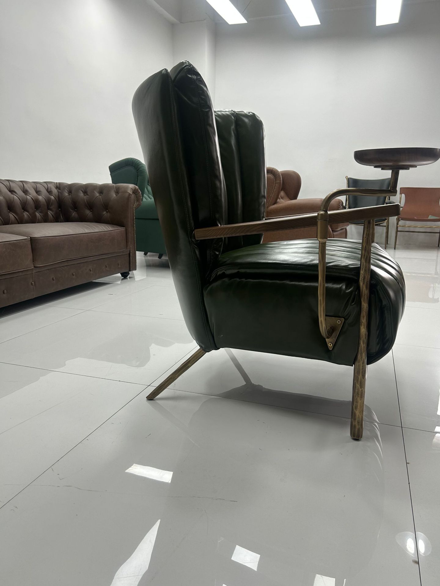 雪茄椅网红款雪茄椅久坐不累咖啡椅实木扶手带托盘真皮沙发椅美式