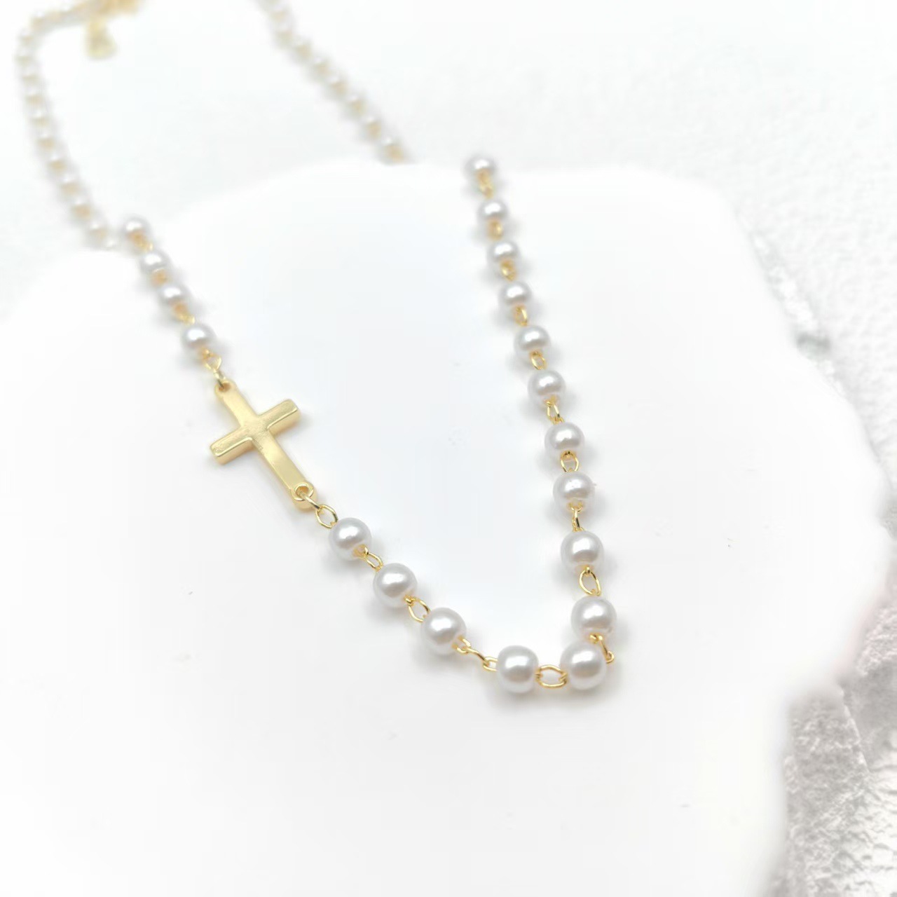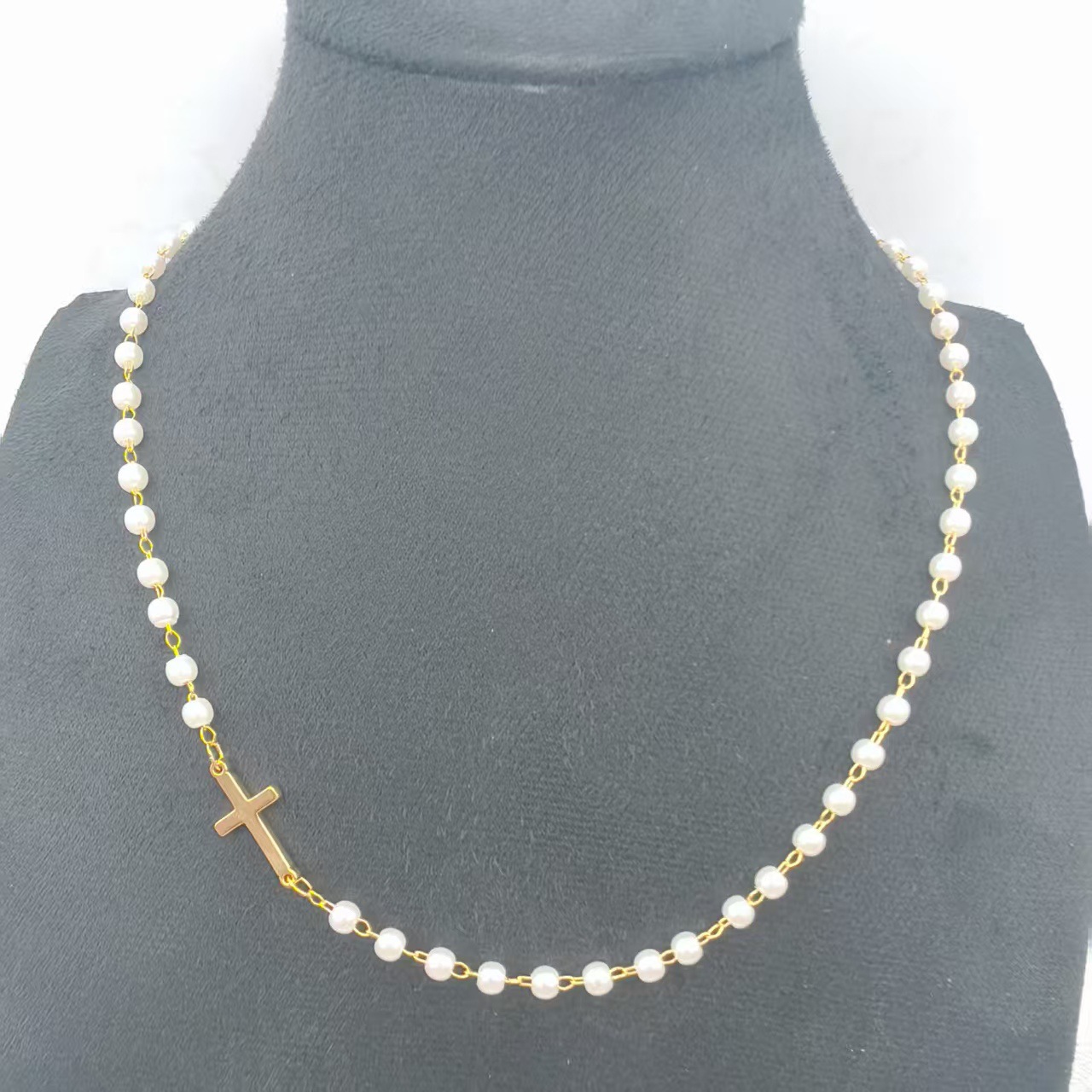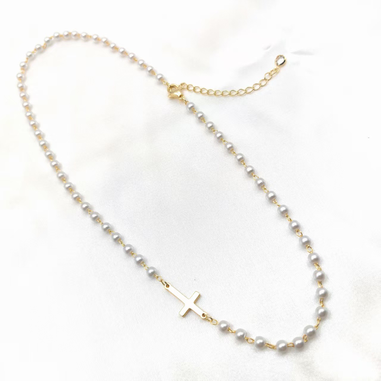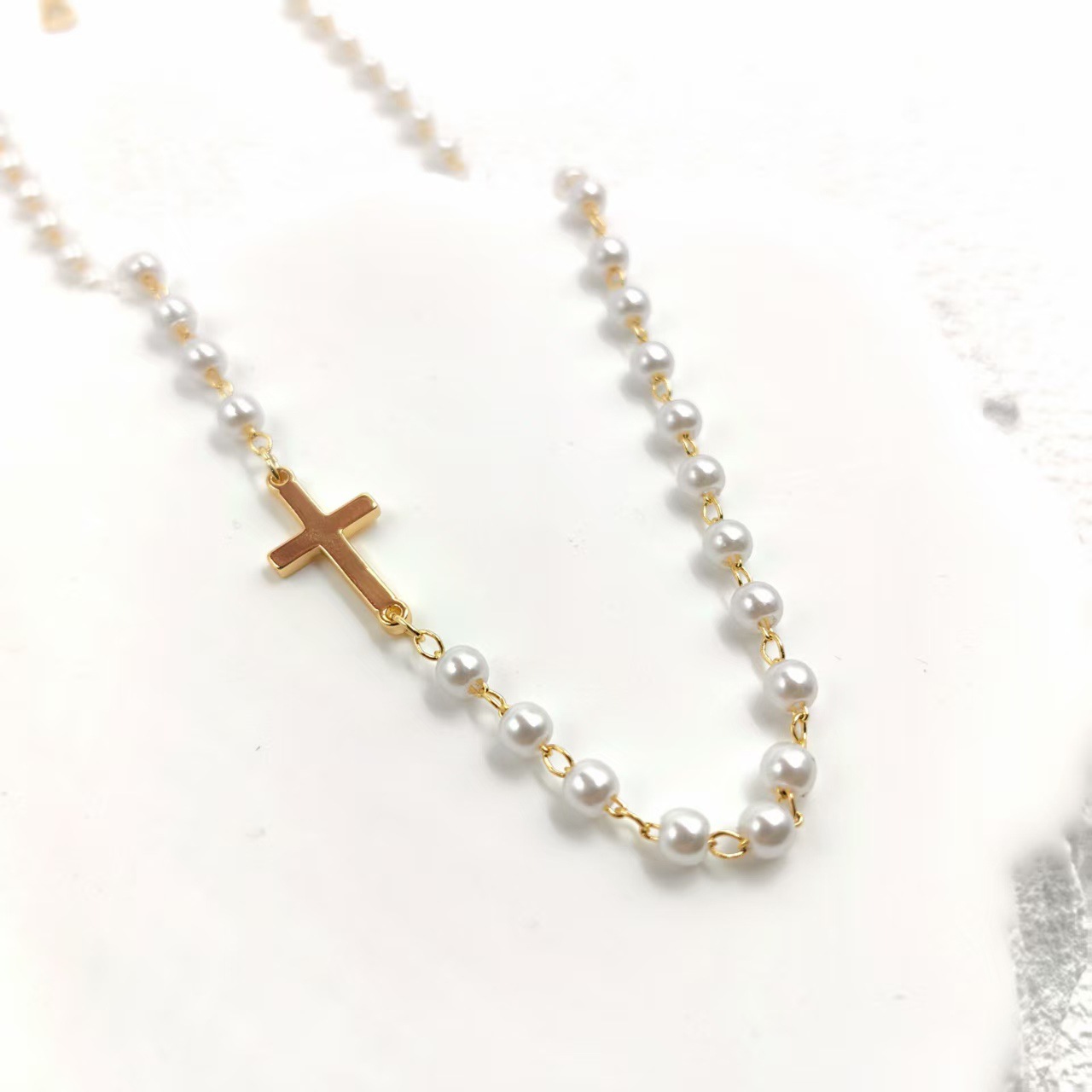 跨境亚马逊仿珍珠十字架项链轻奢简约时尚吊坠新款饰品个性百搭