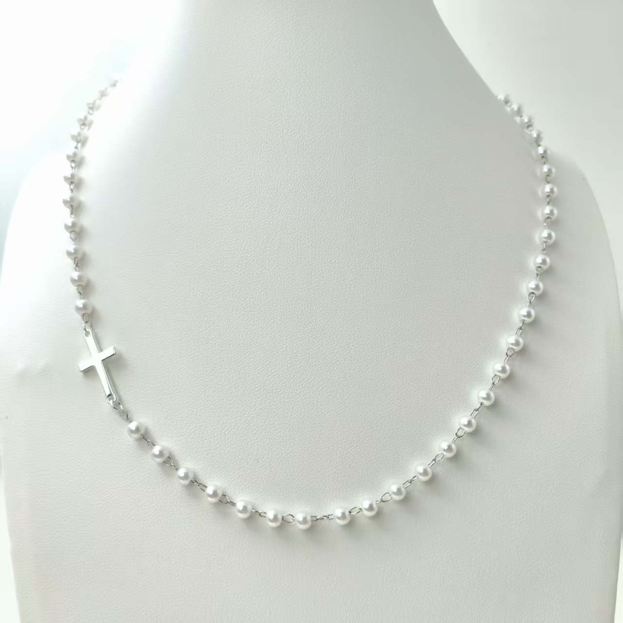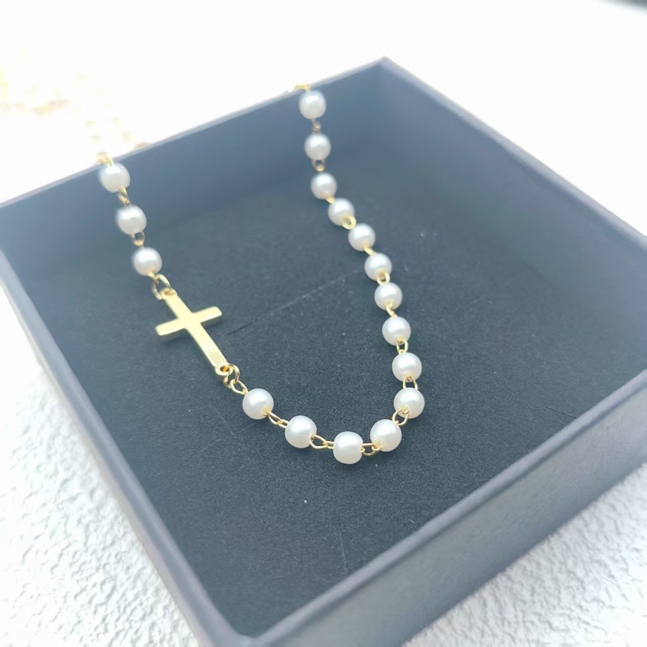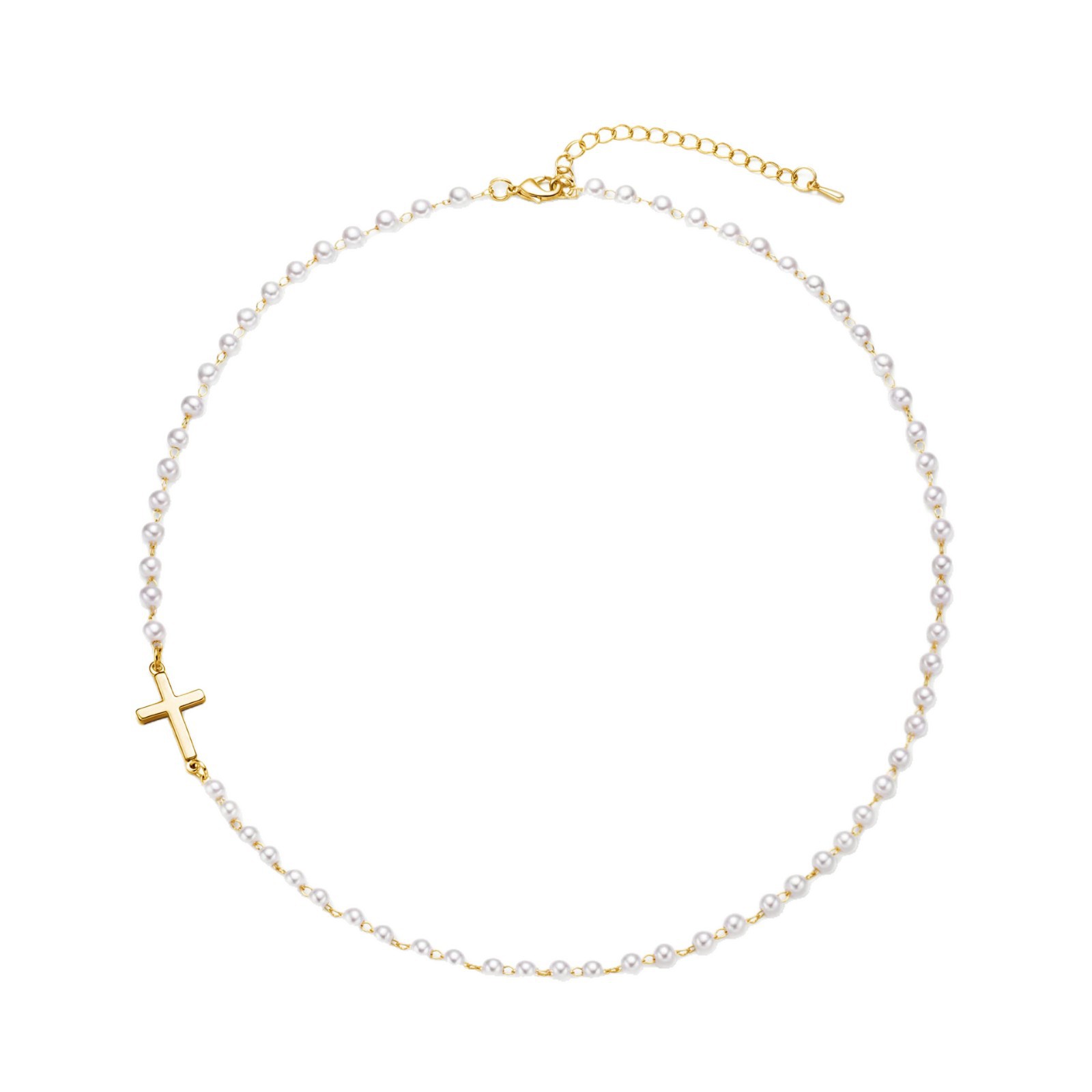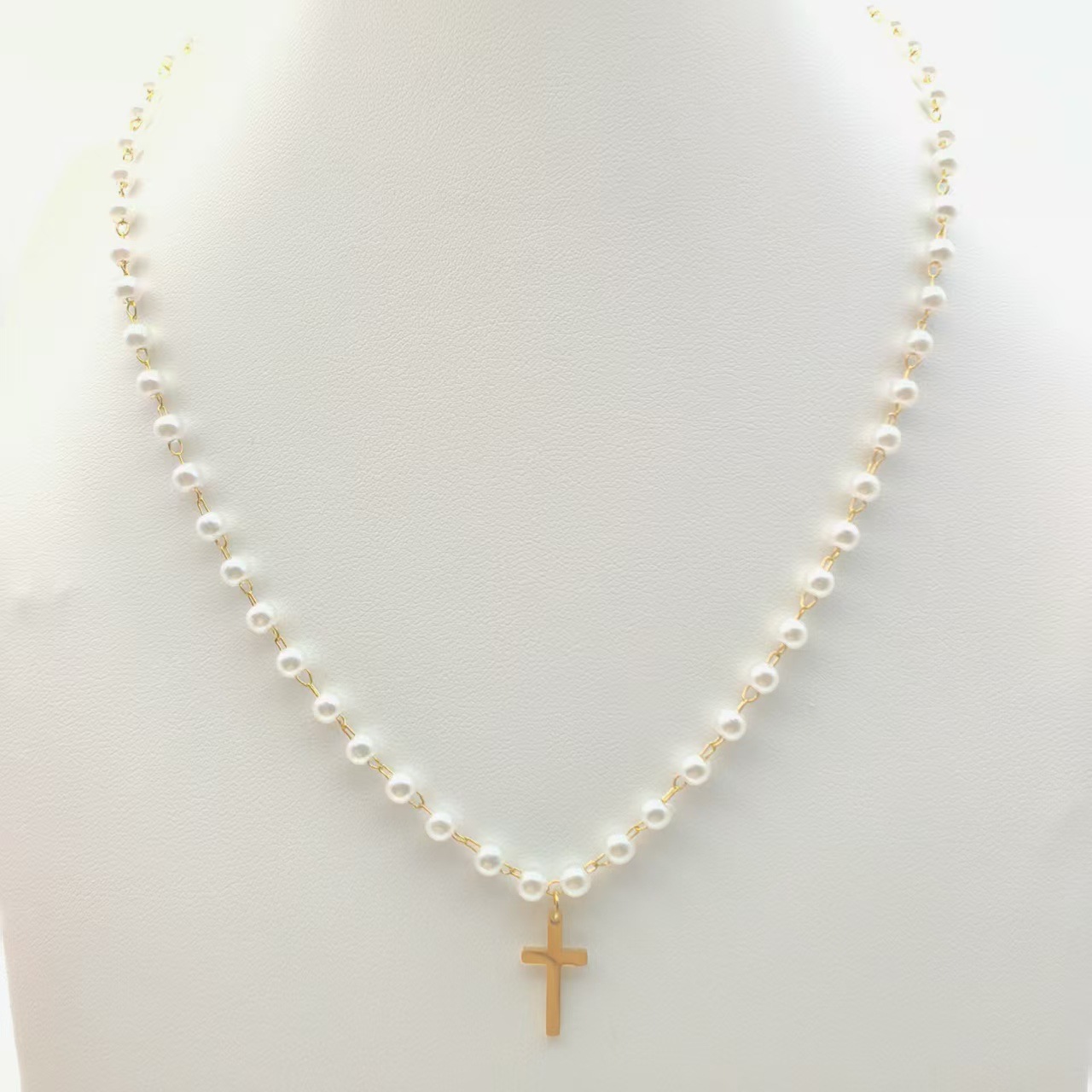 跨境亚马逊仿珍珠十字架项链轻奢简约时尚吊坠新款饰品个性百搭