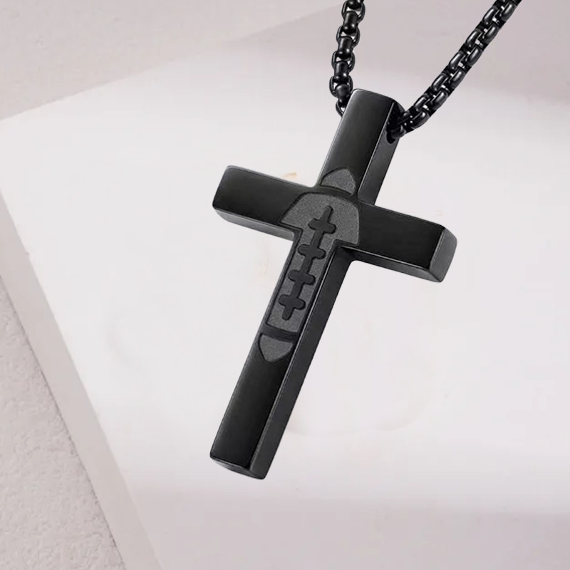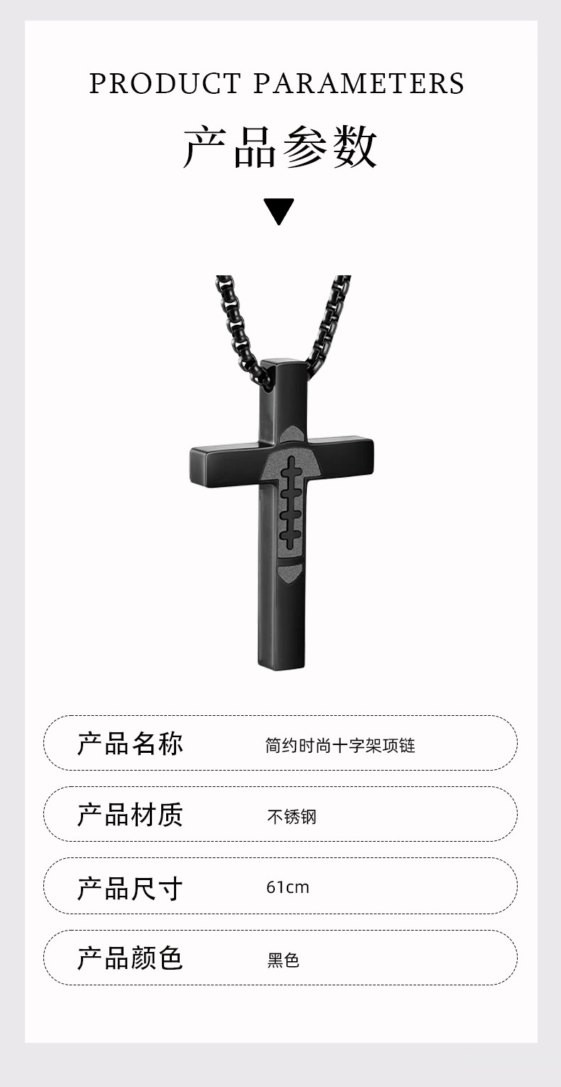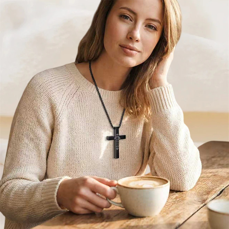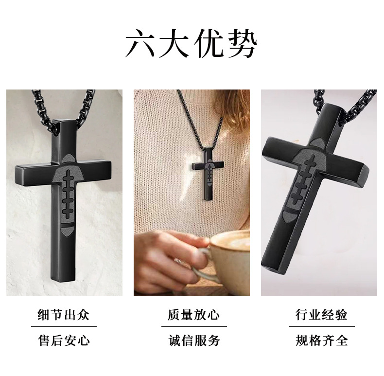 跨境新款简约时尚不锈钢十字架男士项链创意麻花链多层叠戴项饰品