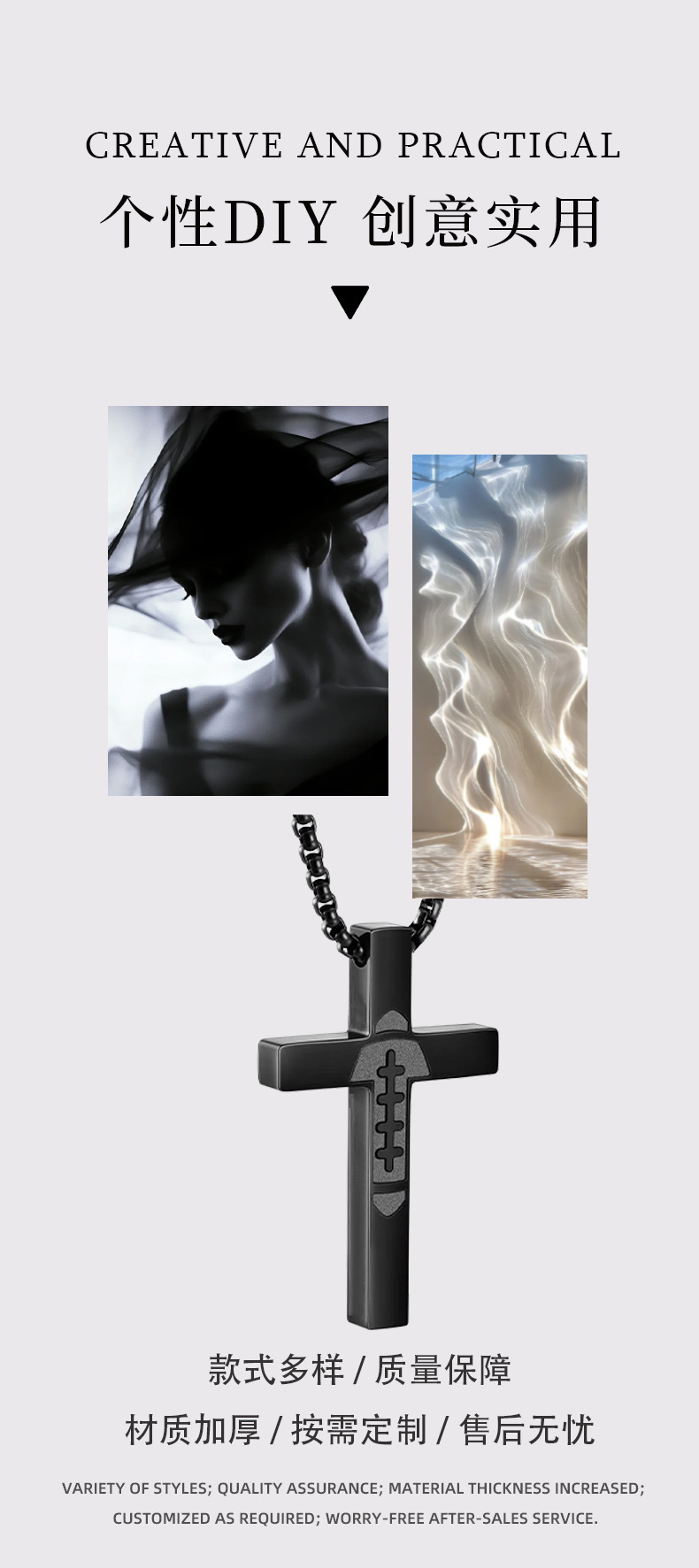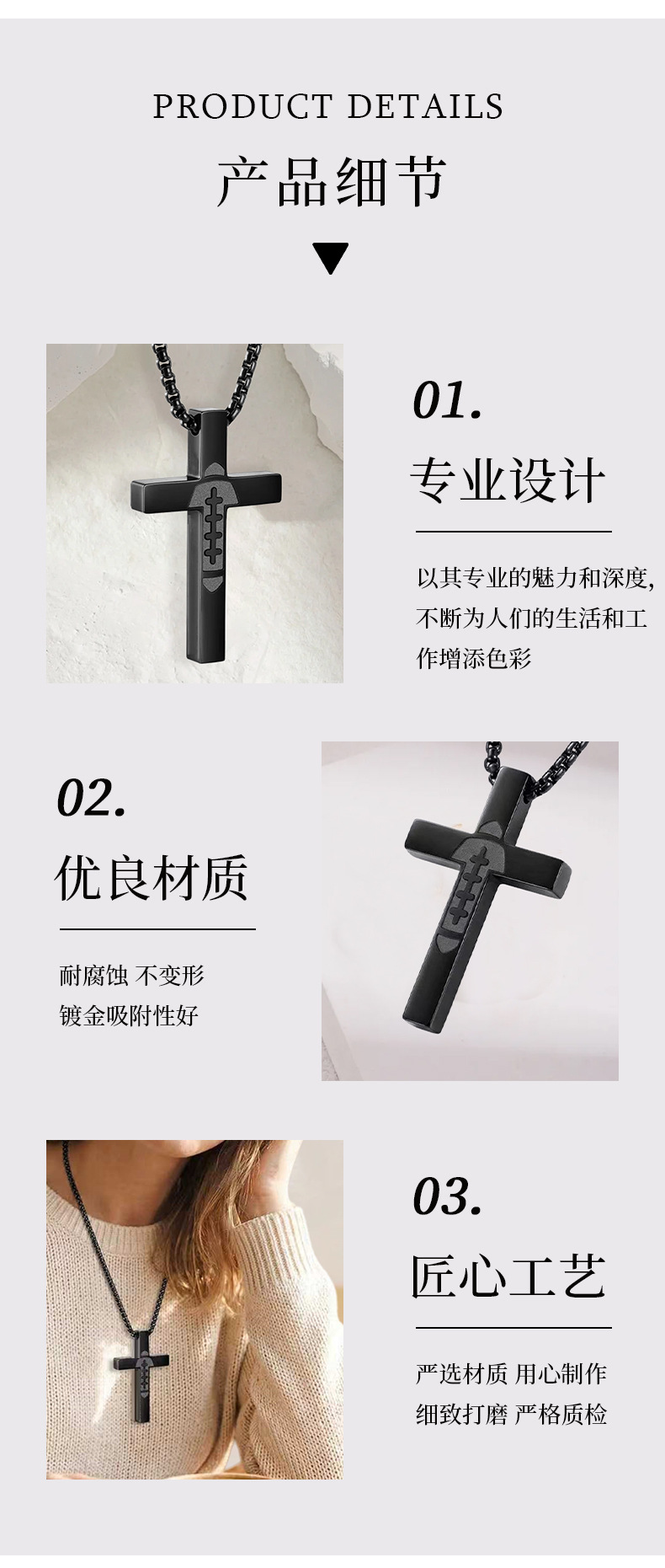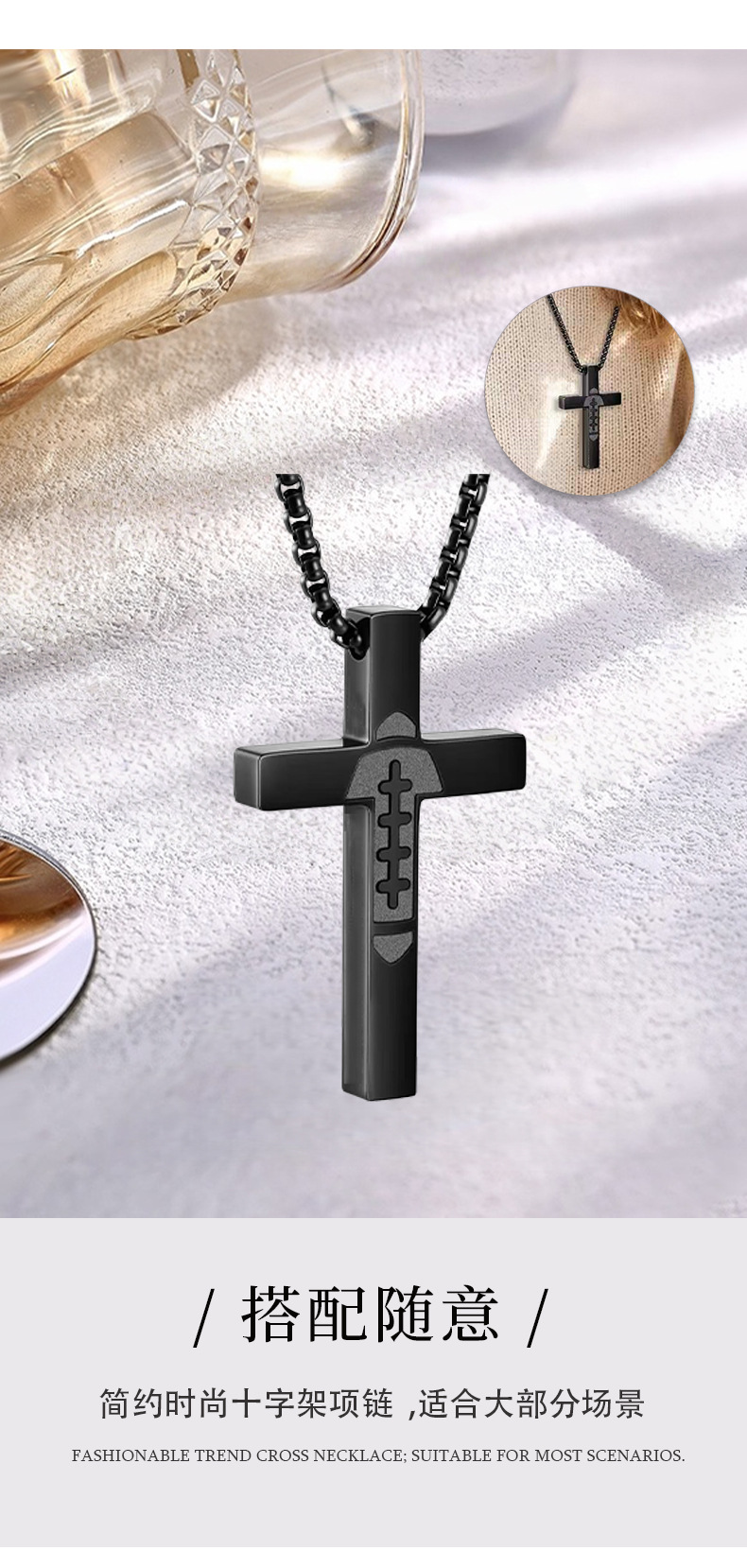 跨境新款简约时尚不锈钢十字架男士项链创意麻花链多层叠戴项饰品