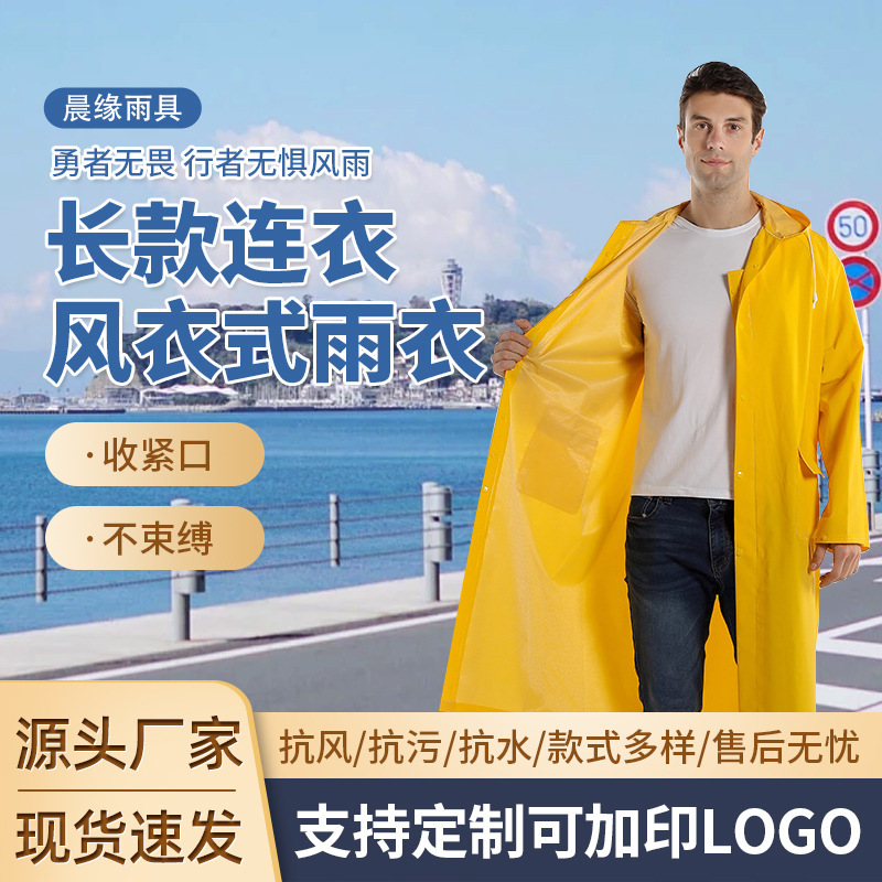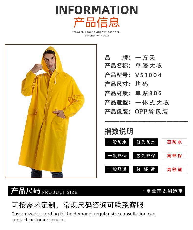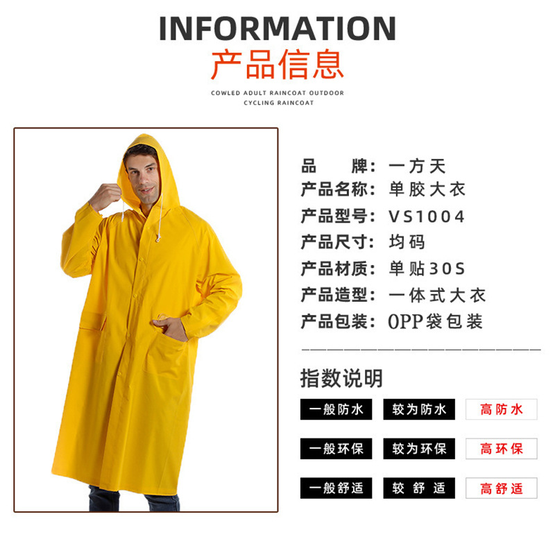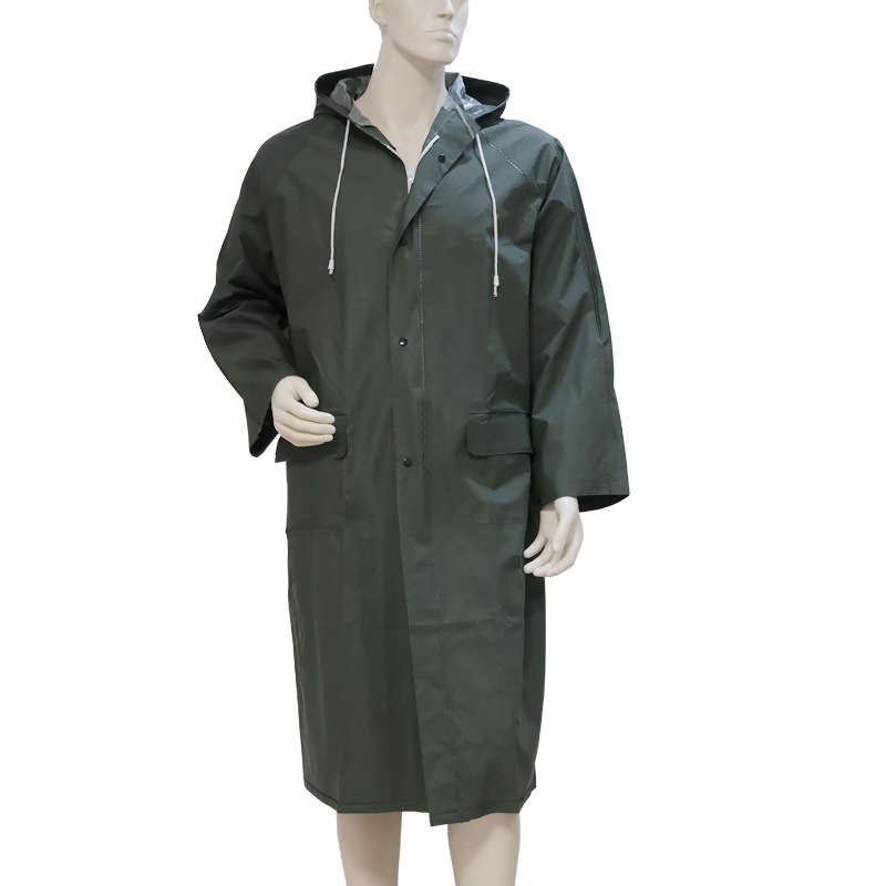 跨境户外劳保执勤两用加长雨衣pvc单胶雨披成人徒步连体雨衣批发