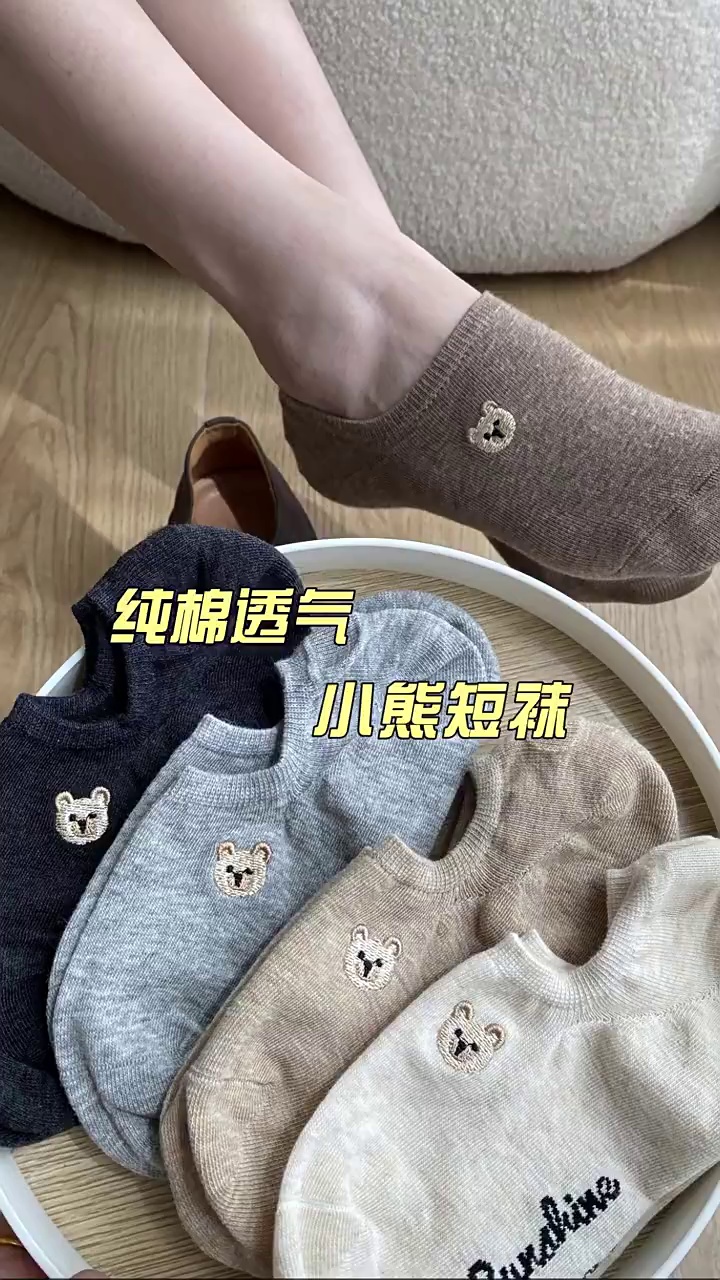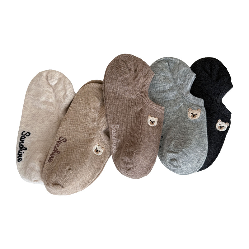 夏季船袜可爱卡通小熊刺绣短袜薄款防滑硅胶浅口袜女袜隐形袜子