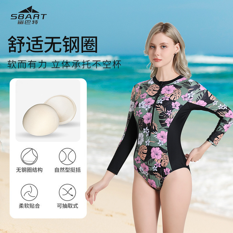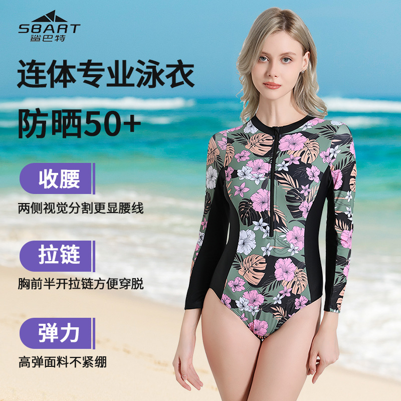 2026跨境新款连体泳衣长袖防晒拉链潜水服欧美外贸泳装女士冲浪服
