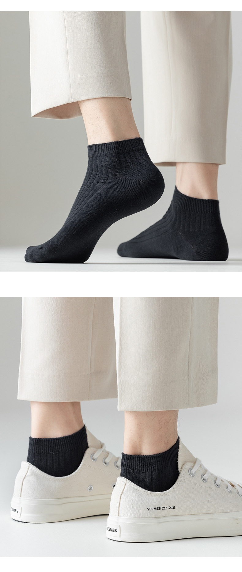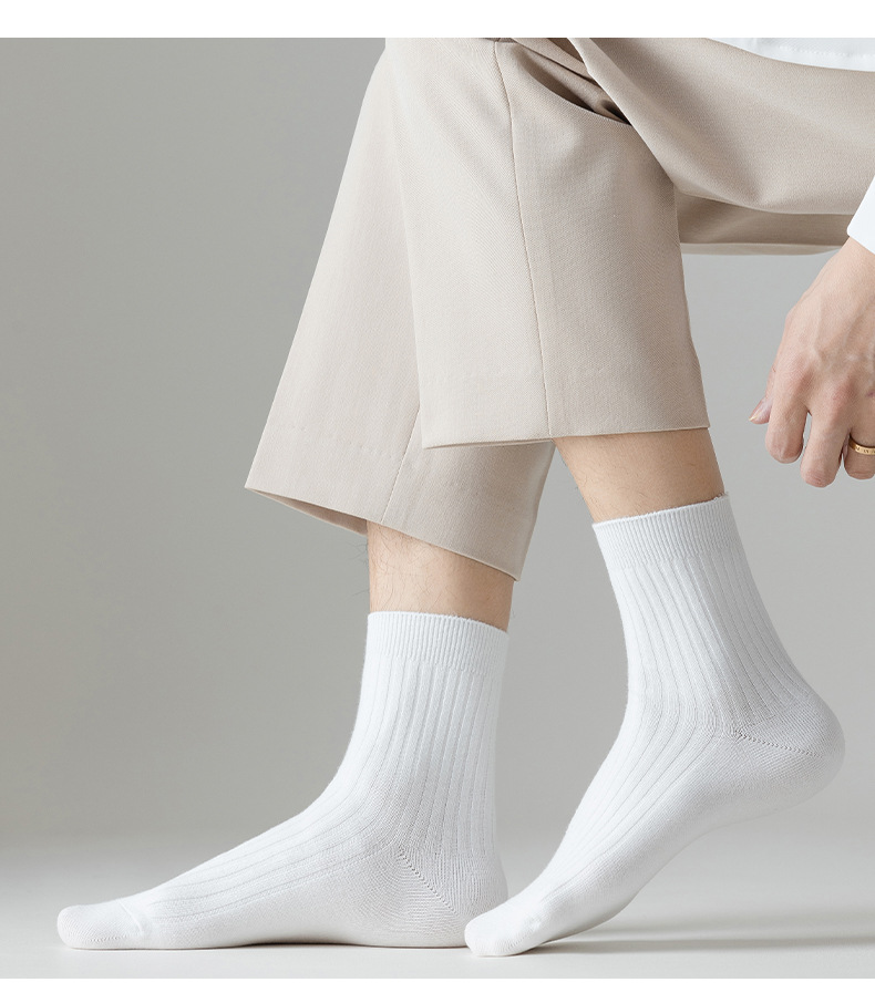 袜子男春秋吸汗棉袜双针中筒袜商务休闲长袜黑白灰百搭短筒男袜