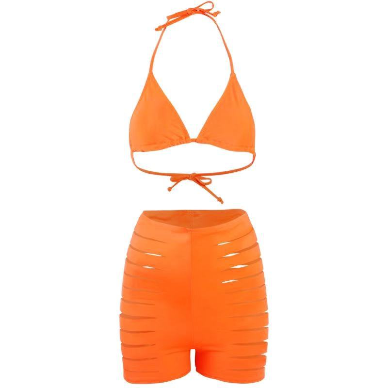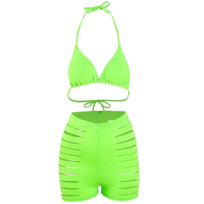 跨境2026新款分体泳衣bikini亚马逊纯色切割镂空比基尼欧美泳装女