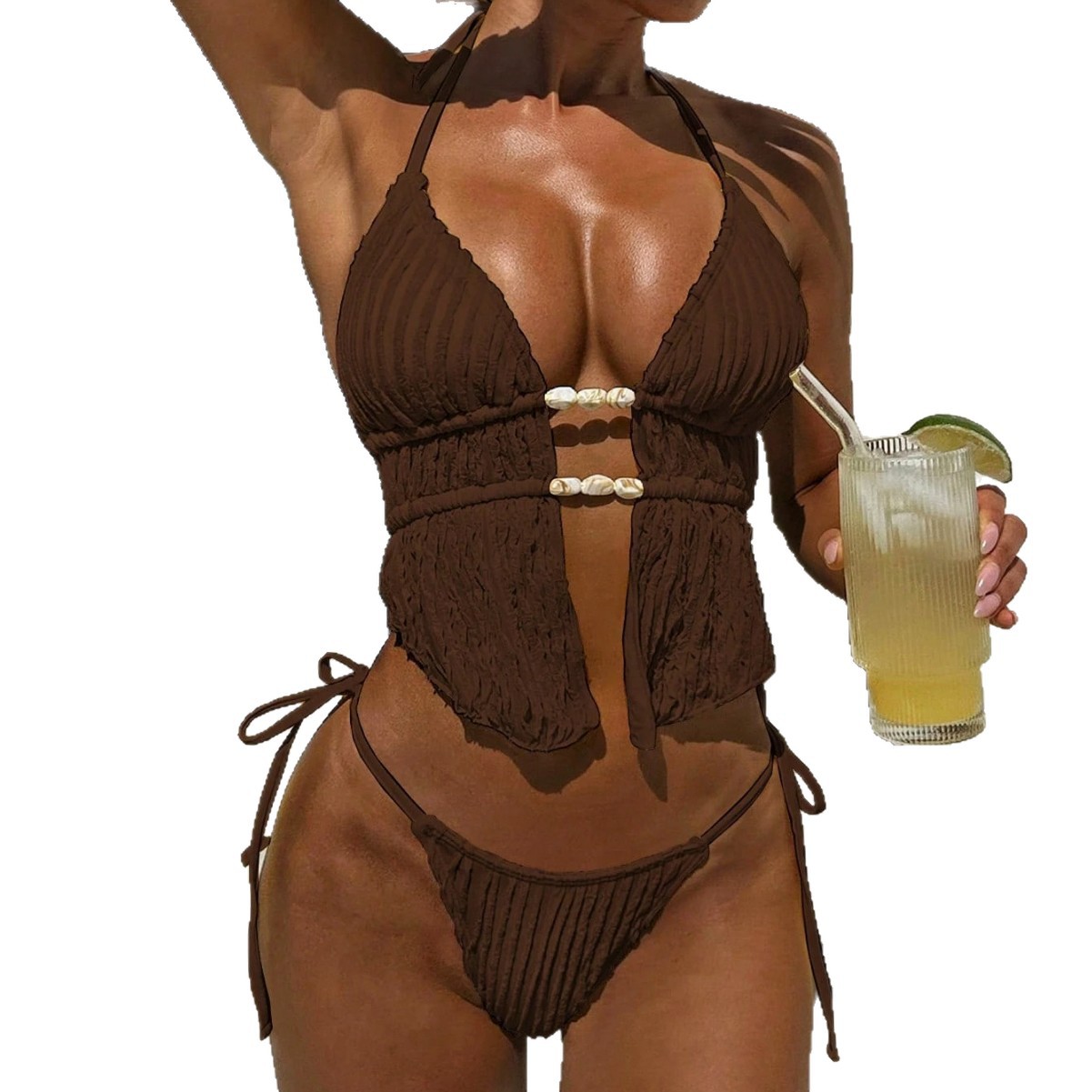 新品跨境专供挂脖绑带分体泳衣女欧美性感辣妹亚马逊比基尼两件套