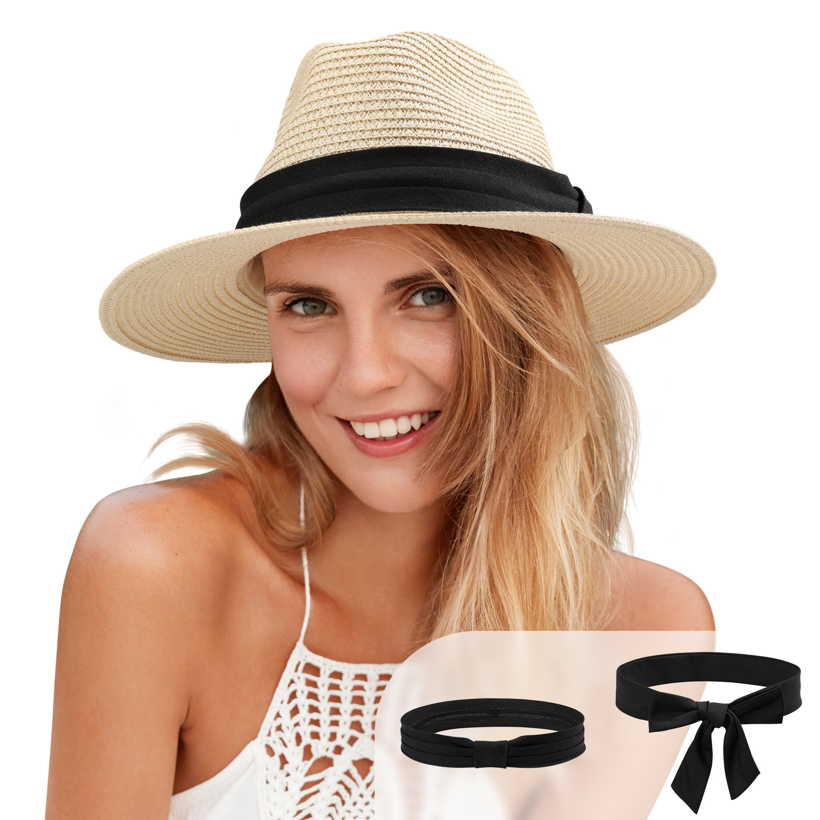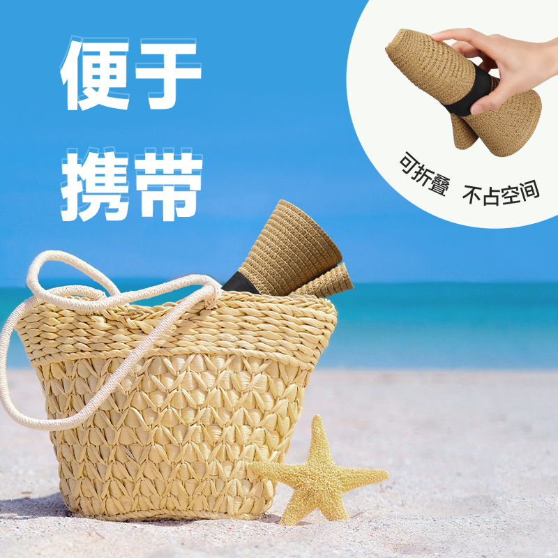 法式太阳帽女高级感草帽大头围夏季防晒遮阳沙滩海边度假草编帽