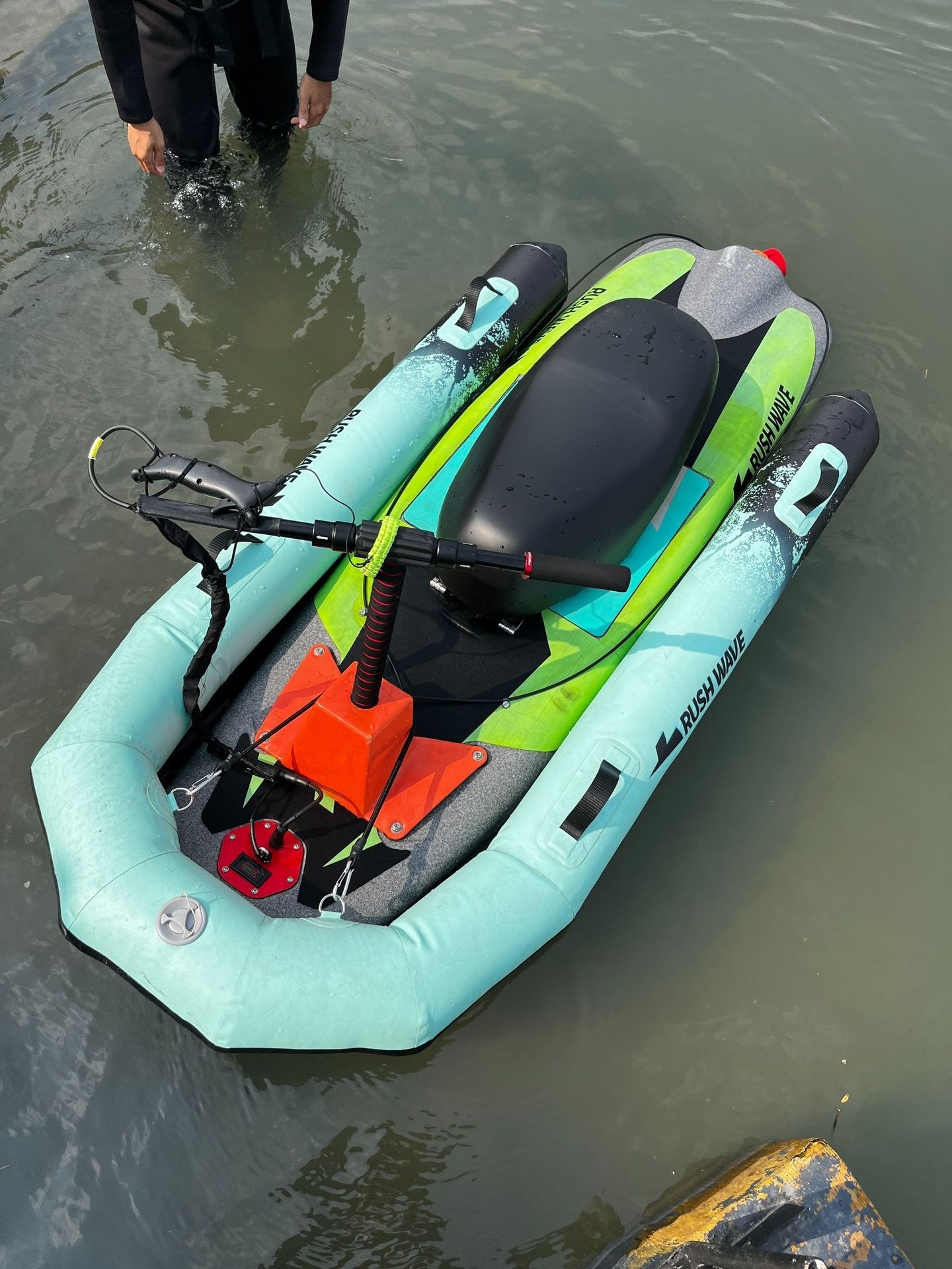 RUSHWAVE看灰机电动冲浪板快艇 水上运动高速两用动力滑板充气板