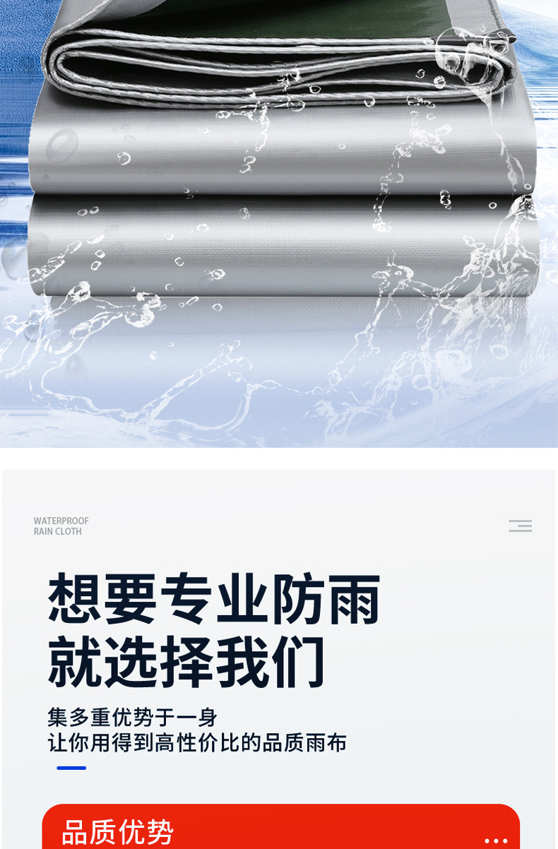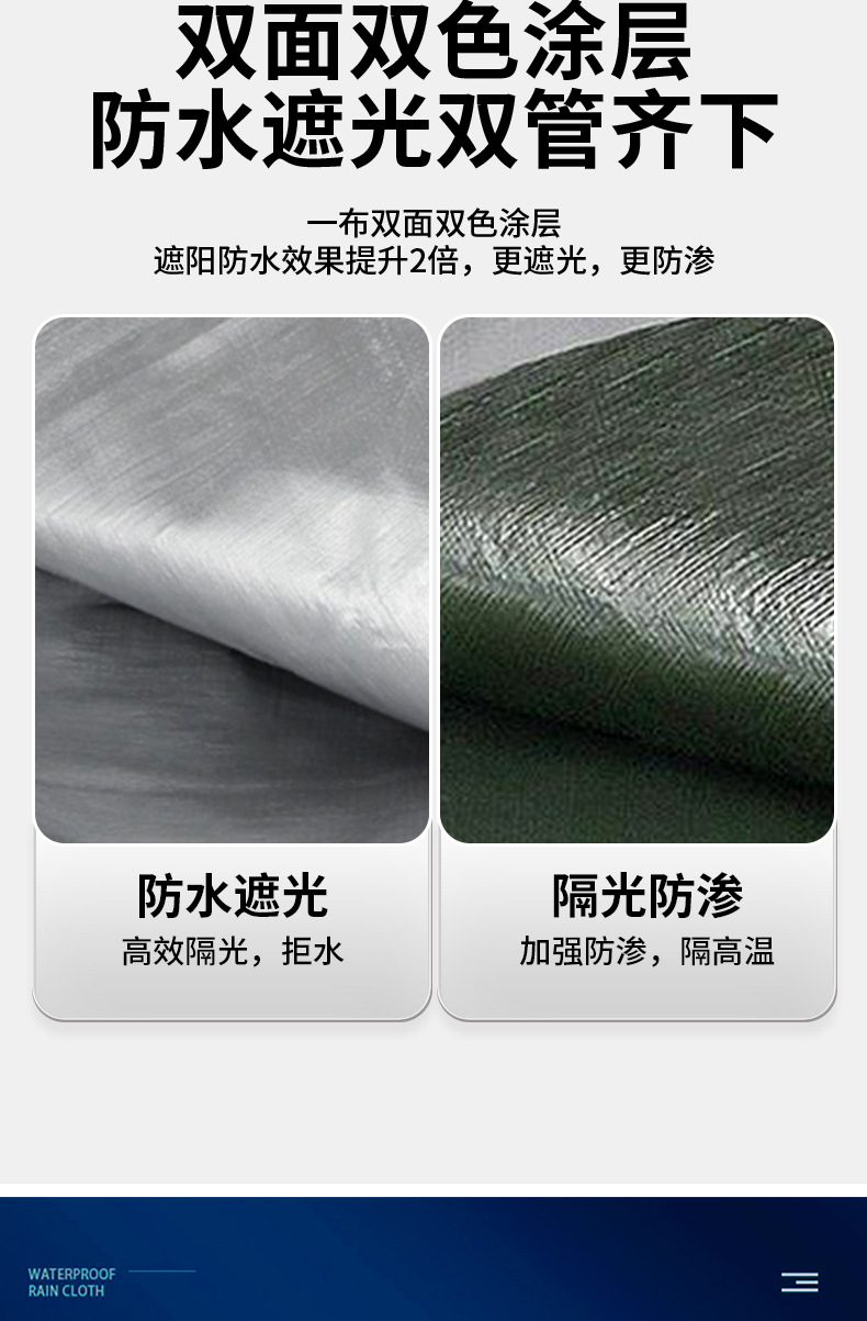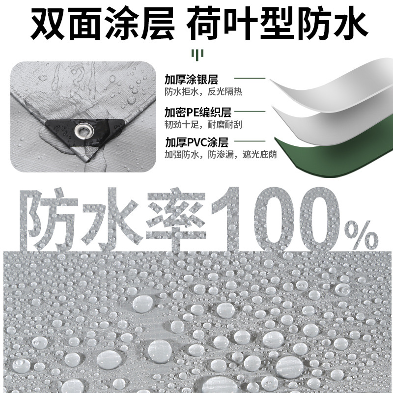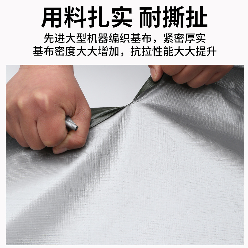 加厚银绿防雨布防水布遮阳雨棚布防水篷布PE塑料露营地垫防晒雨布