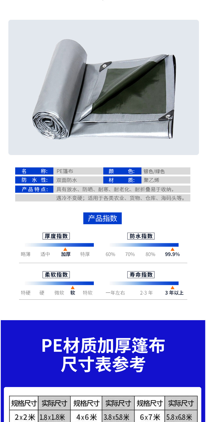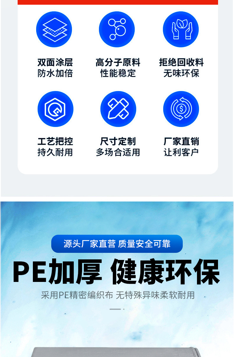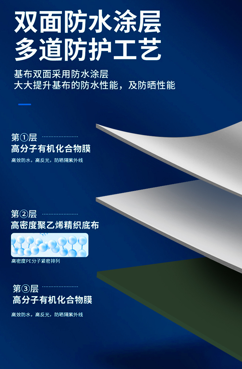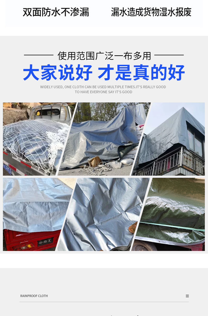 加厚银绿防雨布防水布遮阳雨棚布防水篷布PE塑料露营地垫防晒雨布