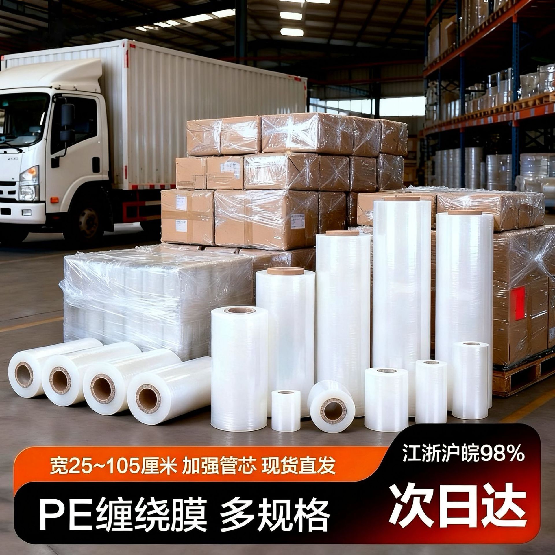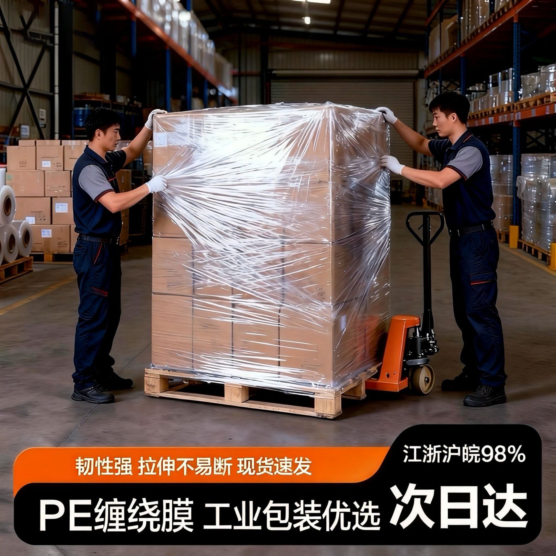 PE缠绕膜拉伸膜打包装膜工业保鲜膜商用透明塑料薄膜外卖封口膜批