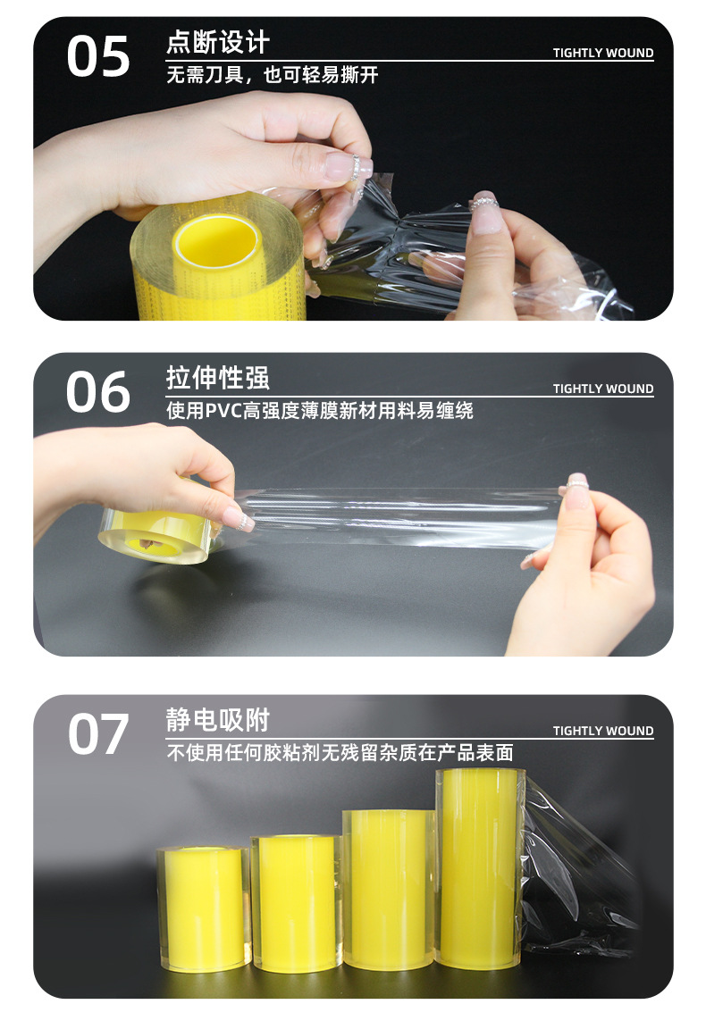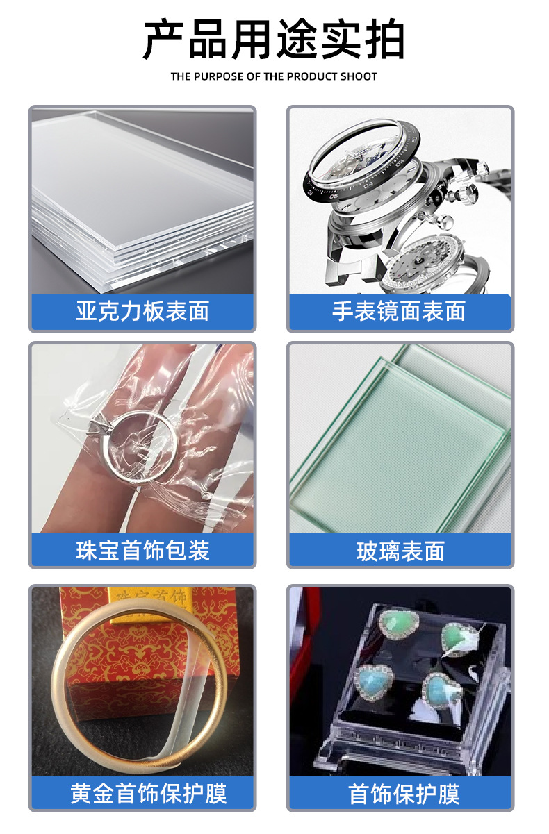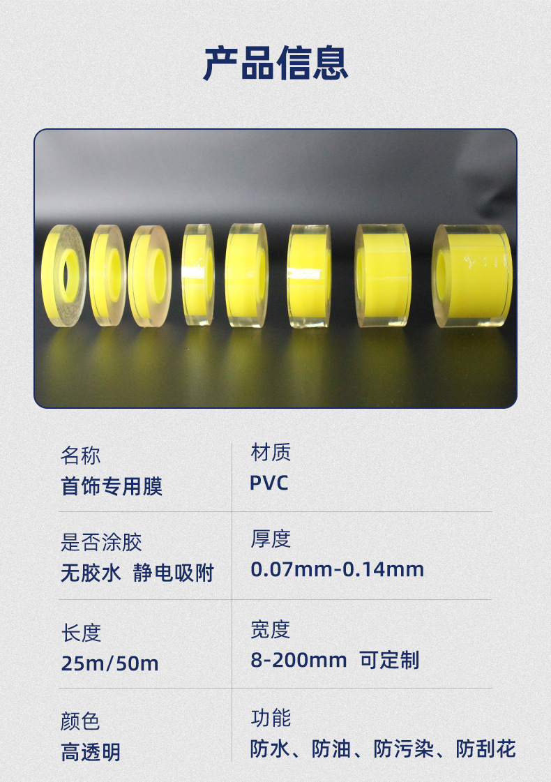 厂家批发PVC透明保护膜首饰包装静电膜手镯手链防尘防刮花自粘膜