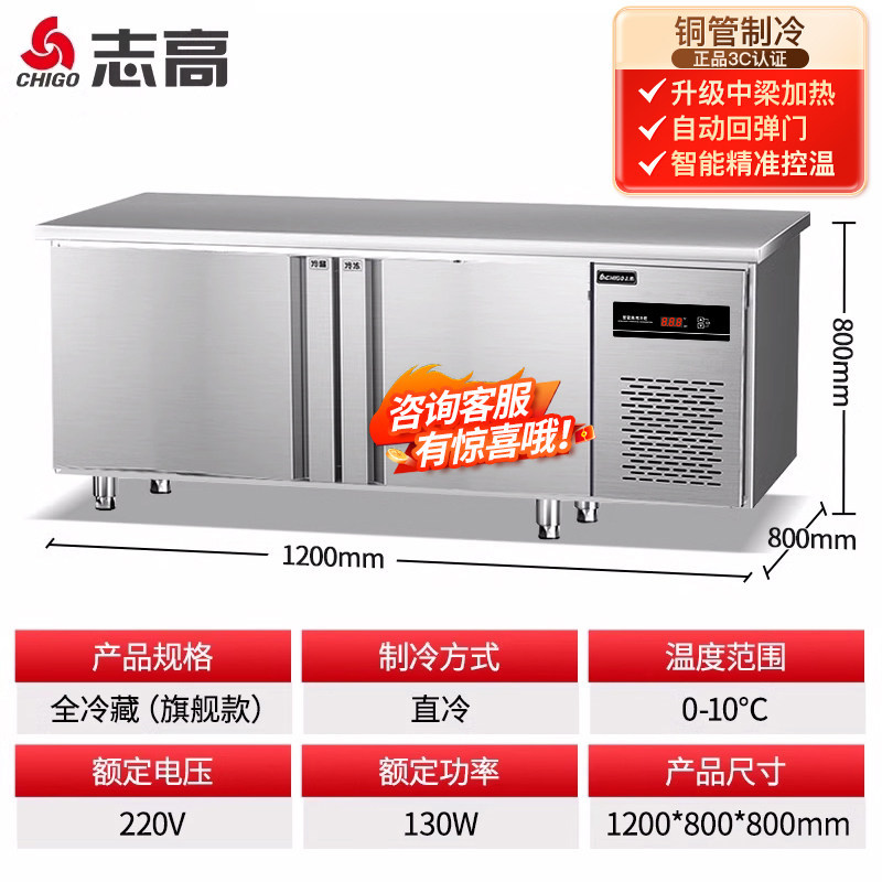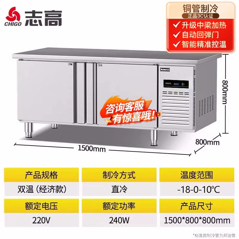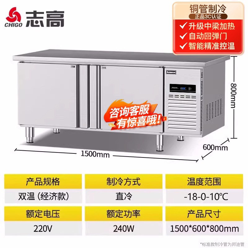 志高冷藏工作台商用冰柜冷冻柜奶茶水吧台卧式冰箱保鲜平冷操作台