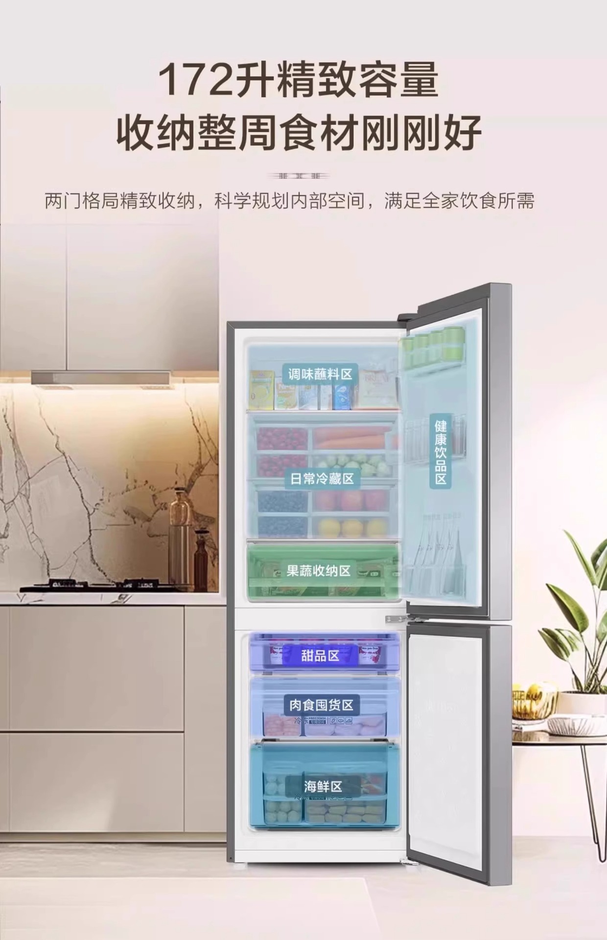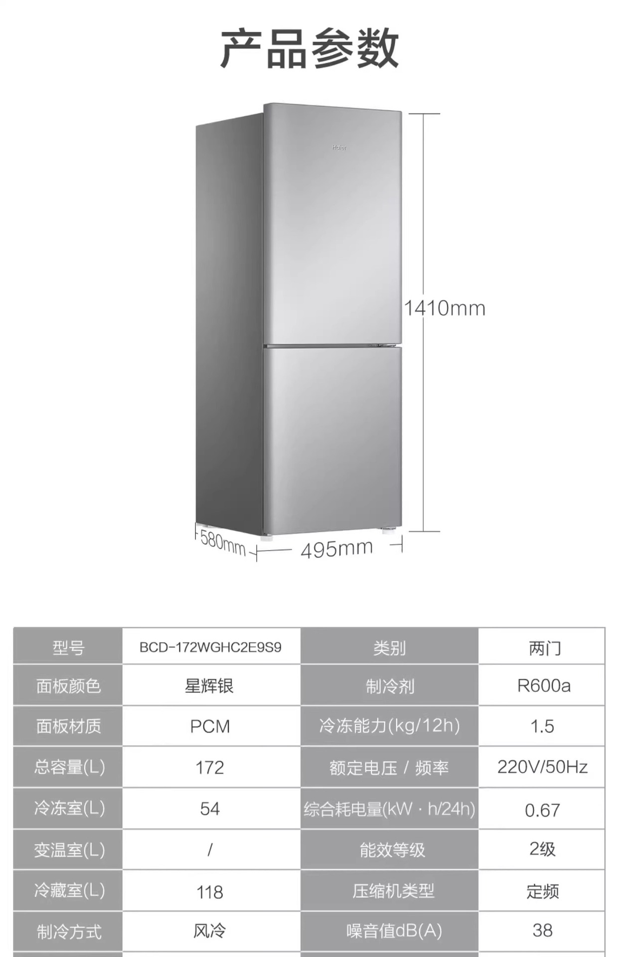 海尔冰箱新款风冷无霜家用172升电冰箱两门节能低噪租房宿舍