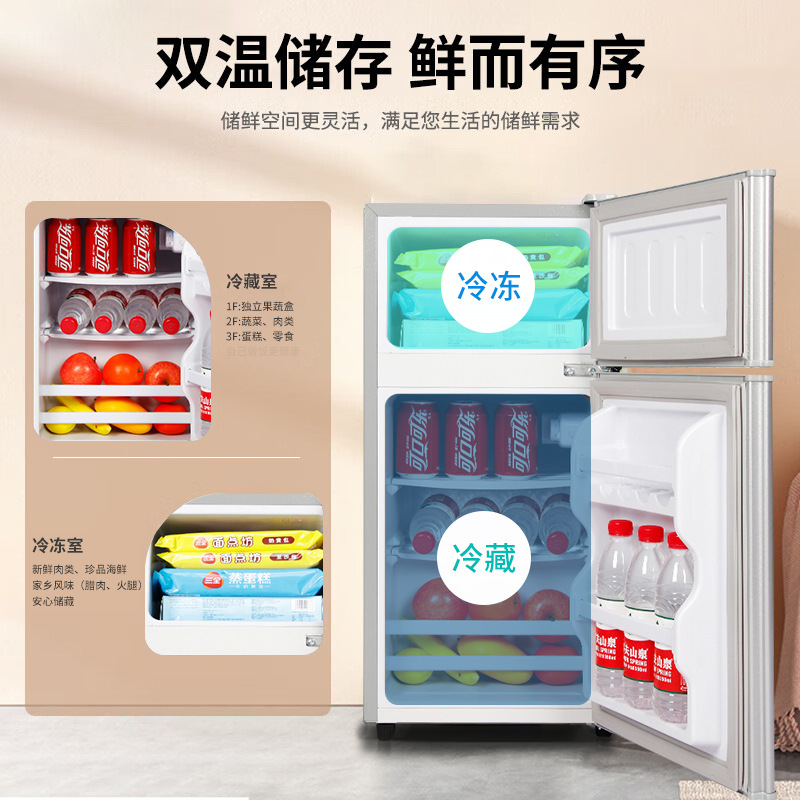 小冰箱家用一级能效宿舍用办公室冷藏冷冻两用双门电冰箱省电
