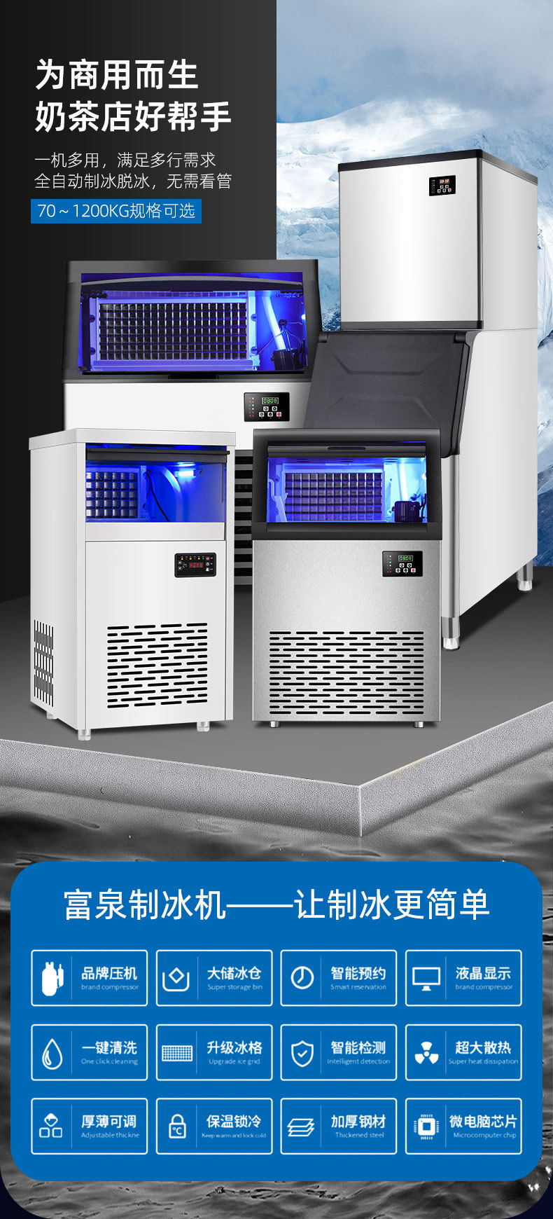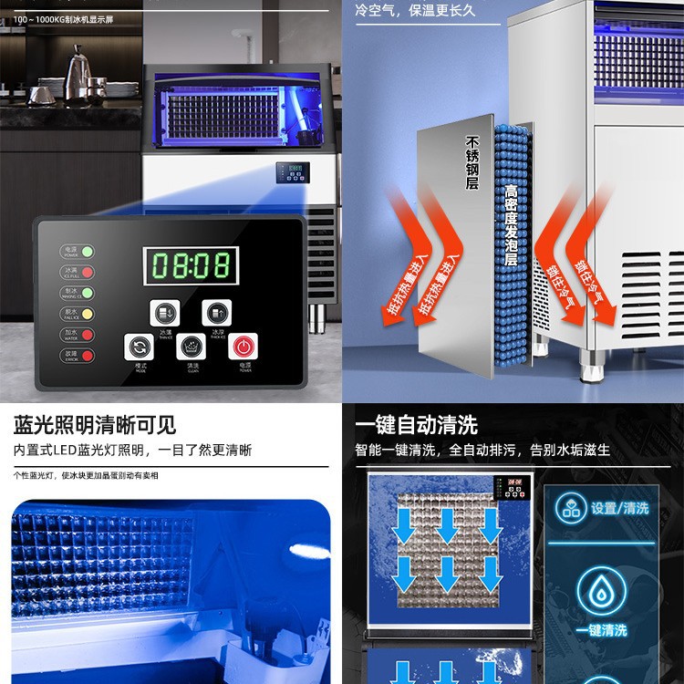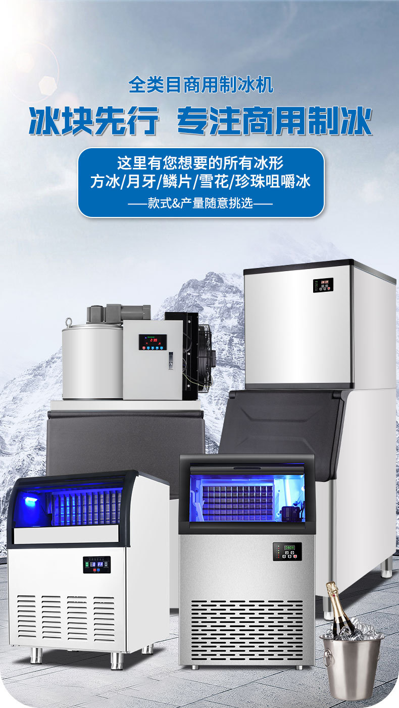 制冰机商用奶茶店酒吧KTV方冰月牙冰块机厂家批发110/220V 制冰机