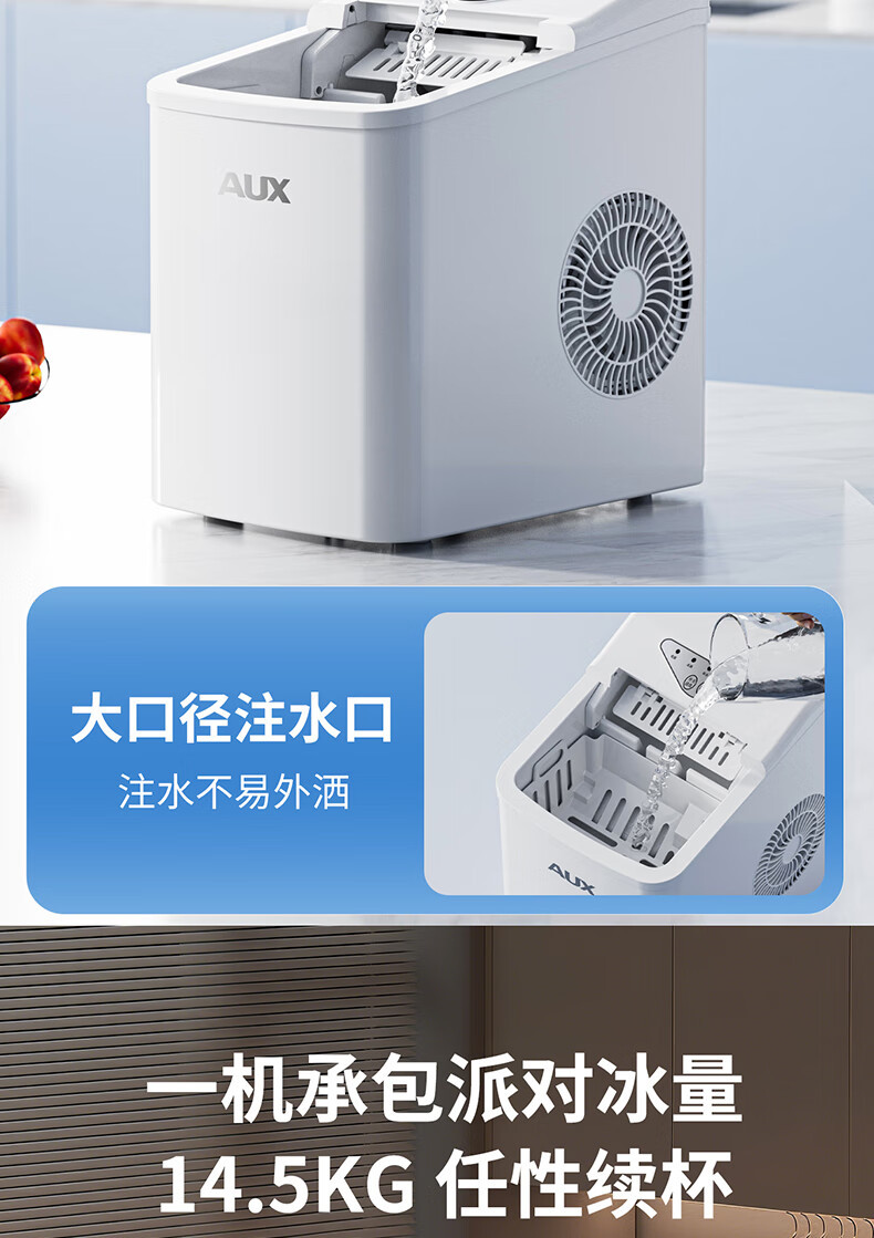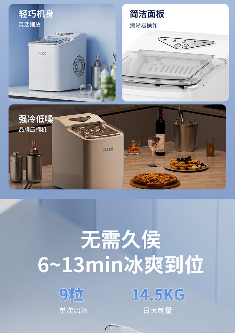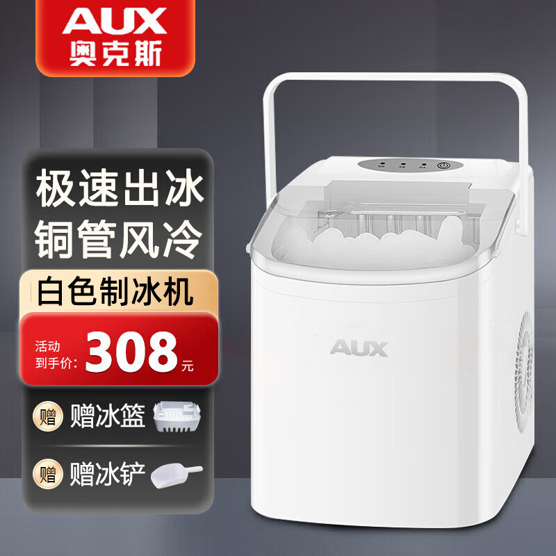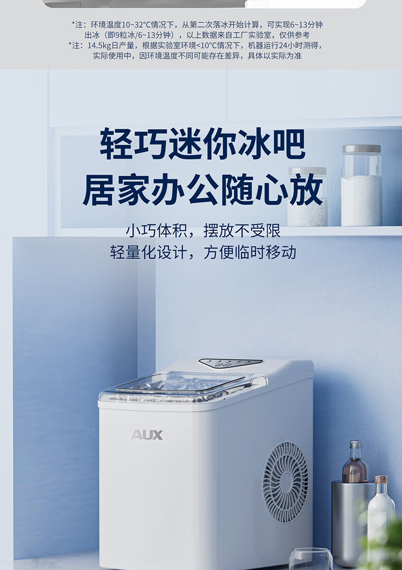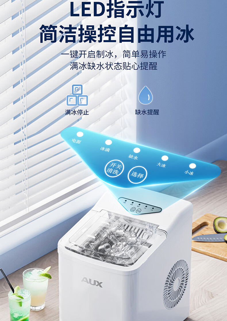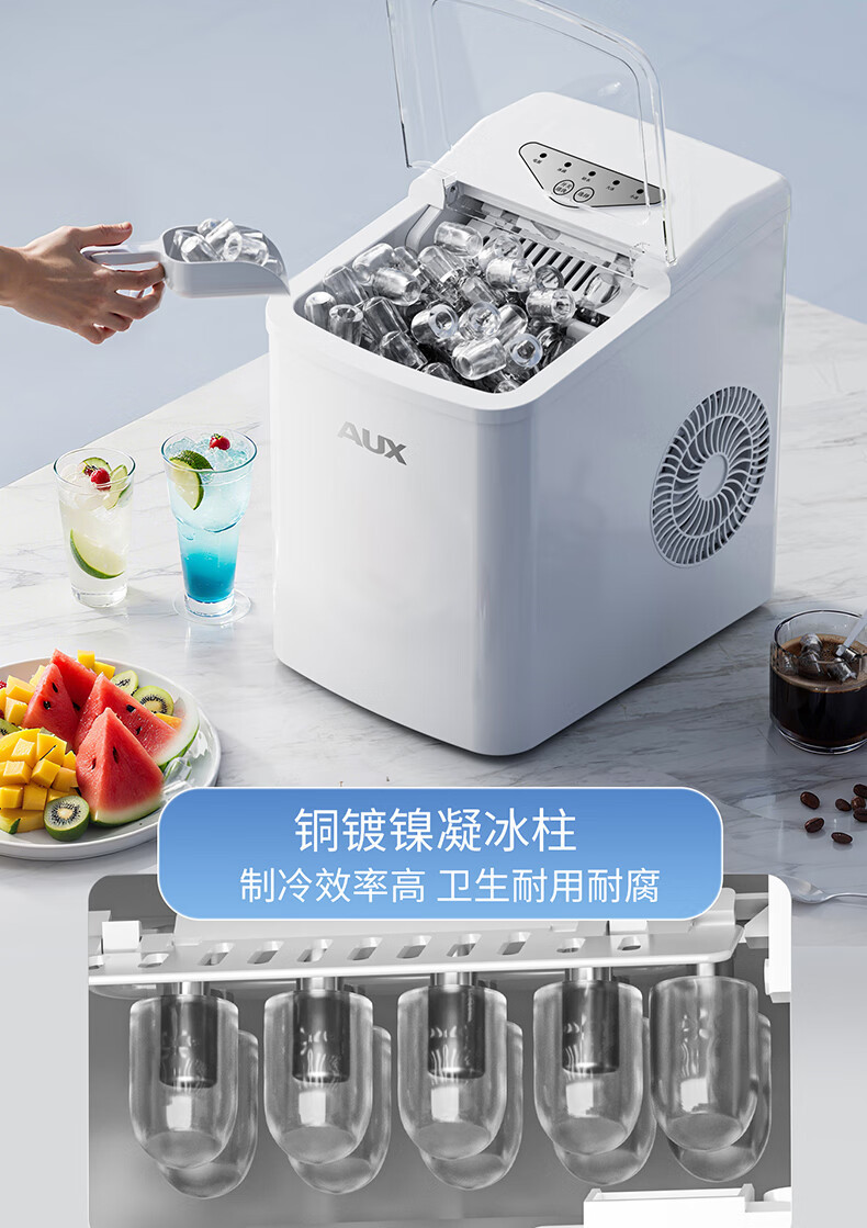 奥克斯制冰机小型家用全自动迷你便携制冰块商用宿舍子弹冰制冰机