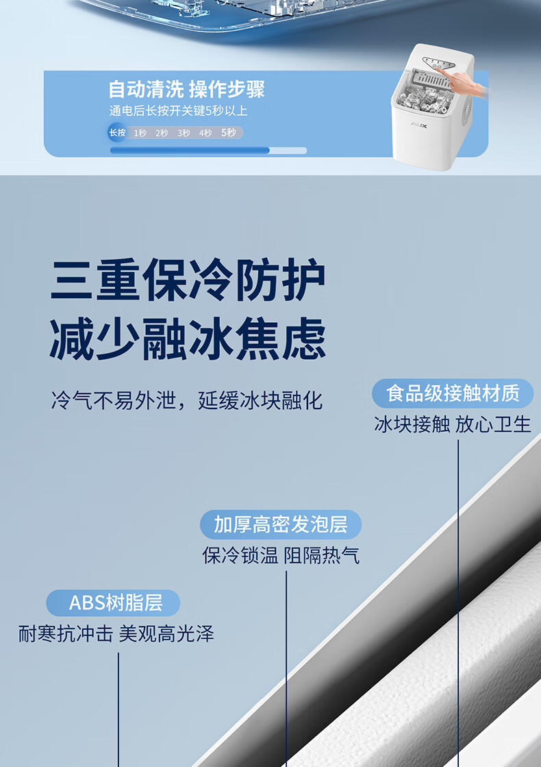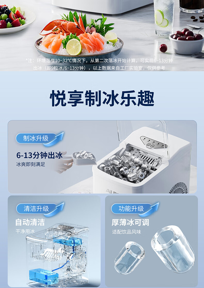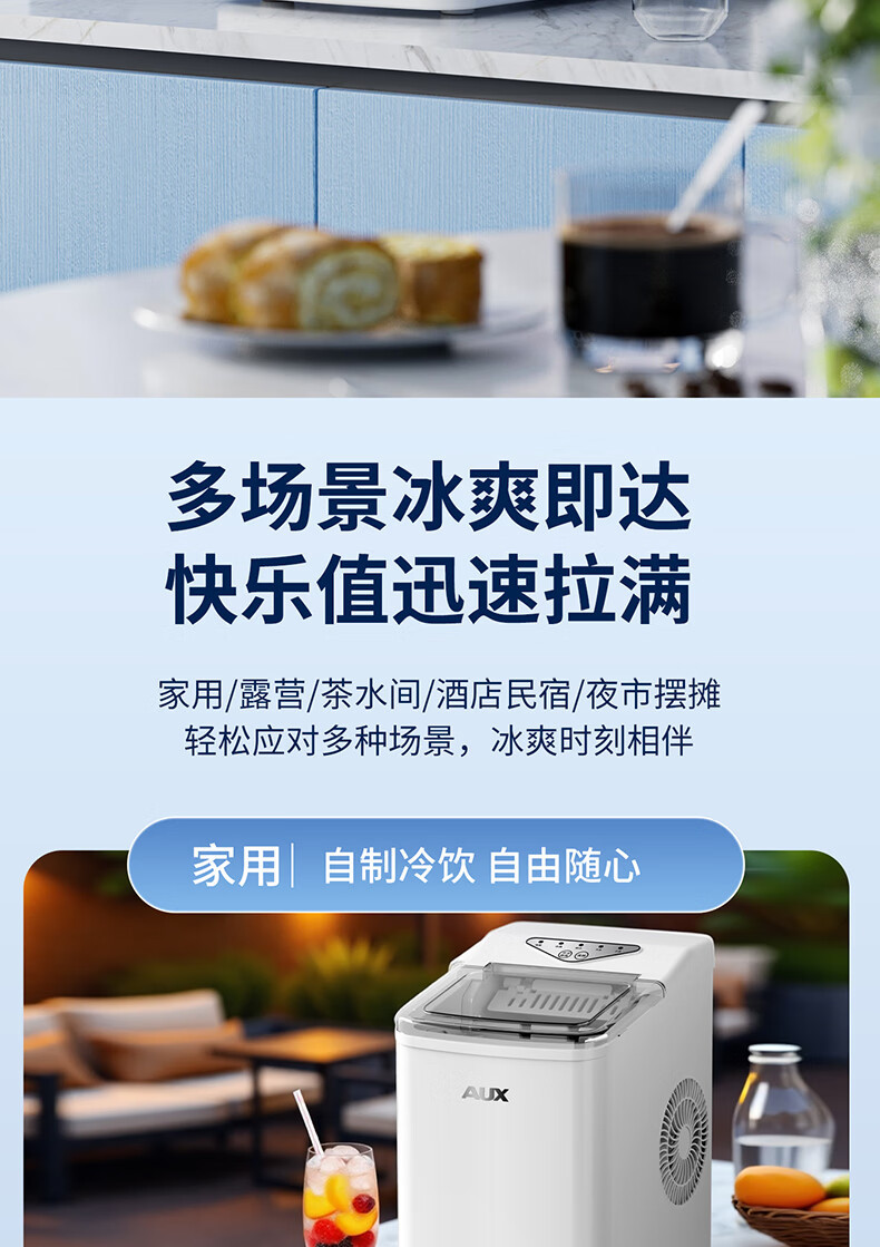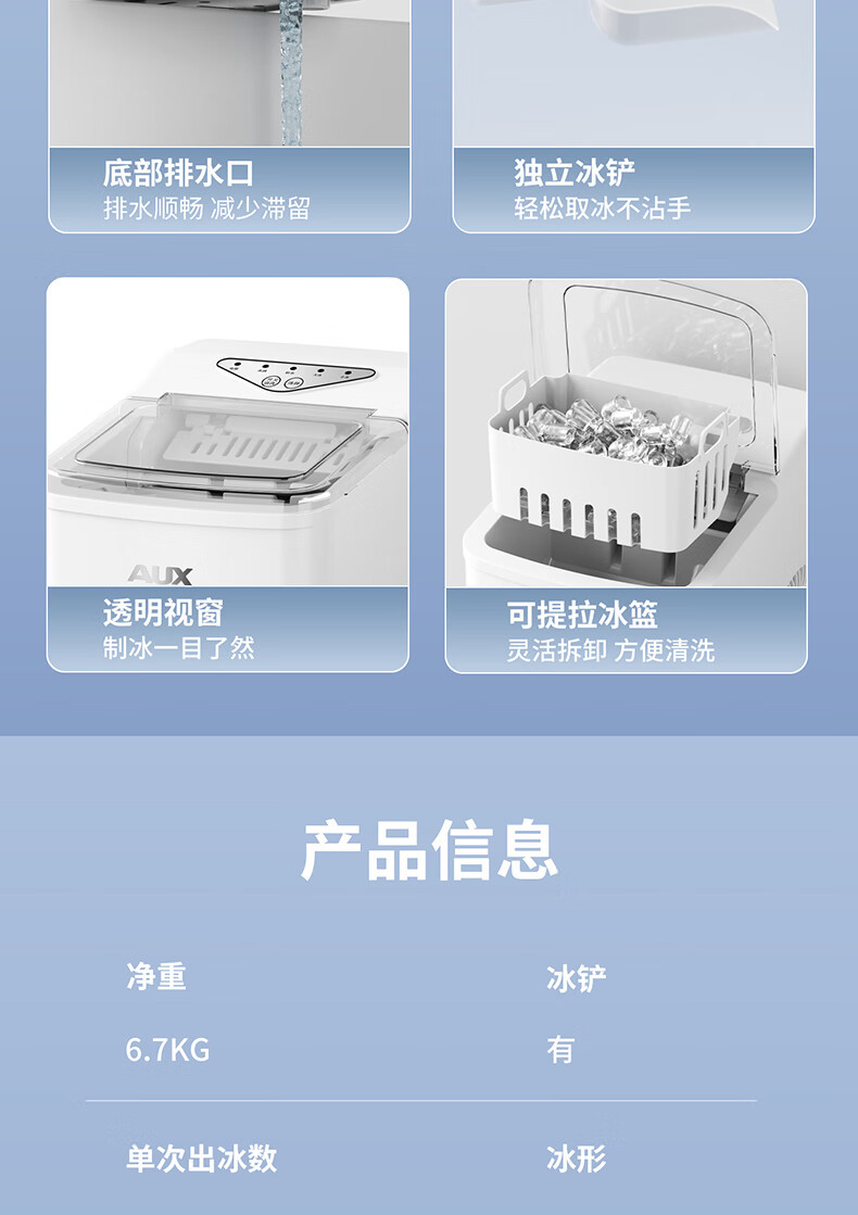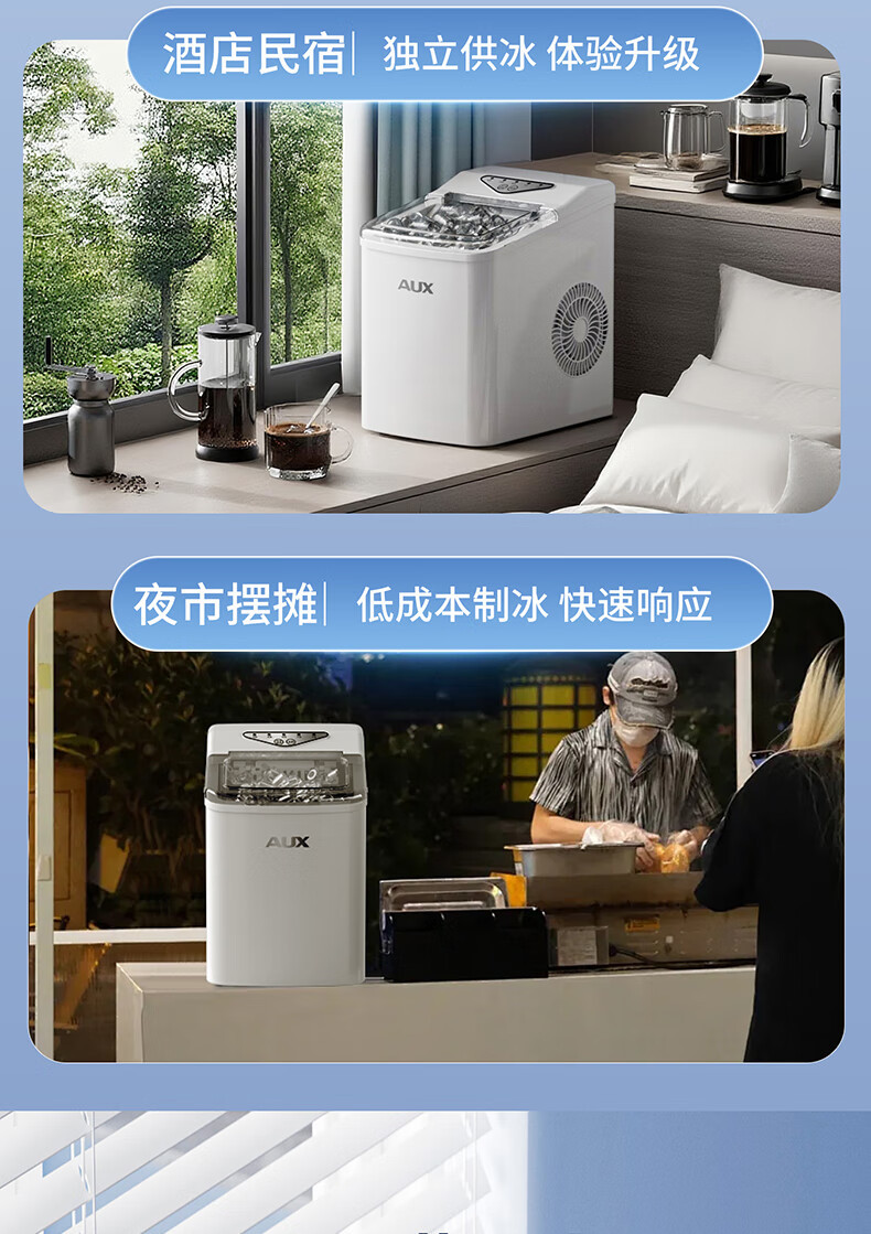 奥克斯制冰机小型家用全自动迷你便携制冰块商用宿舍子弹冰制冰机
