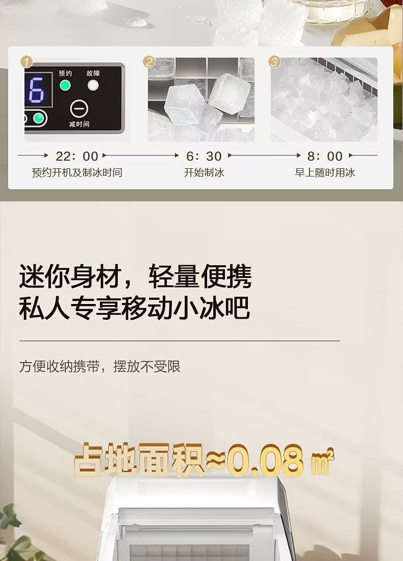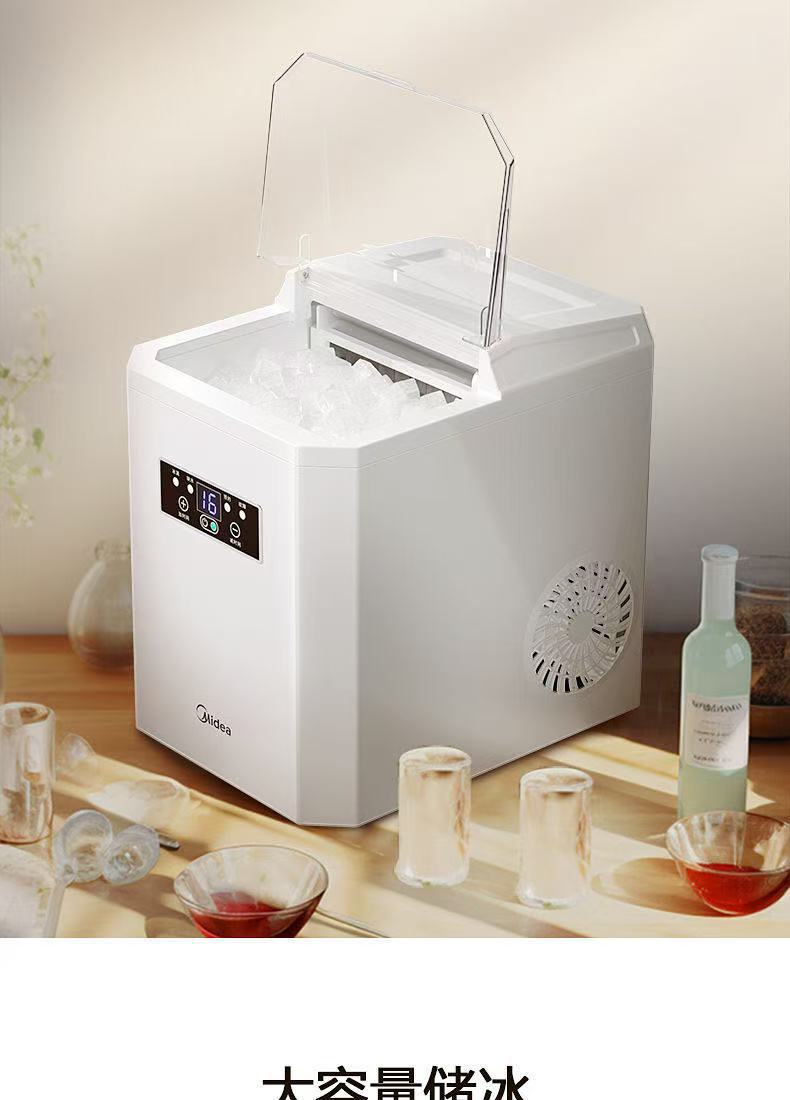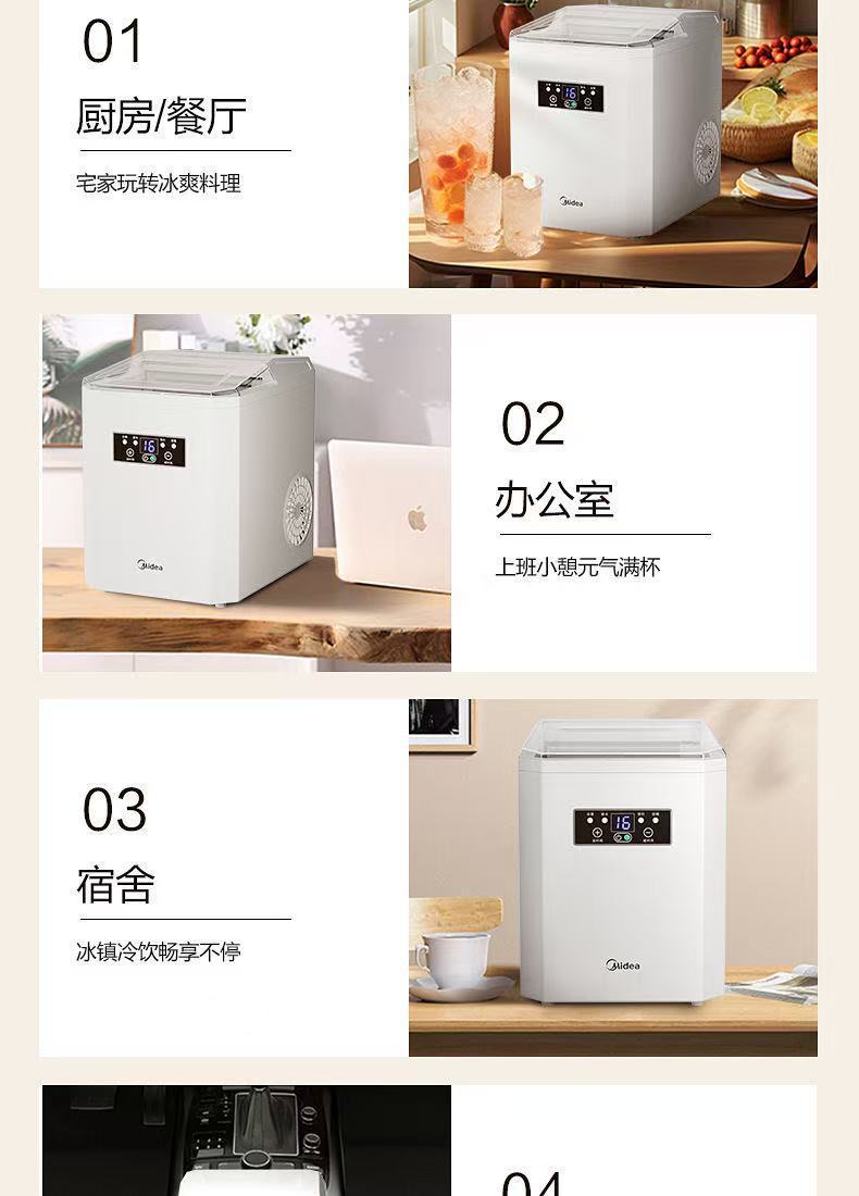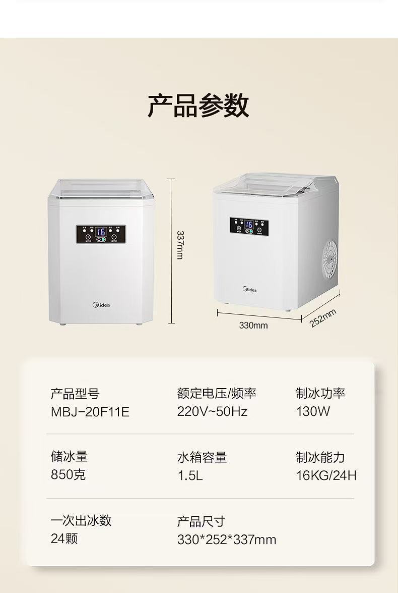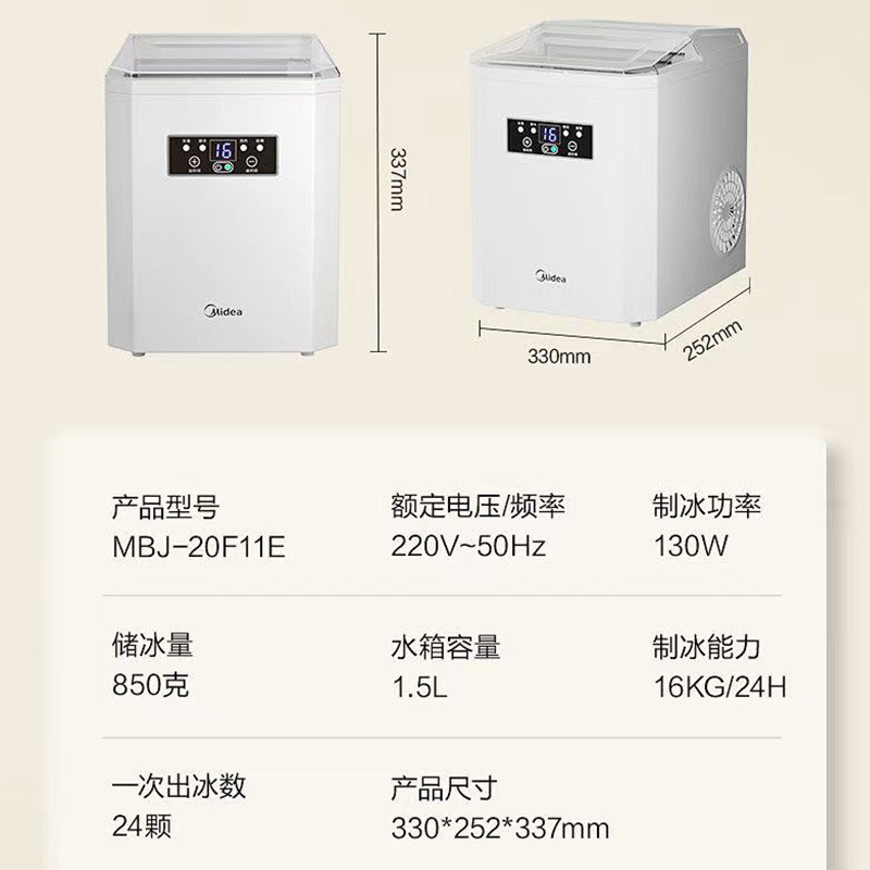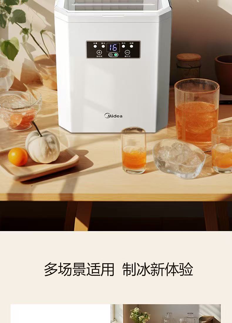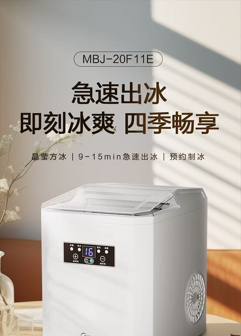 美的制冰机商用奶茶店小型家用宿舍自动进水方冰冰块机MBJ-20F11E