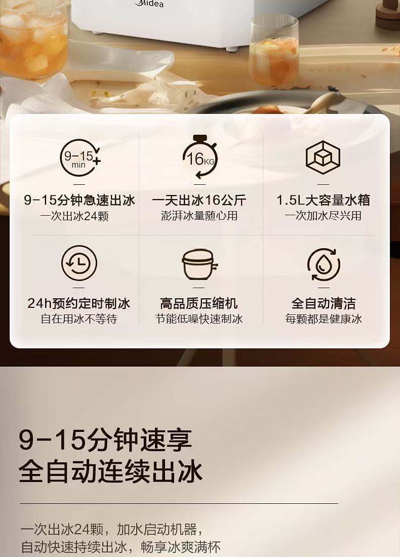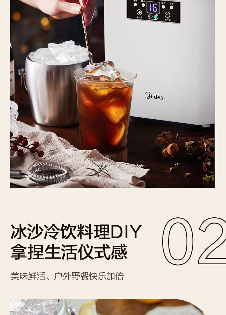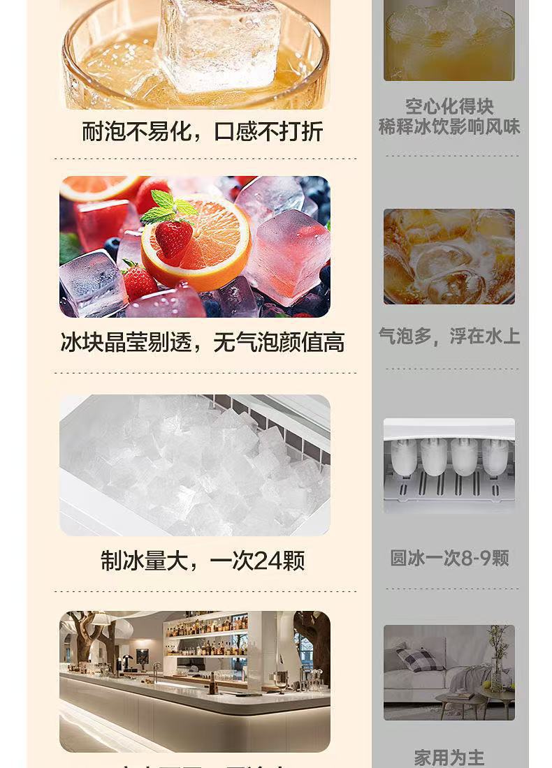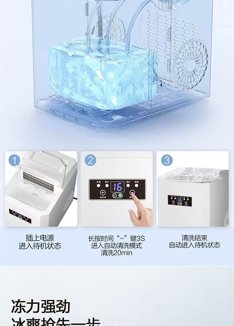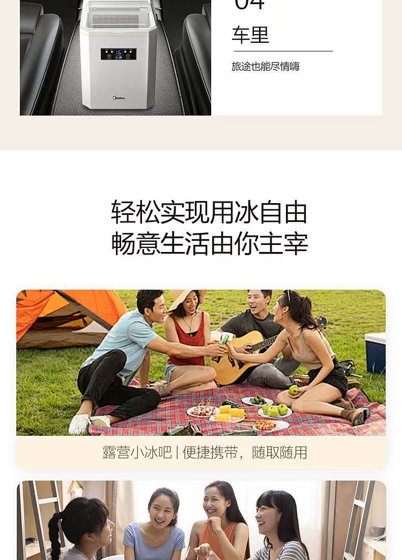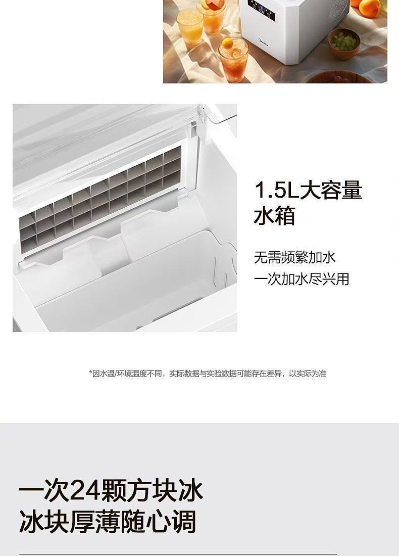 美的制冰机商用奶茶店小型家用宿舍自动进水方冰冰块机MBJ-20F11E