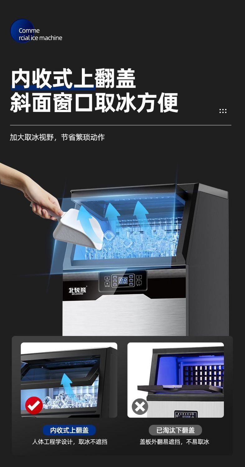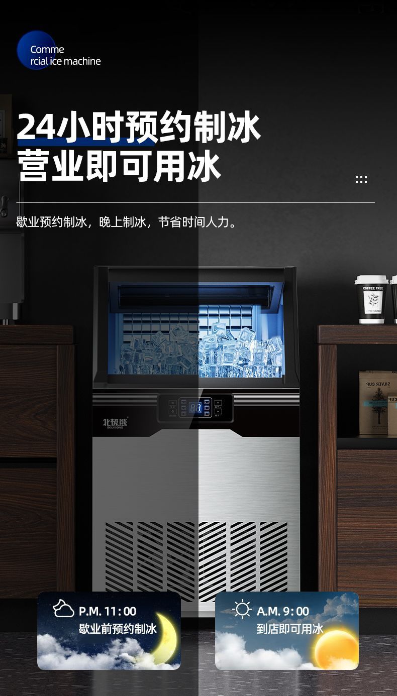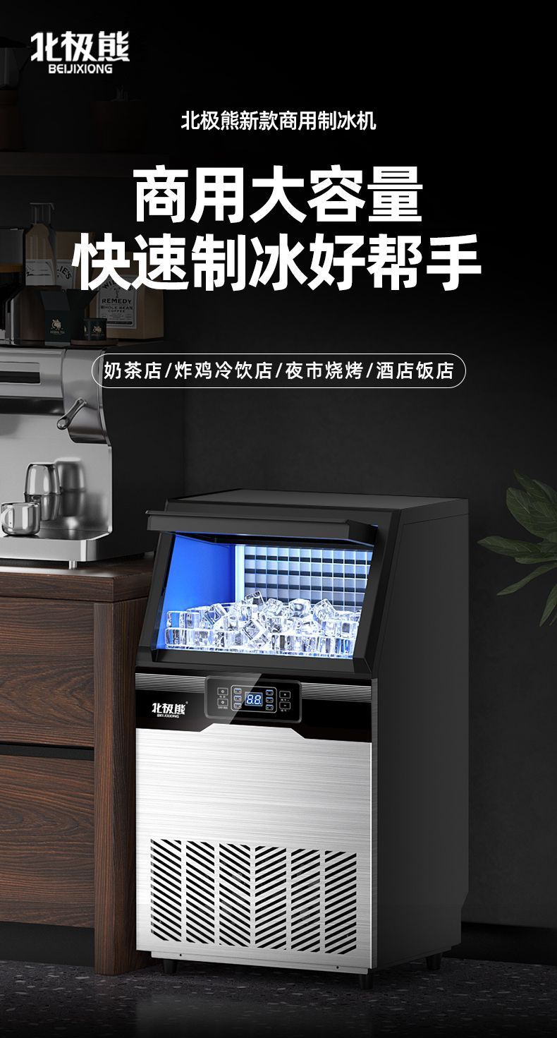 北极熊制冰机商用奶茶店大容量全自动冰块机桶装大型酒吧方块冰机