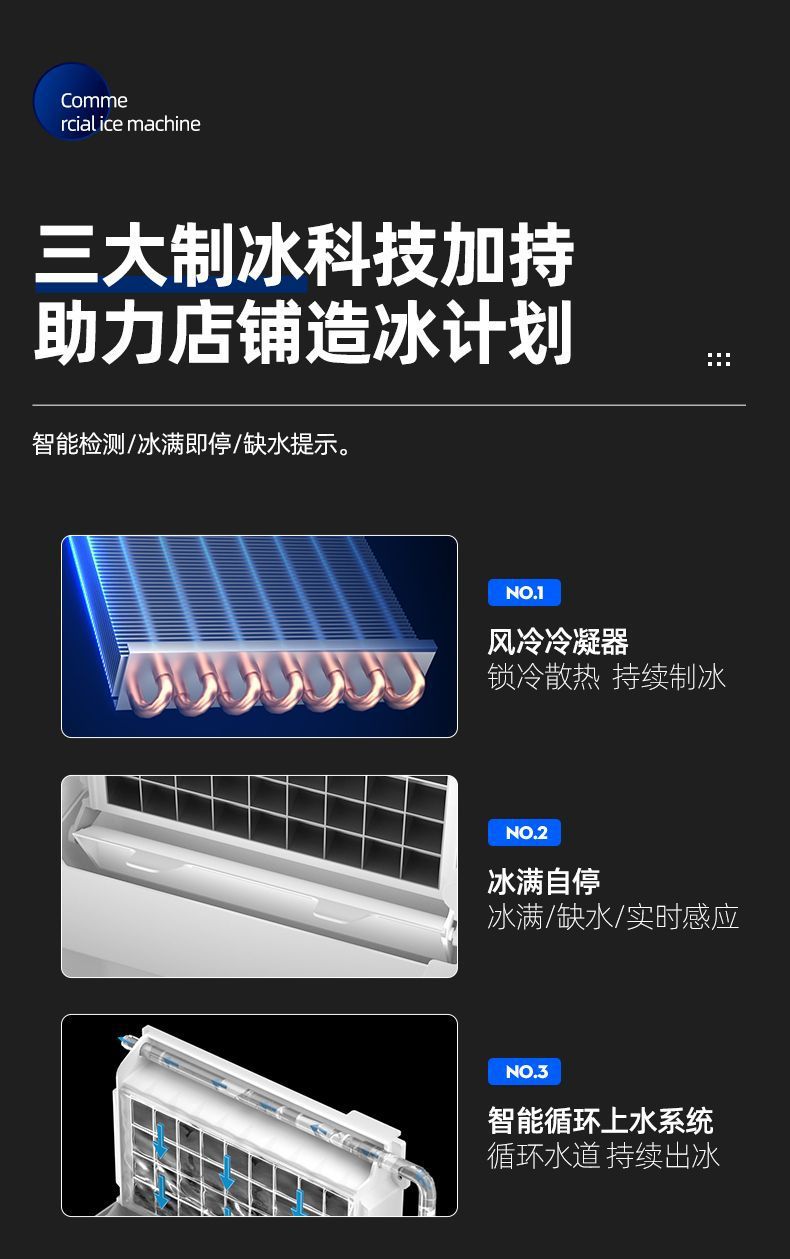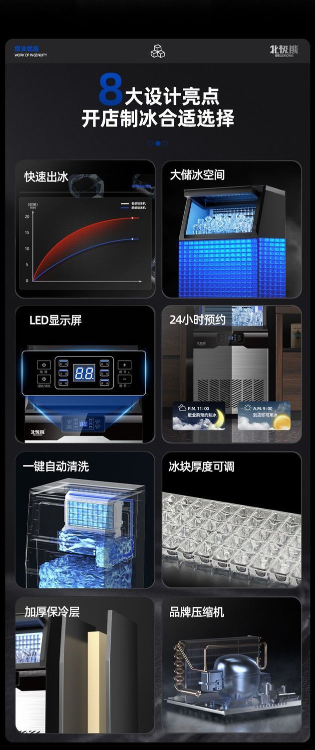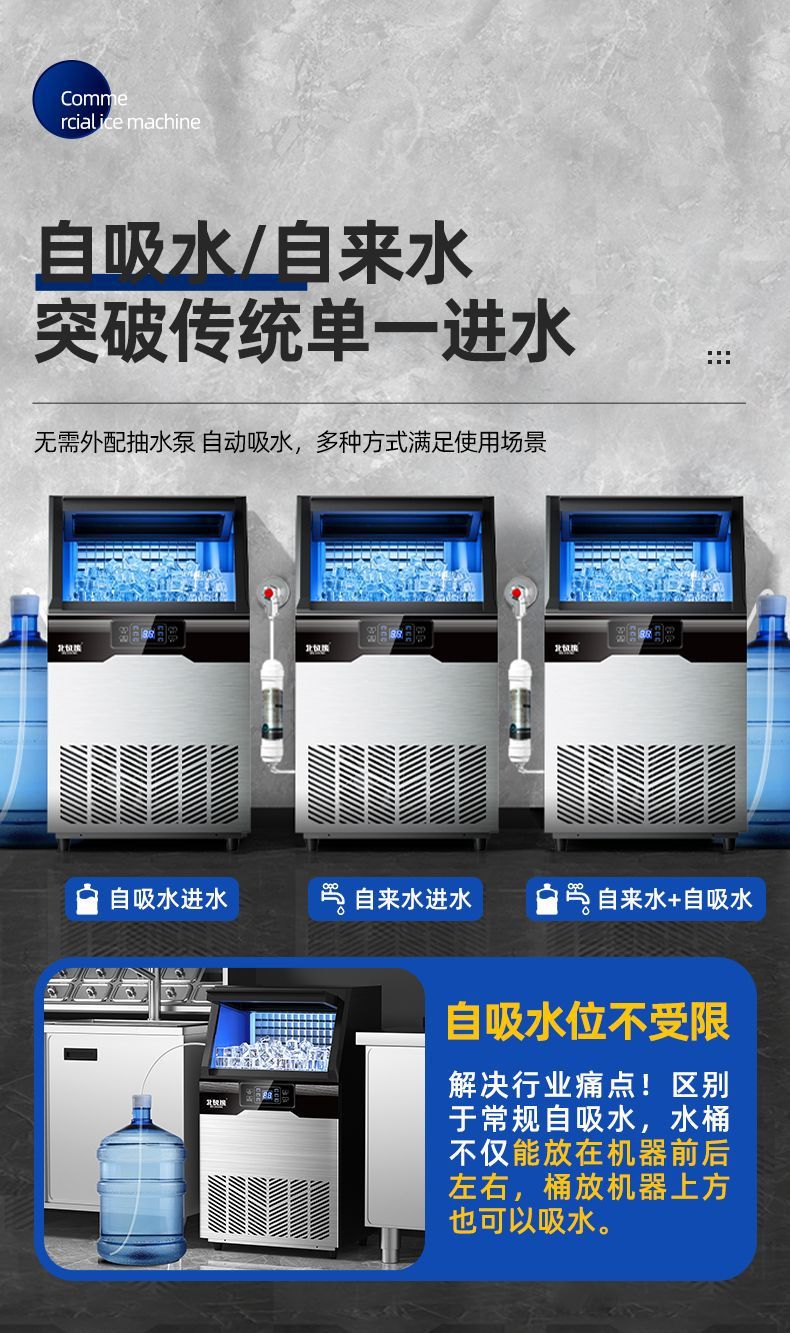 北极熊制冰机商用奶茶店大容量全自动冰块机桶装大型酒吧方块冰机