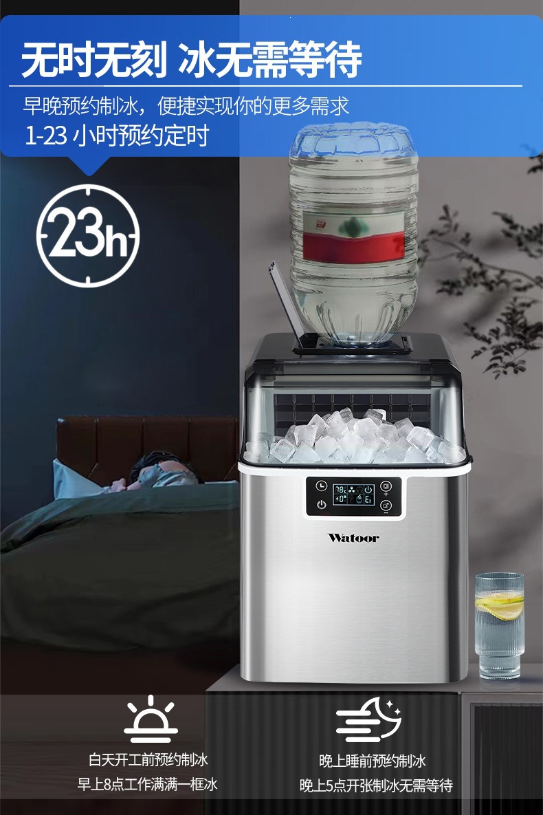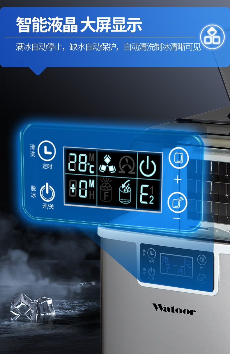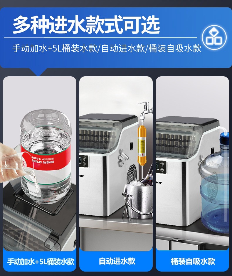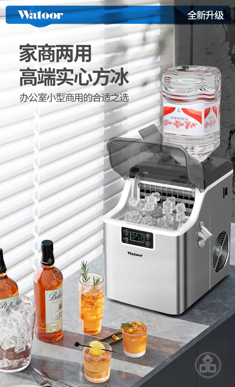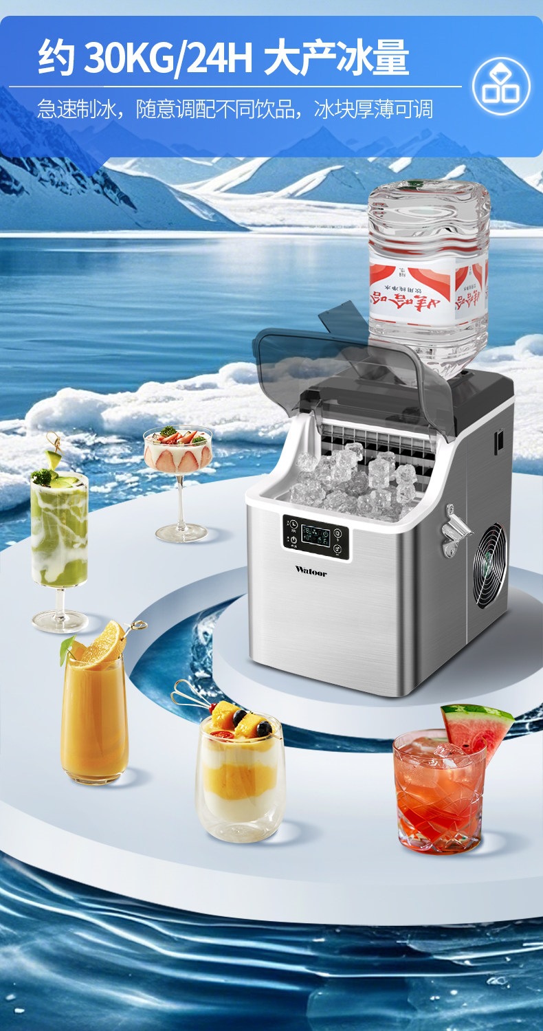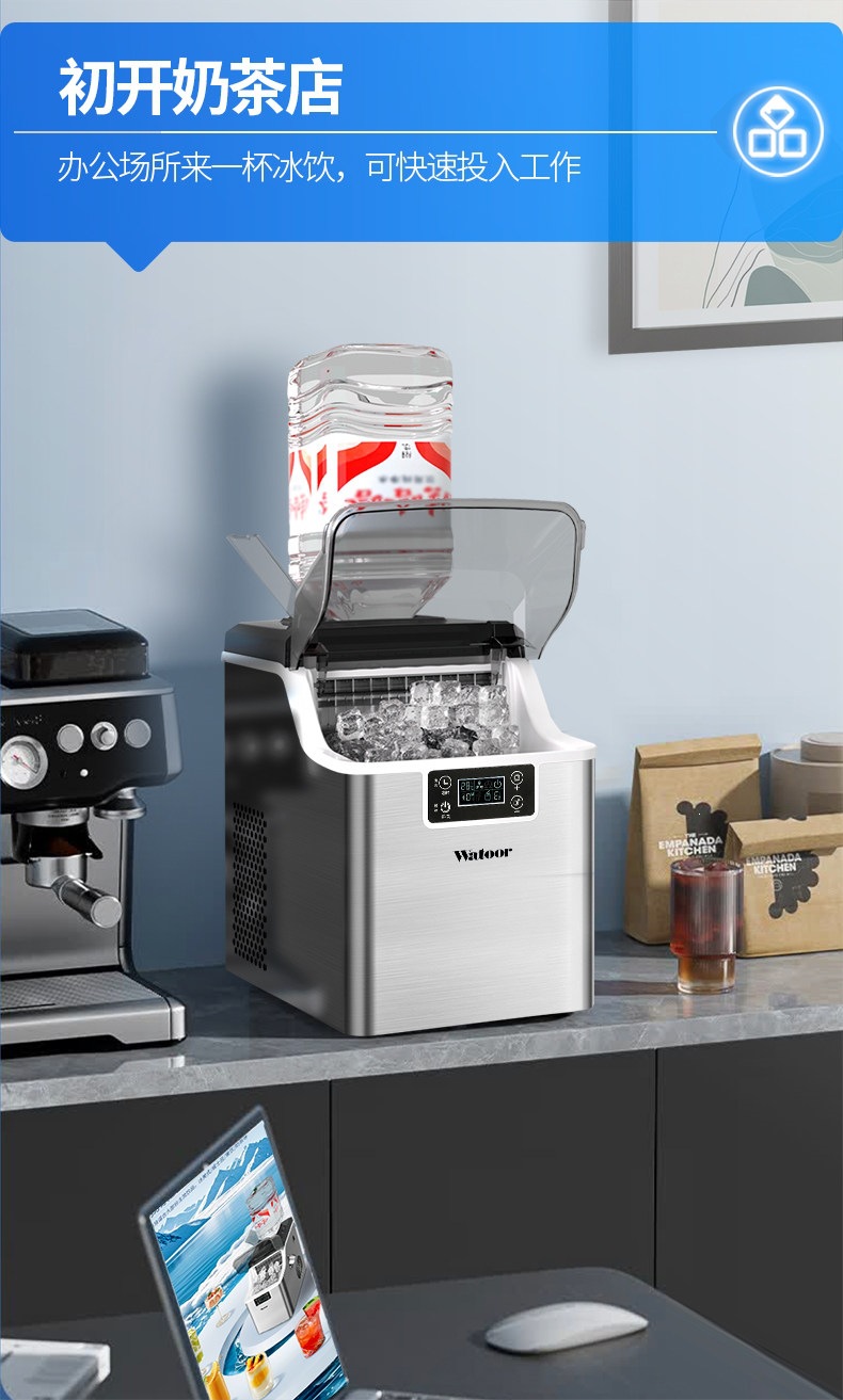 沃拓莱商用家用小型奶茶店制冰机手动桶装水30公斤宿舍吧台冰块机