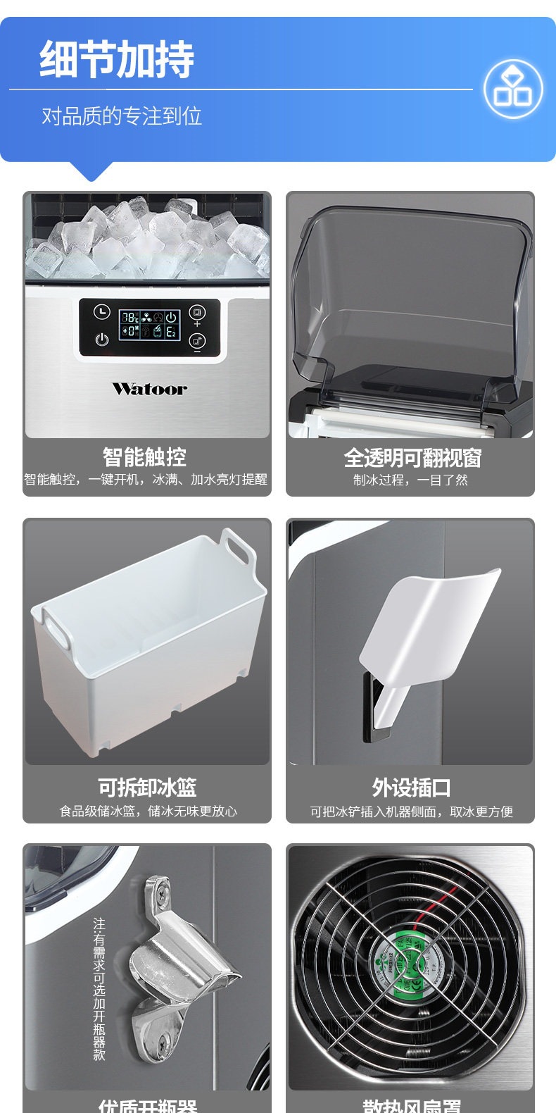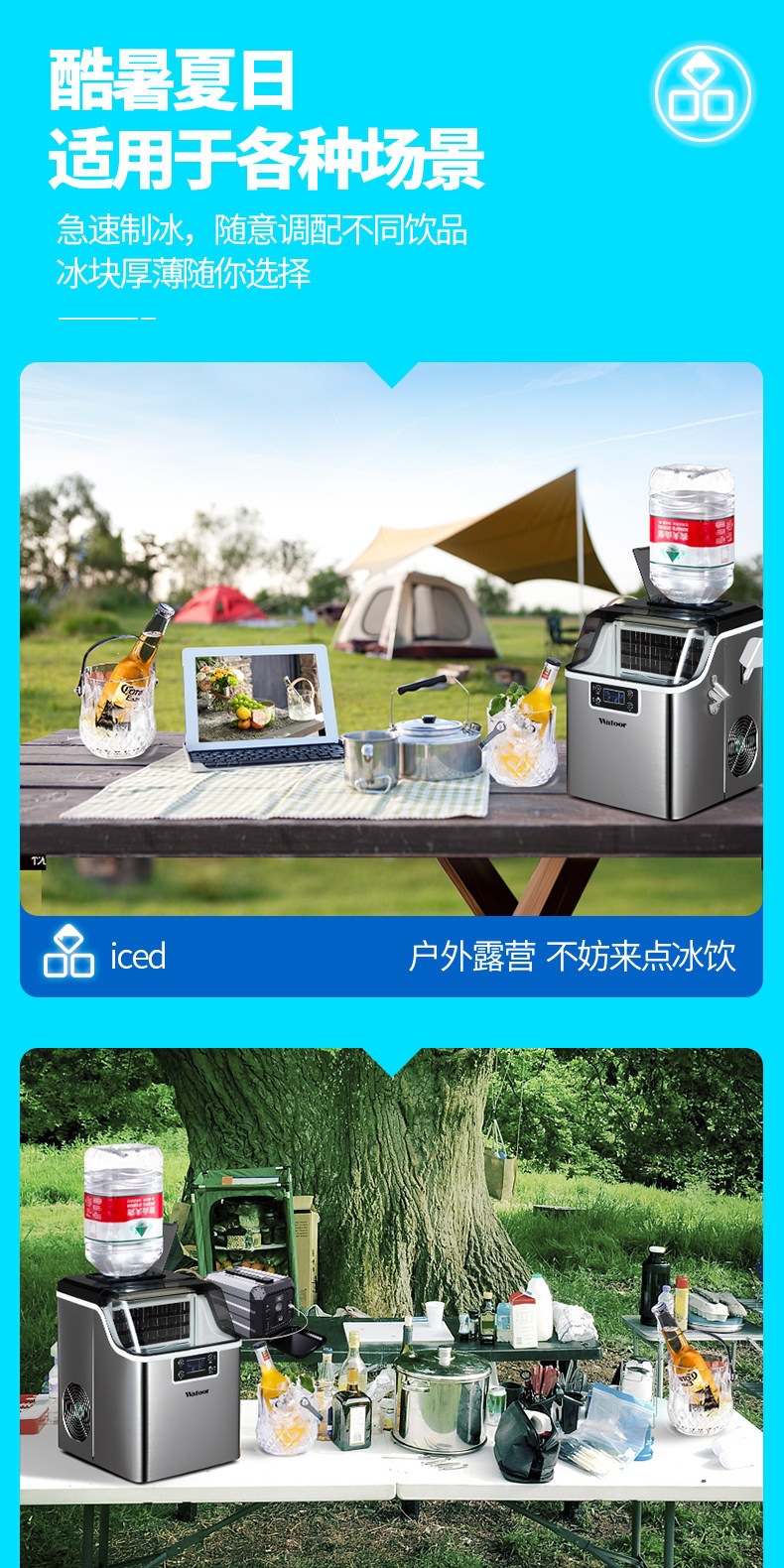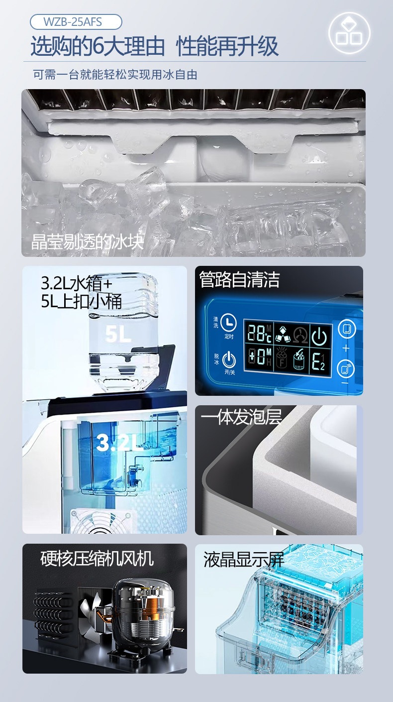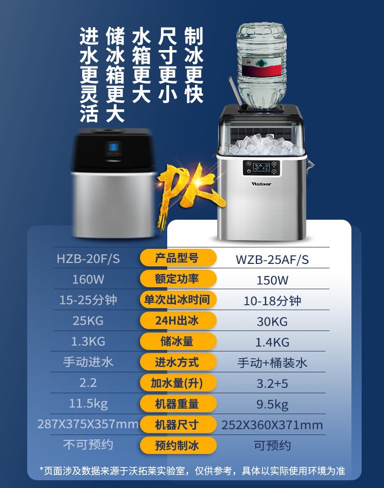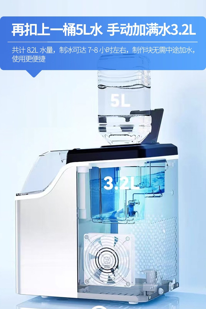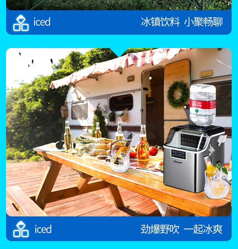 沃拓莱商用家用小型奶茶店制冰机手动桶装水30公斤宿舍吧台冰块机