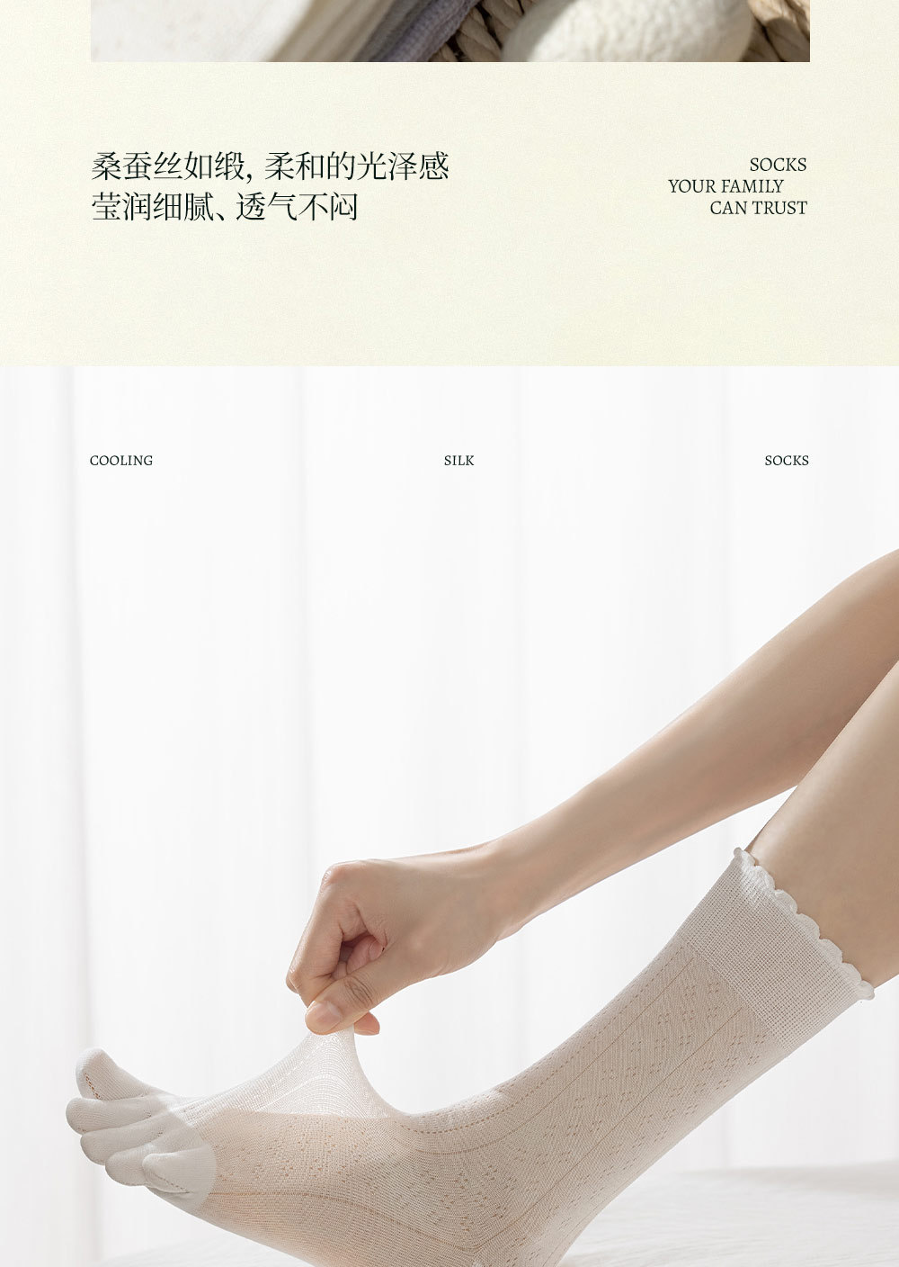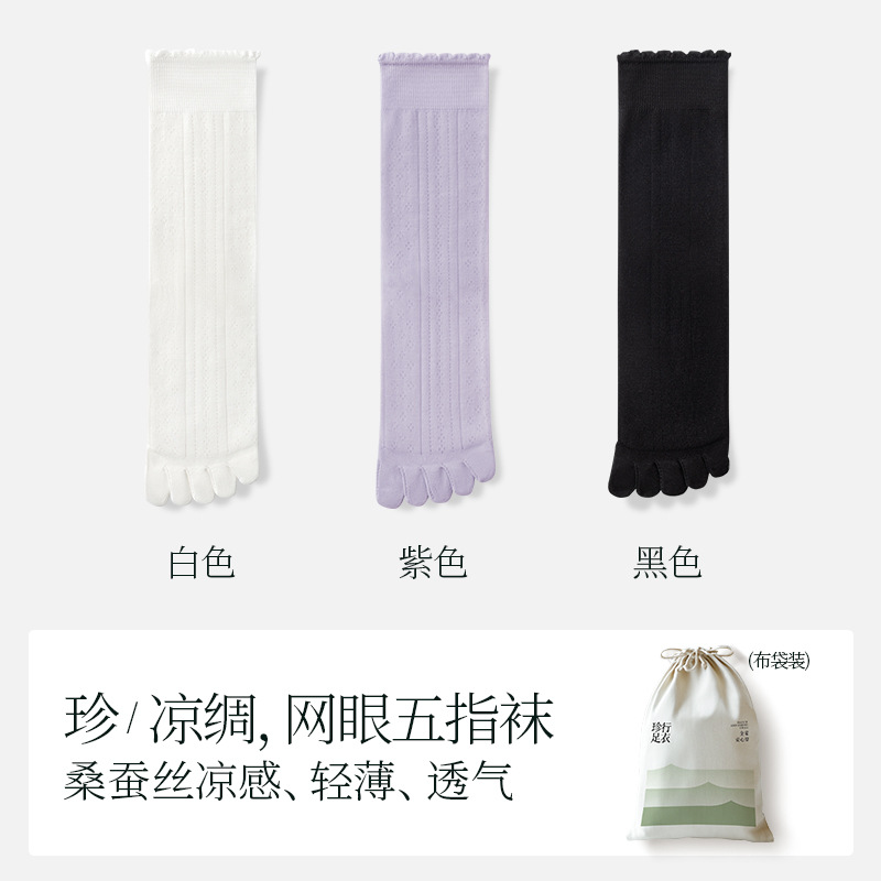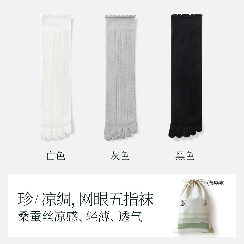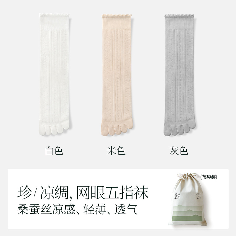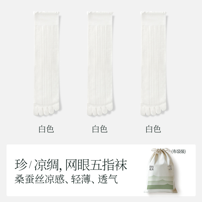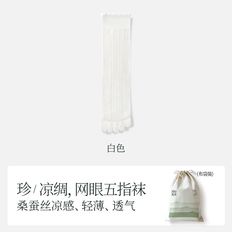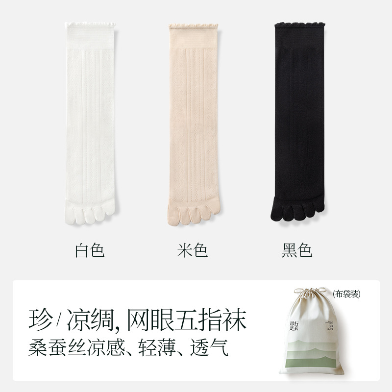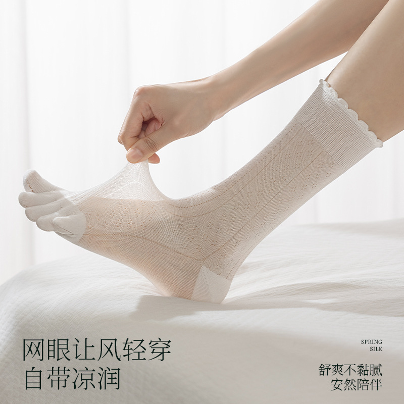 诸暨袜业桑蚕丝五指袜子女春夏薄款白色分趾袜无骨夏天中筒袜批发