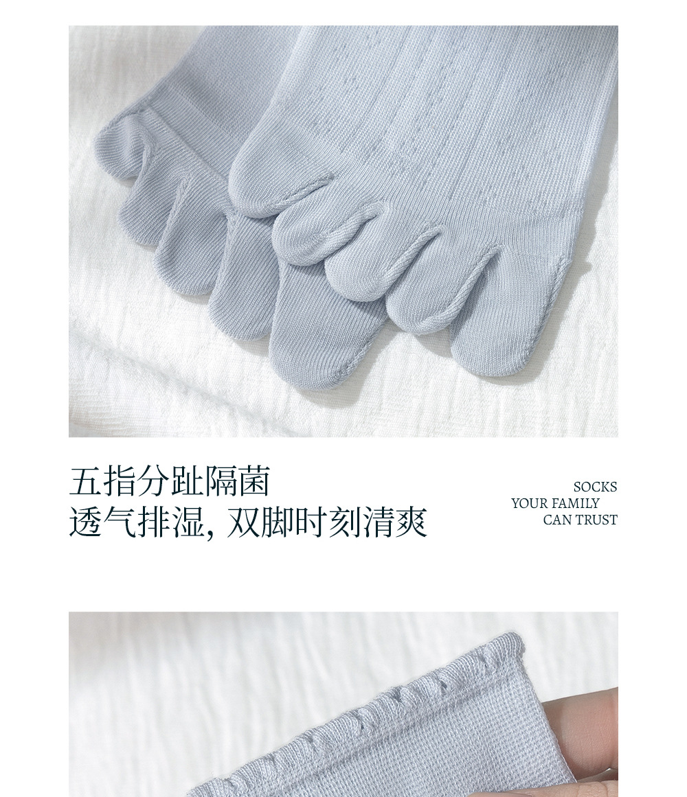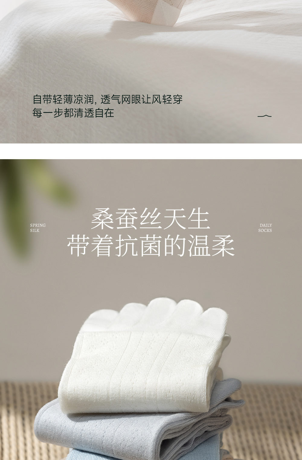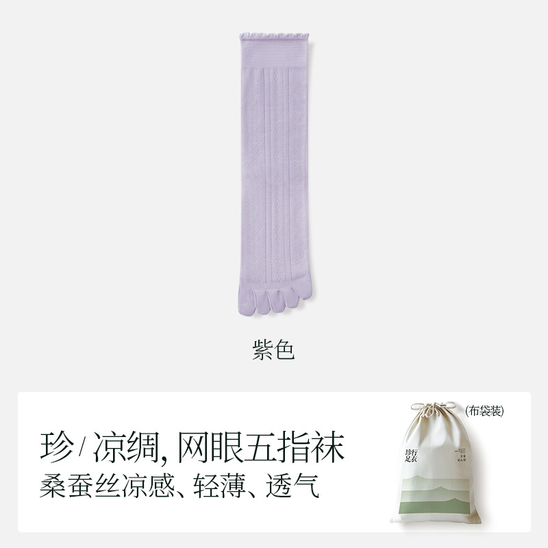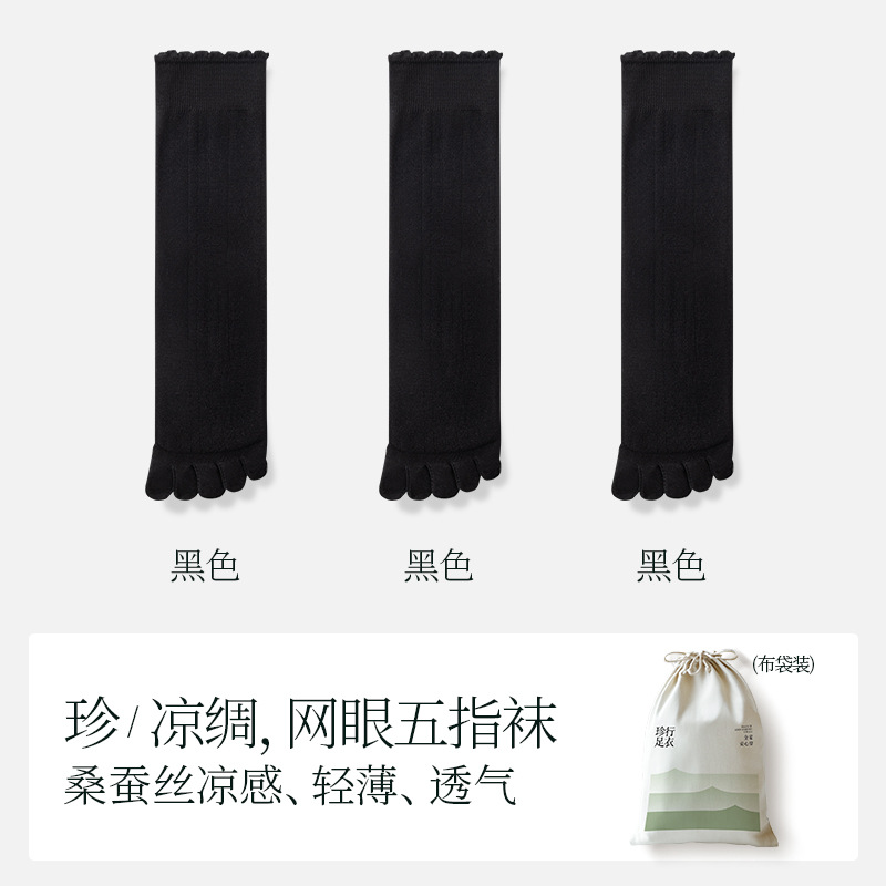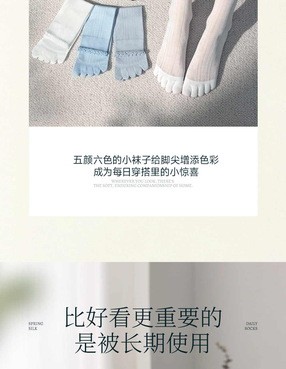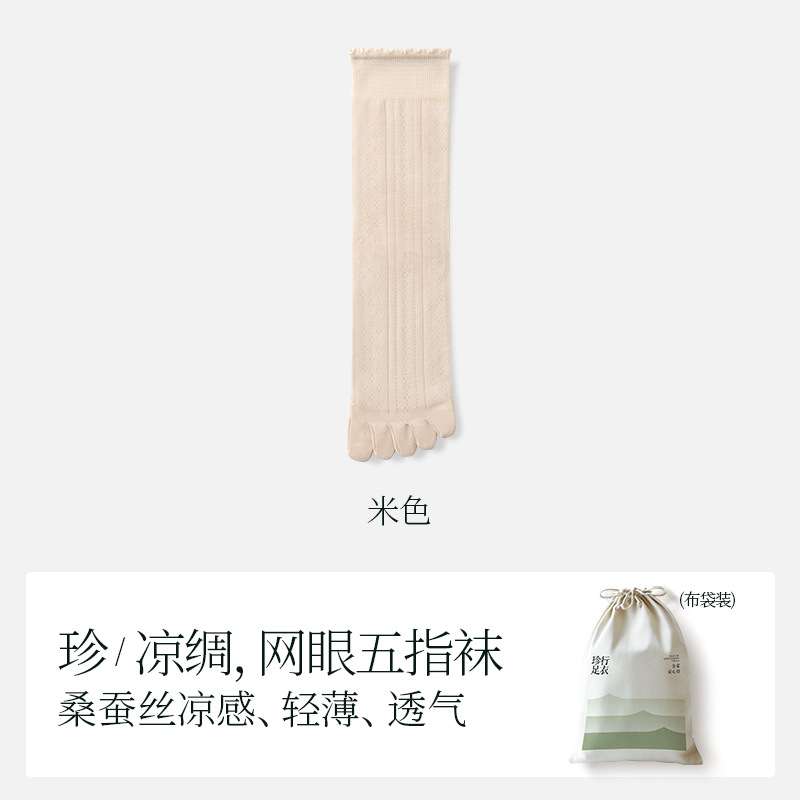 诸暨袜业桑蚕丝五指袜子女春夏薄款白色分趾袜无骨夏天中筒袜批发